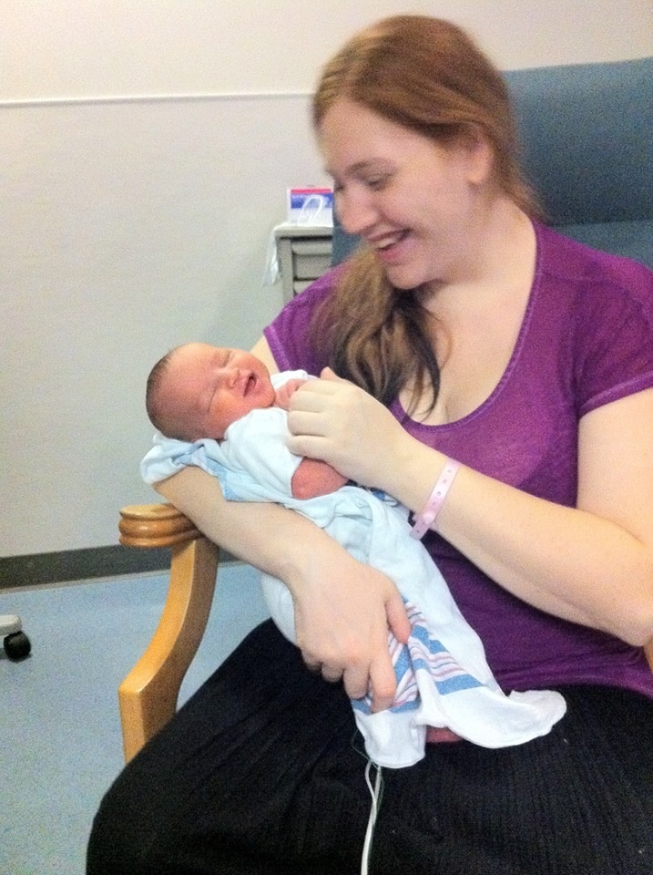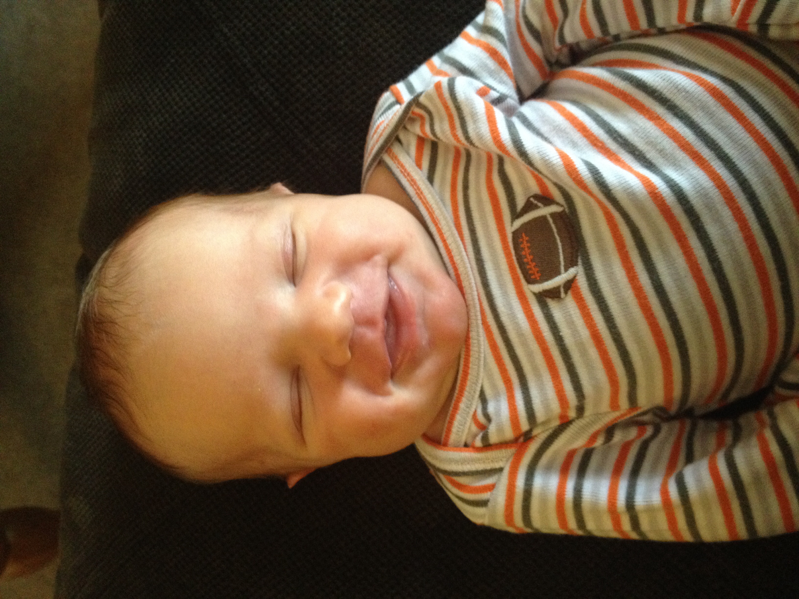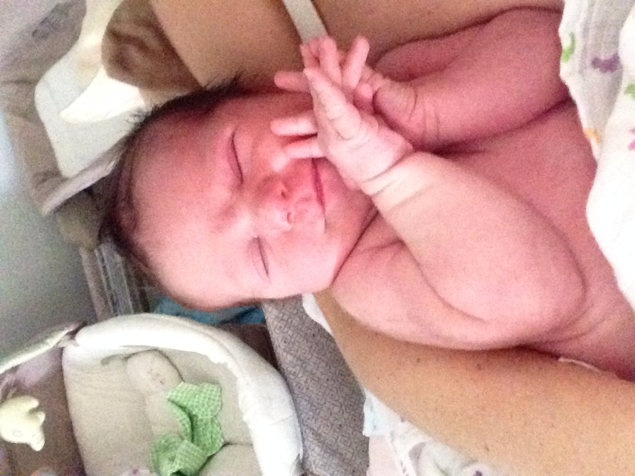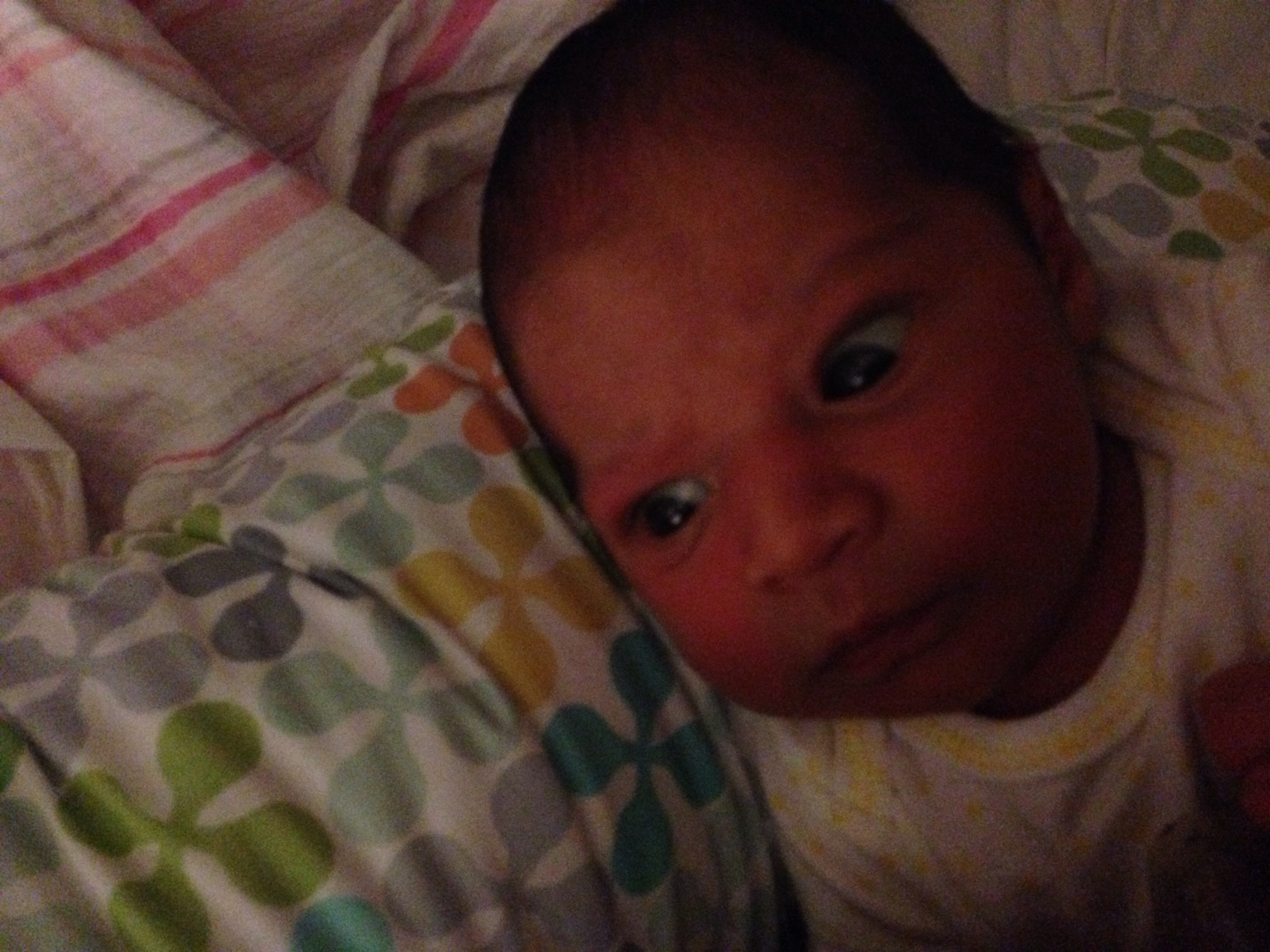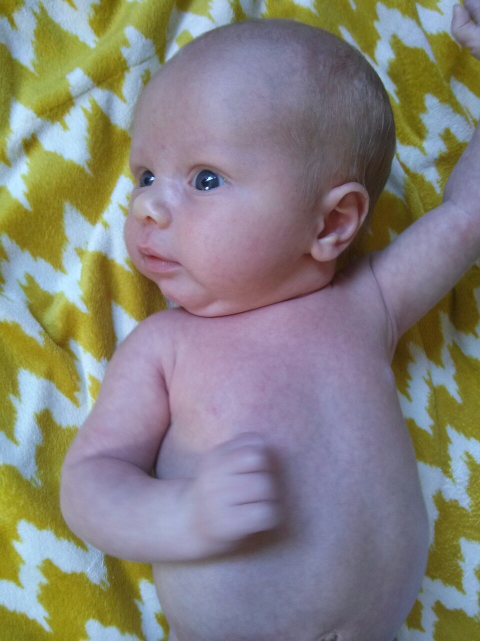 The first photo is a day old, then one from a few days ago and a smiling baby yesterday.