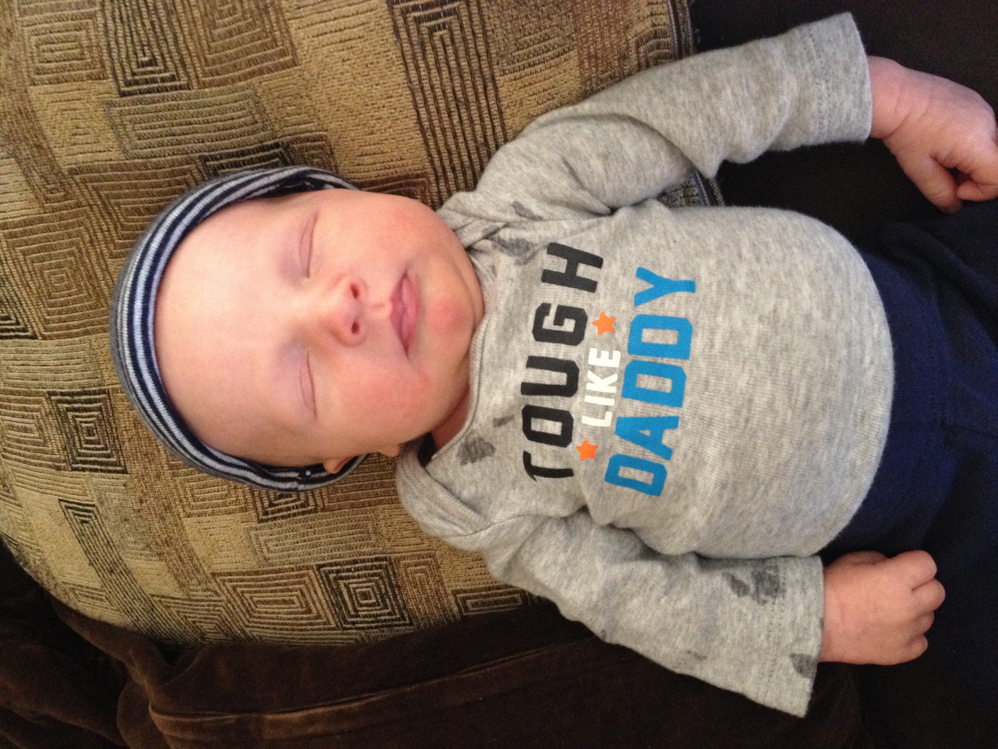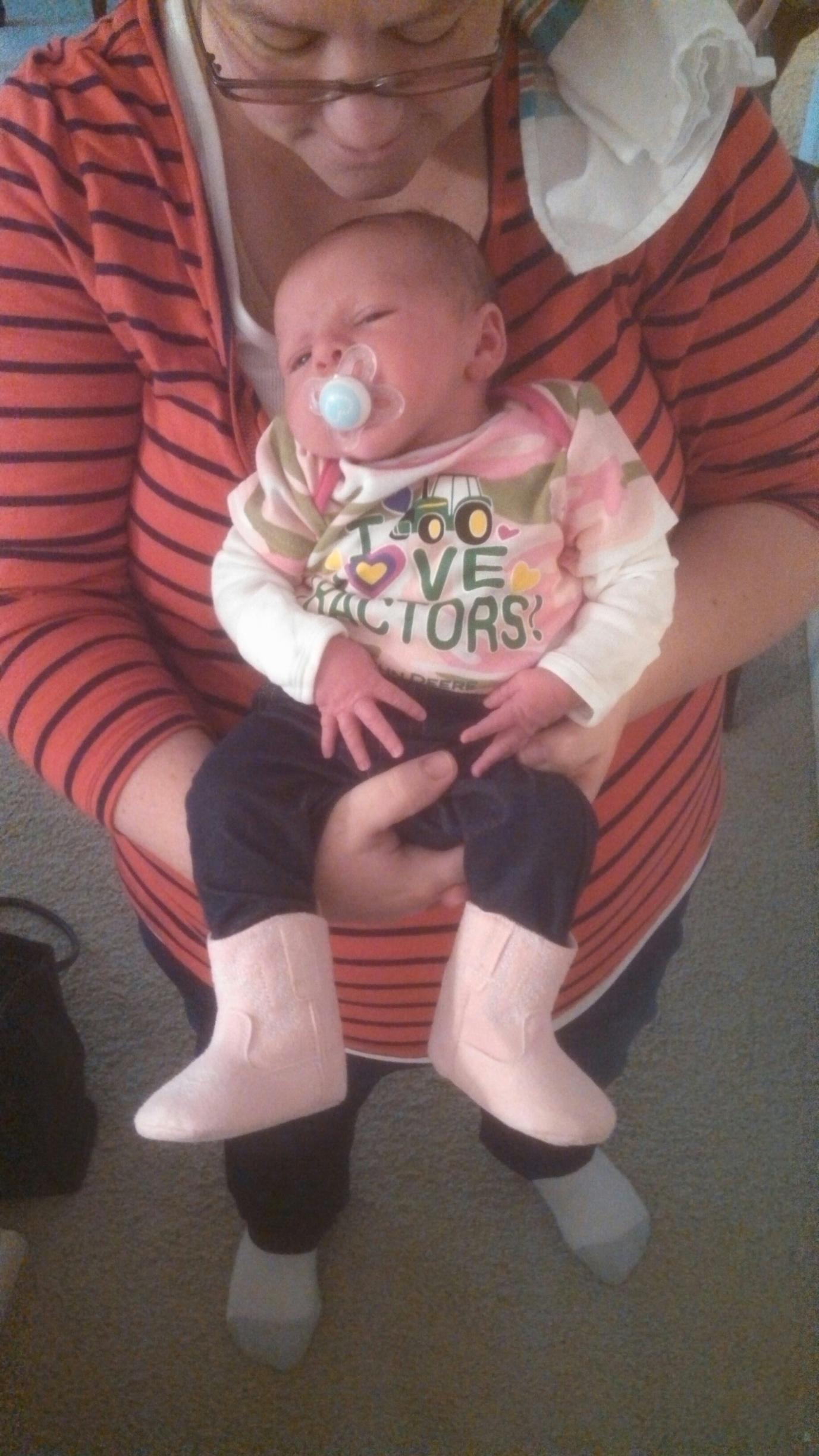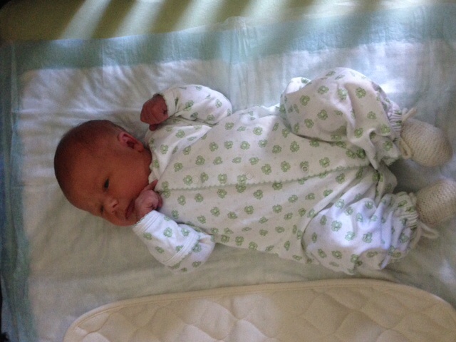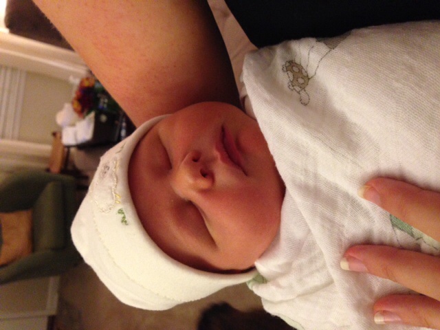 Charlie is a week old today! I have no idea where the time has gone. We had a rough night last night because he was pretty fussy, but I love him so much. It's a good thing I have lots of knit booties from my Mamaw because this child is a pro at kicking off socks.