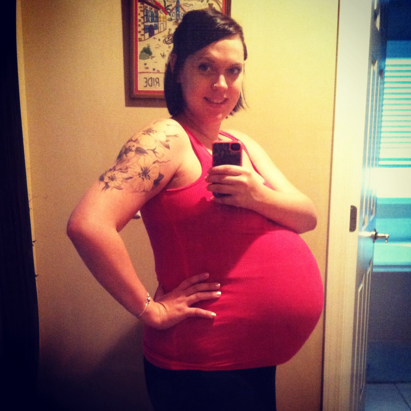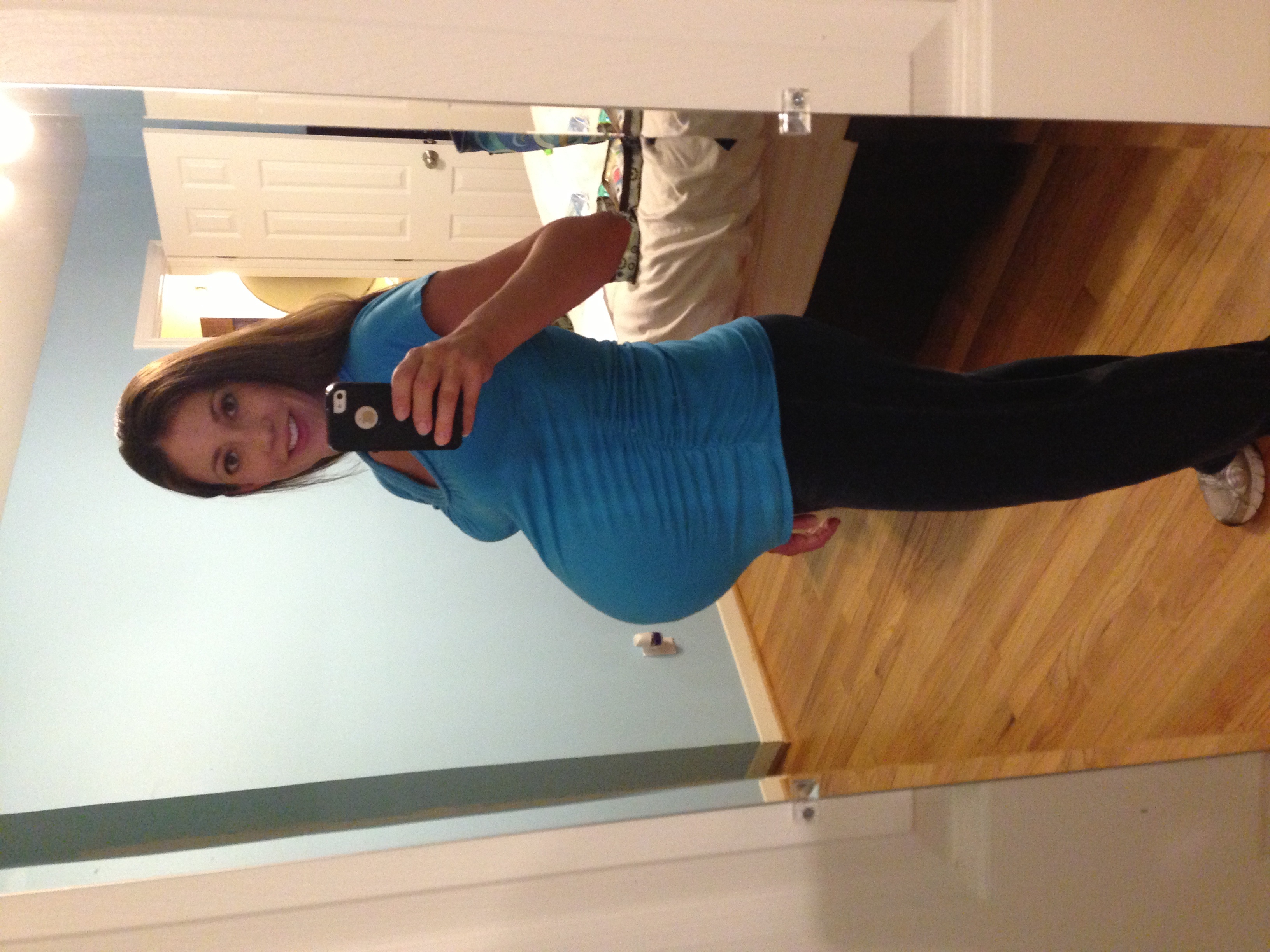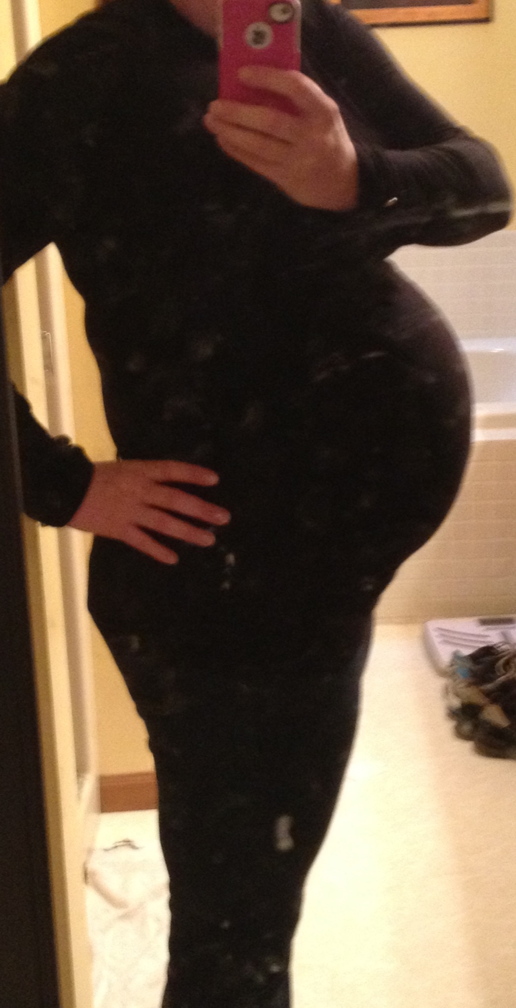 Here's me at 38 weeks, 6 days. Still have an inside baby today at 39 weeks, 3 days, and possibly could through next week. I think I did too good a job of convincing him/her to stay put last month...