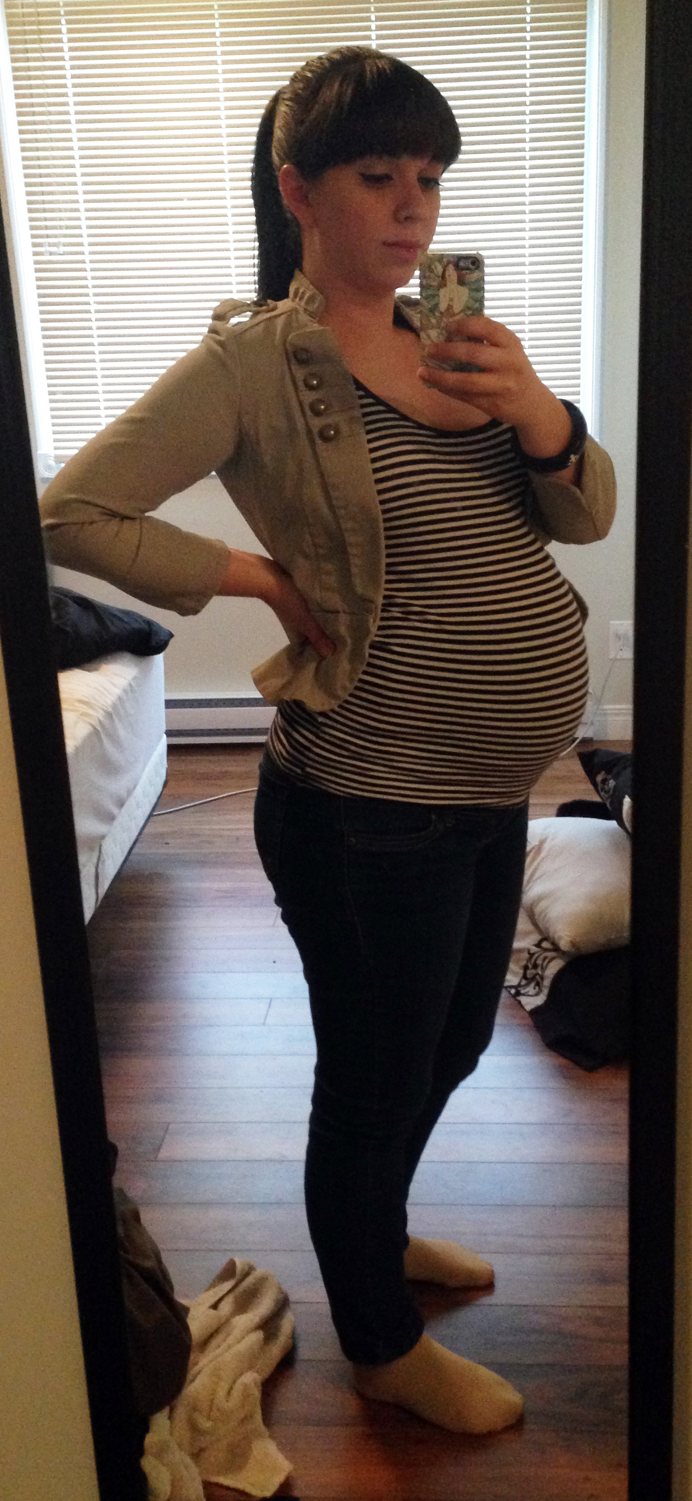 Ahhhhh!!!! I fly out tomorrow afternoon! I can't believe it's that time already where I'm heading south to Ontario to be close to a hospital and wait for our little one to arrive :S It even snowed here first thing this morning to drive home the point of how close our due date truly is. This pic is from wednesday, 33w1d.