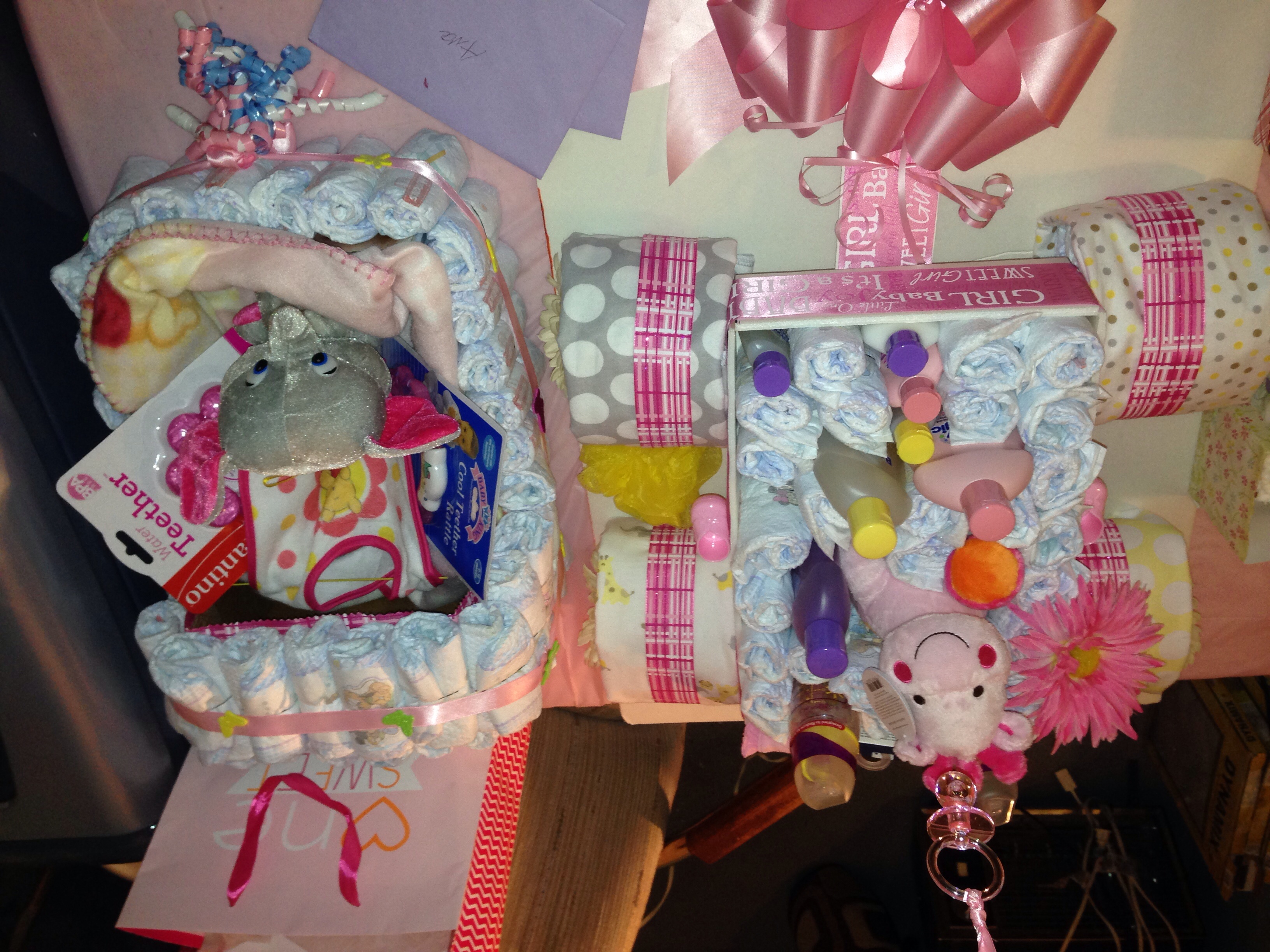 Got a surprise shower today from SO's aunt! It was so fun and cute. She made diaper cakes and a lot of really cute decorations. I'm just surprised they kept a secret so well and most of my family showed up