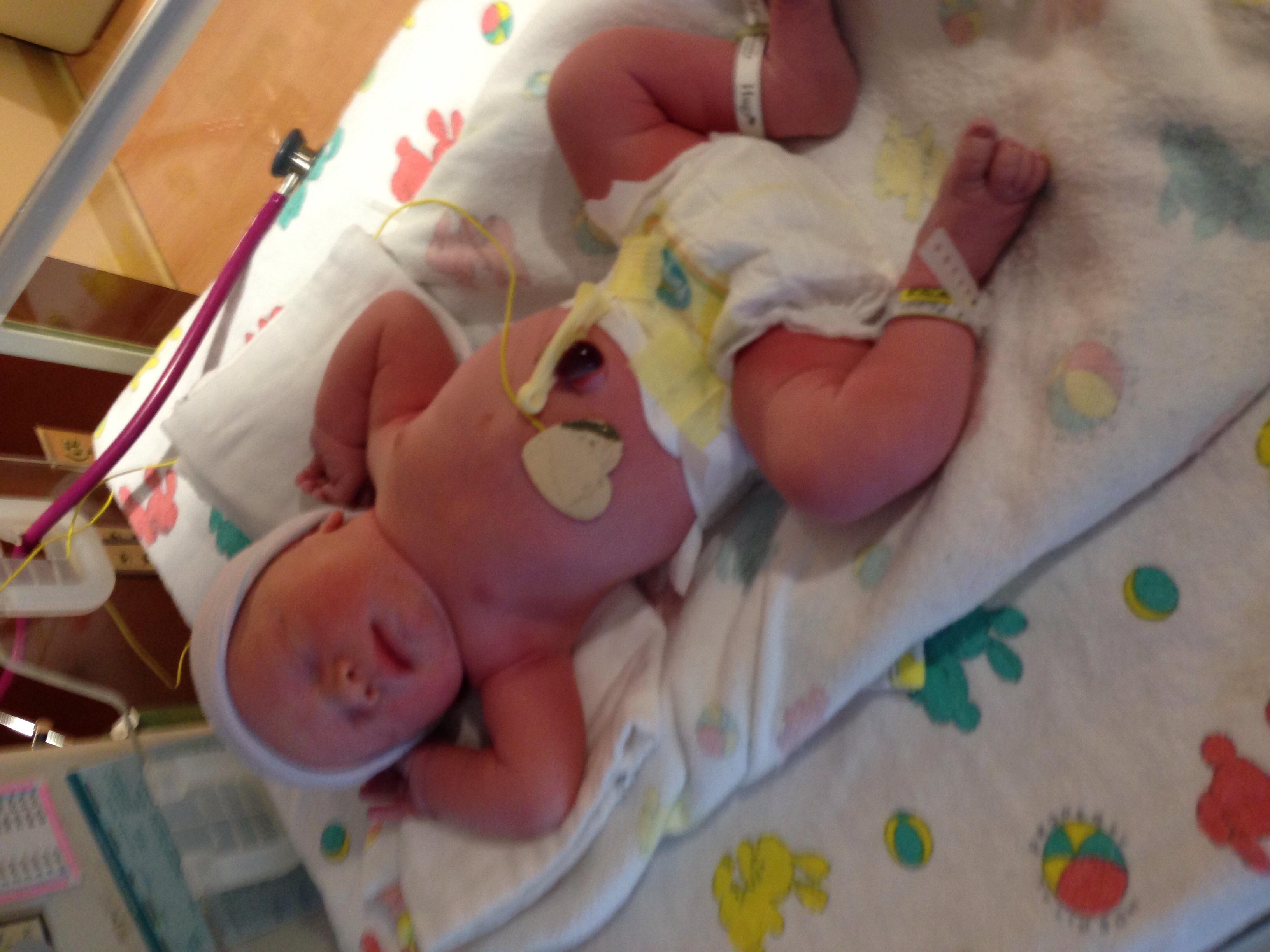 On October 17 I went for my routine growth ultrasound followed by my 37 week appointment. The ultrasound showed low fluid around the baby. After the nurse checked my blood pressure she said how would you like to have a baby tonight. The fluid was measuring at 2.3 cm. The lowest they would lke to see was 5 cm. They were not sure why the fluid was low. It could of been a slow leak or the placenta wasn't doing its job anymore. My midwife checked me and I was only 1 cm dilated and cervix was still hard and high. They sent me right across the street to the hospital to be induced. Took forever to get admitted. They finally got the pitocin started about 8 p.m.