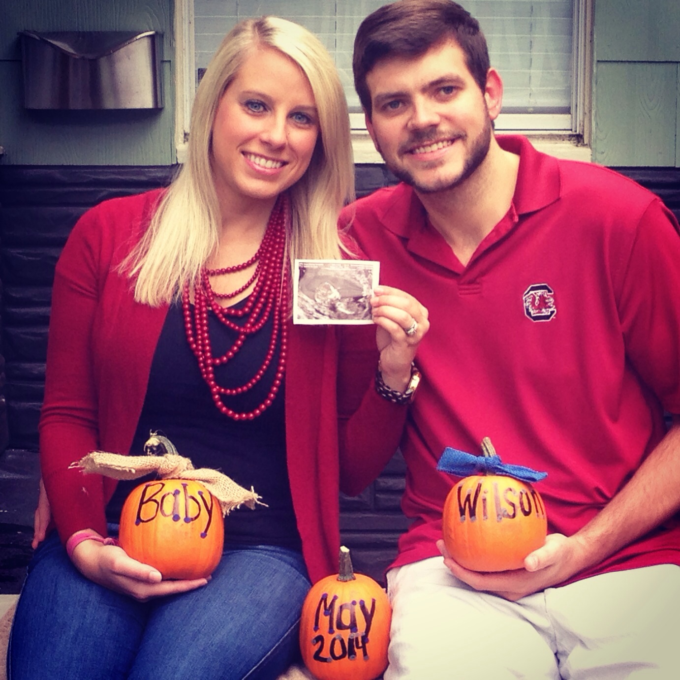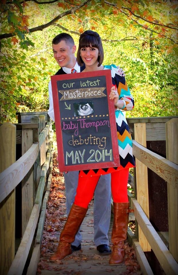 Found this on Pinterest and hubby and I just took pics with this as our inspiration last weekend. We are both wearing our fav team (Cuse- we're from central New York) and I bought a team onesie for baby. We put a colorful quilt on a bed of leaves in between trees in my parents backyard. We put a daddy, mommy, doggie, and baby pumpkin to decorate and took lots of shots. I'll post the actual pic when we choose which one!