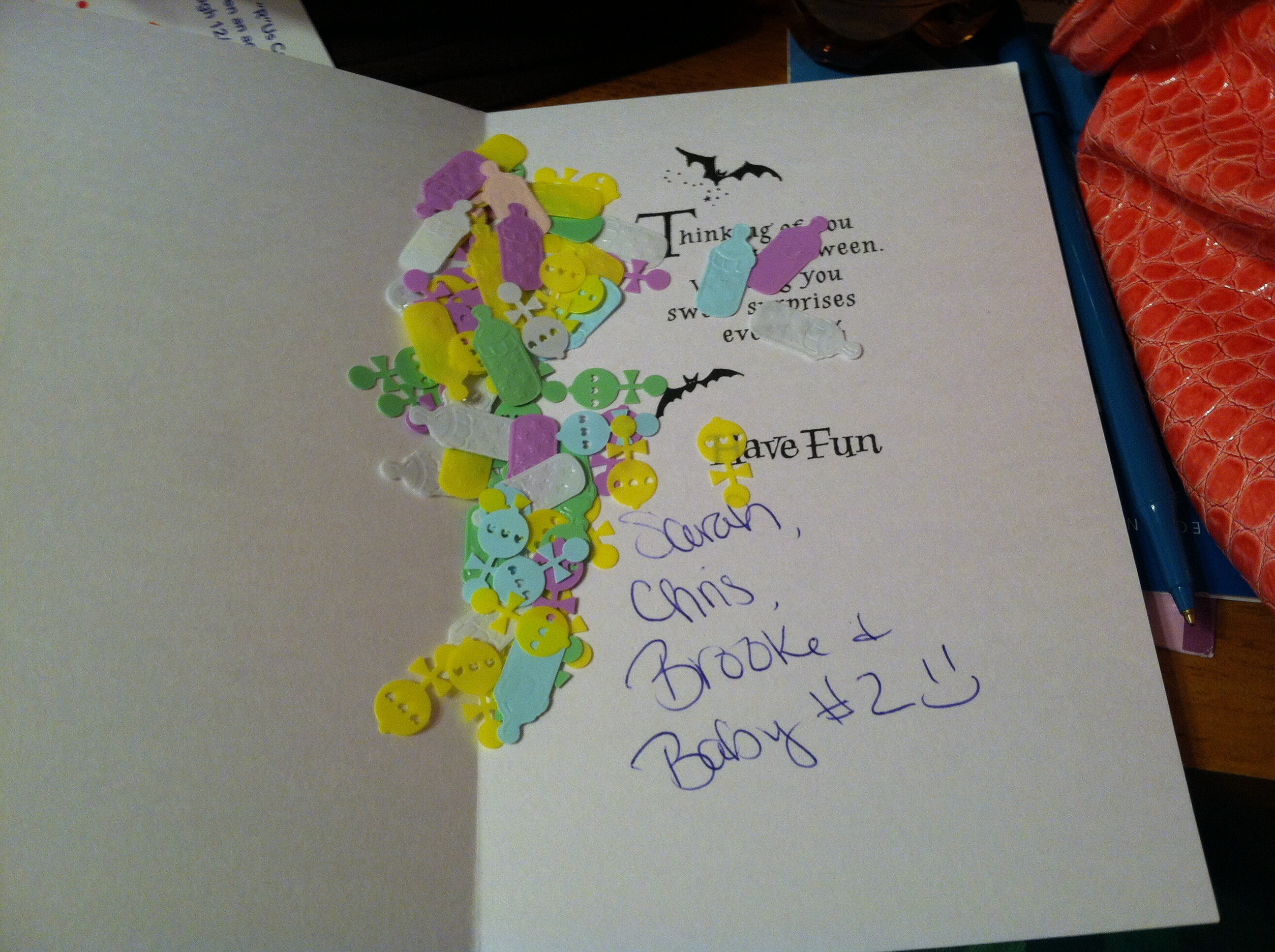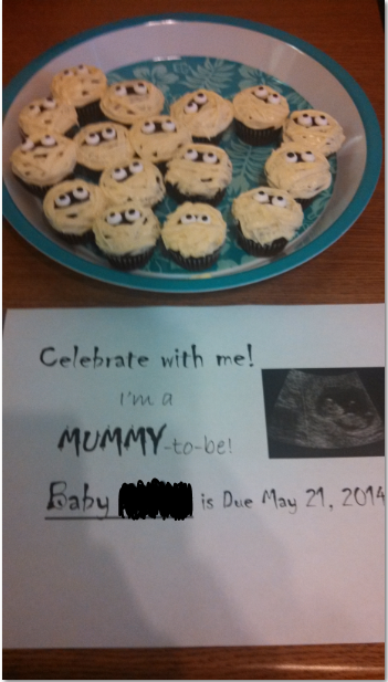 Gave this for Halloween to my sister and mother in law. Mil did not have her glasses on and didn't get it till we asked her what th back on the pumpkin meant (it has baby due date) and of course I started tearing up both times. Haven't announced to fb yet but 3 other ppl I know did on Halloween