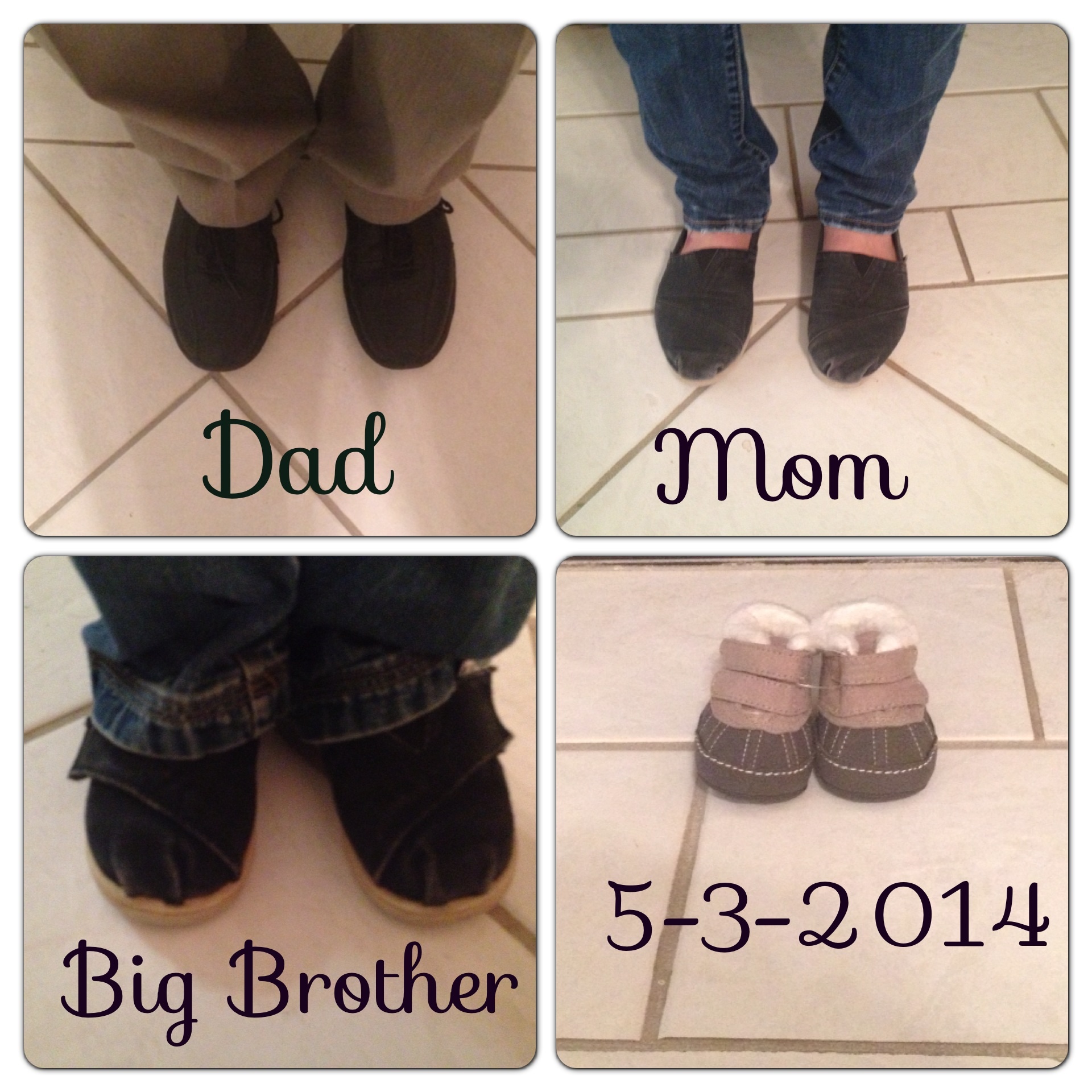 Wanted to ask your opinion...I was thinking about using our wedding photo and writing "first comes..." before the hands, then putting a picture of us holding baby shoes the same way next to it. Thoughts?