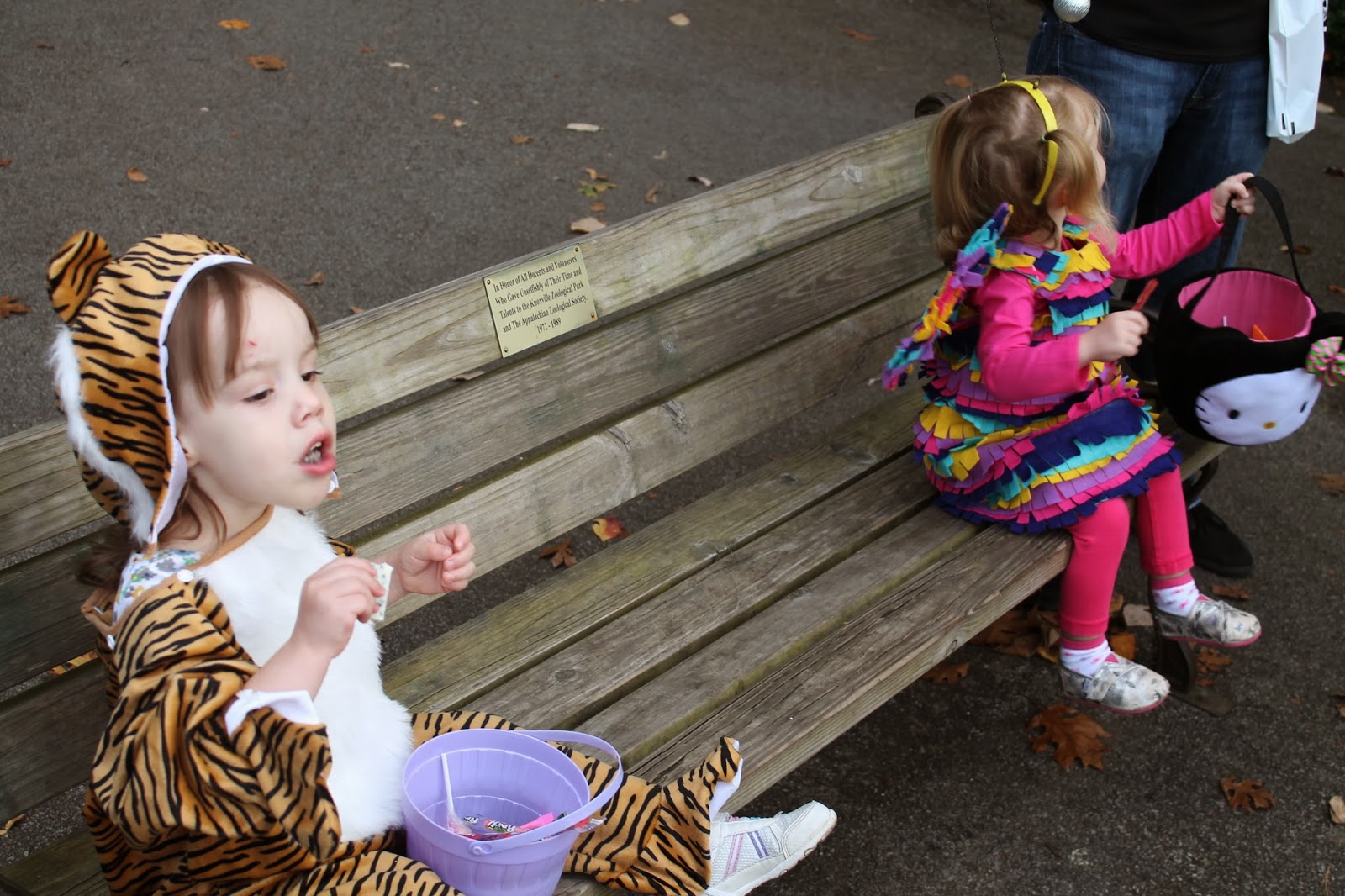 Annoyed that I made her wear the head piece for a photo op, but tolerating it because she got to eat candy. This was at Boo at the Zoo.