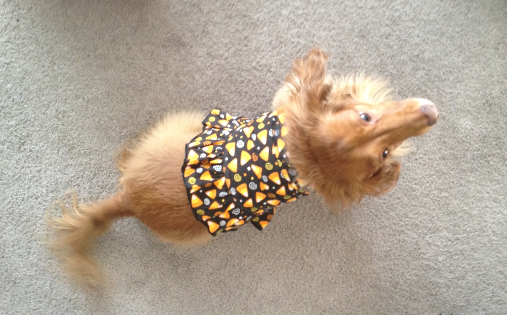 I think I put this in the "Too excited" thread but she just cracks me up. She had what I call "Pooh Paralysis". Once the costume went on, she couldn't do anything!
