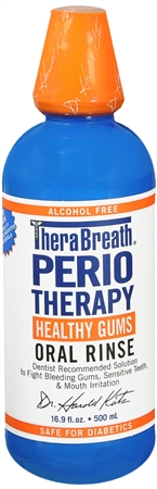 I started using Thera Breath Perio Therapy a few weeks ago and it made a huge difference right away. It is designed for sensitive and bleeding gums. There is a toothpaste and a mouthwash, I use both. Some larger drugstores have it, as well as Target or look for it online. Highly recommend! Packaging looks like this.