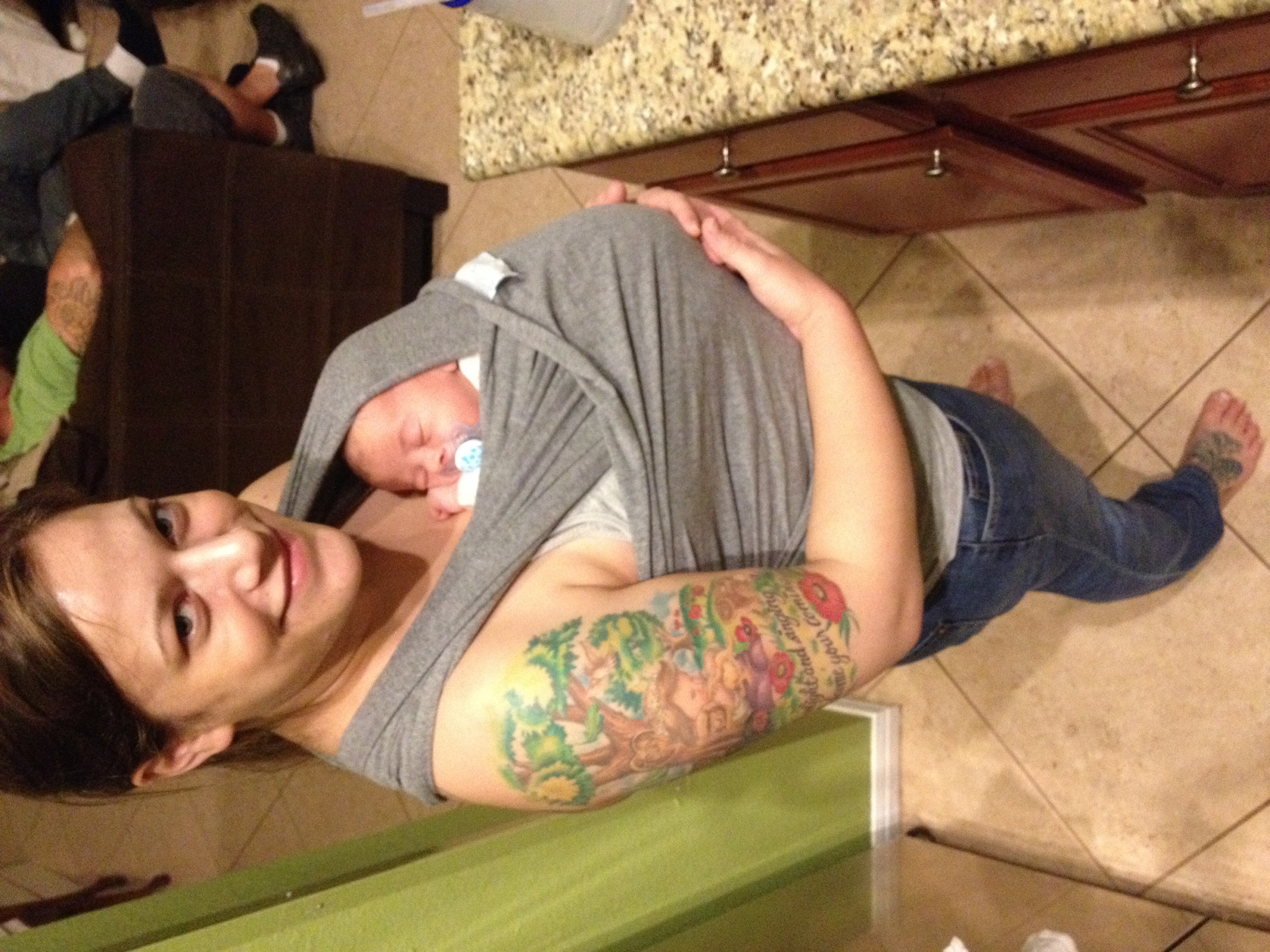 From our first trip to grandma and grandpa's this weekend. ALSO my first time wearing anything other than sweatpants.