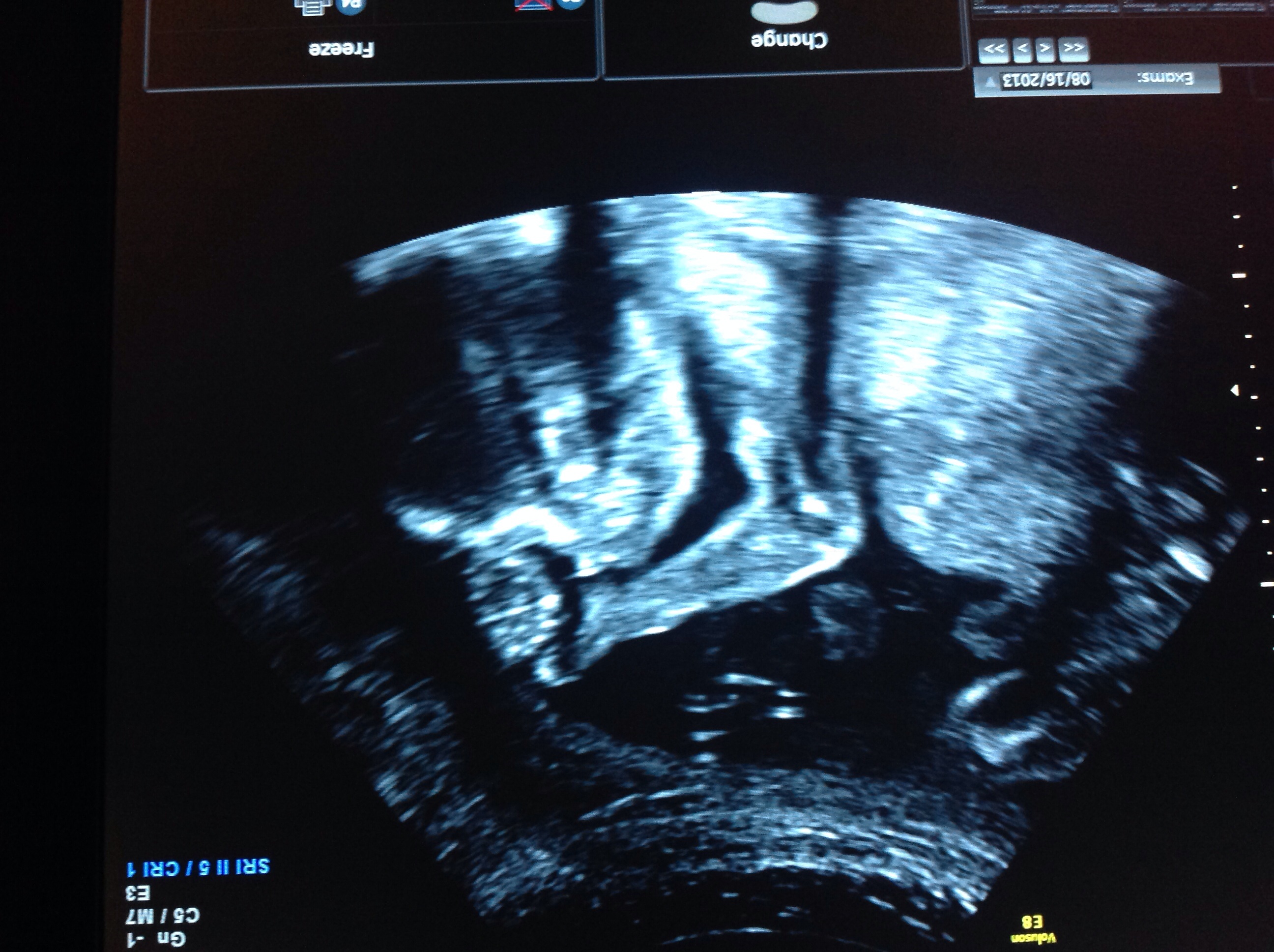 He was wiggling around and down really low so it was hard to get a pic of his face, but here is a pic of him (he has his hands up to his face like he is sucking his thumb). So excited to finally start planning! Sorry it is upside down