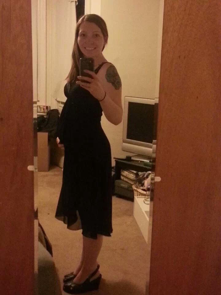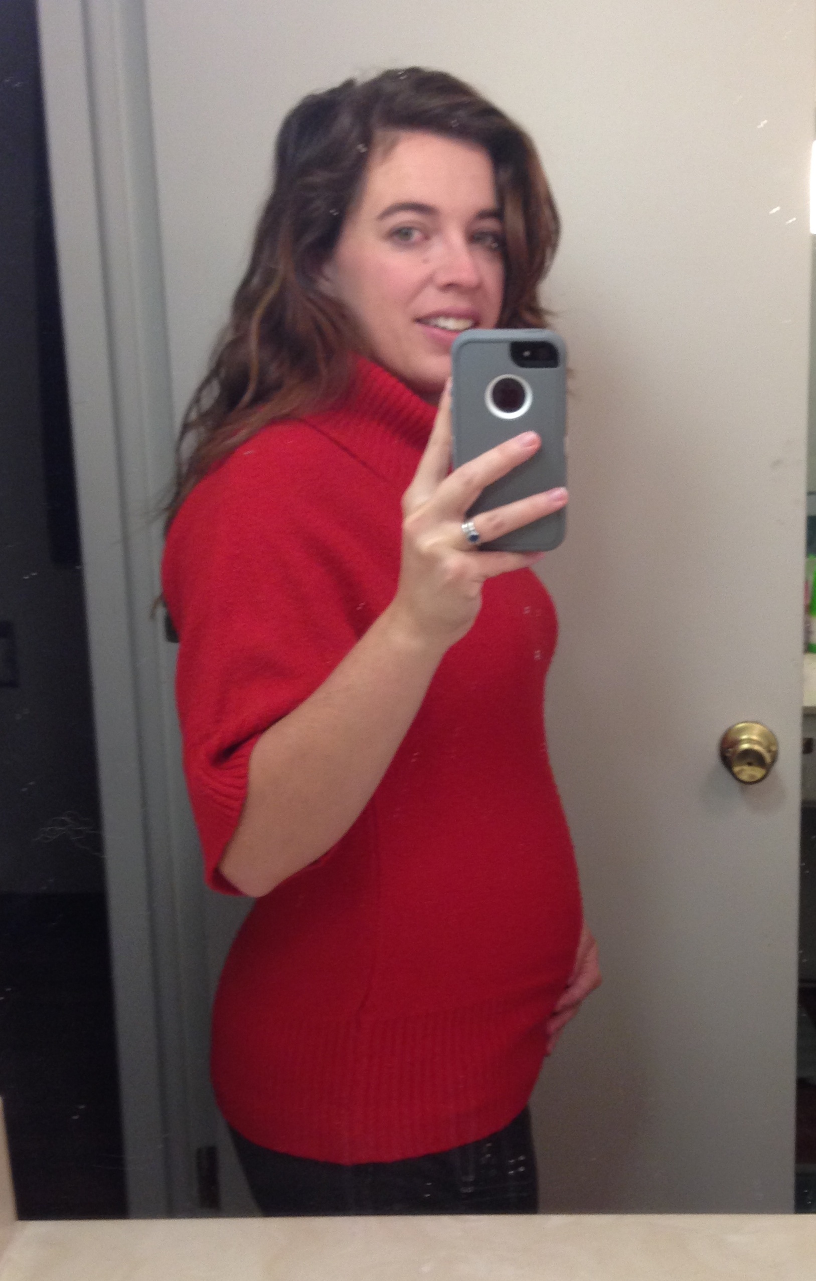 There's more bloat than bump...this was taken at our friend's wedding on Sunday - 12.5 weeks! I was so happy that the dress still *fit* since I bought it last May and didn't think I'd be pregnant in November!