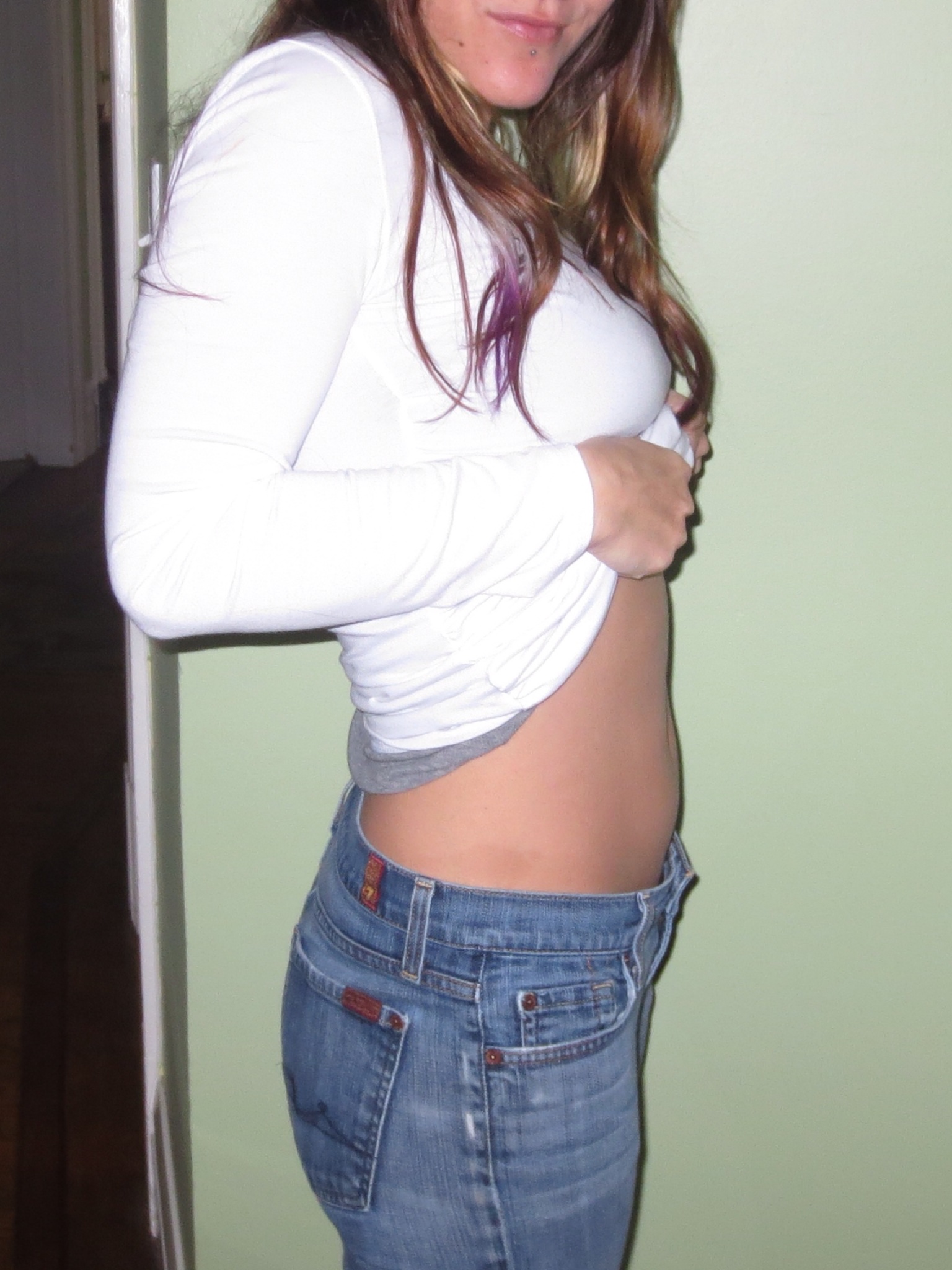 Still not really sure I consider this a bump. This was last Thursday at 14 weeks. It's not hard to the touch yet - just at the bottom - and it shrinks in the morning. I can't wait til it looks like the real thing!