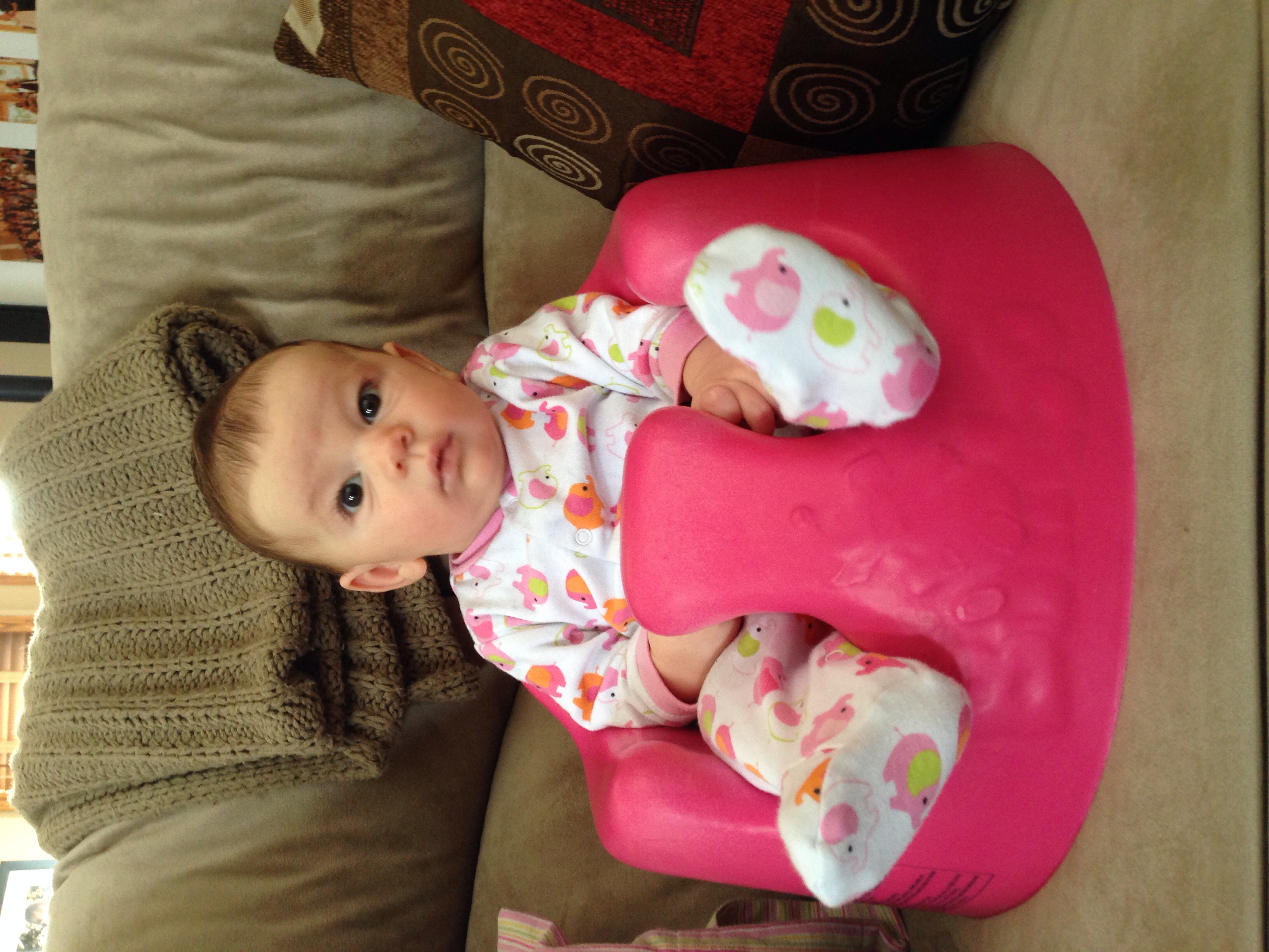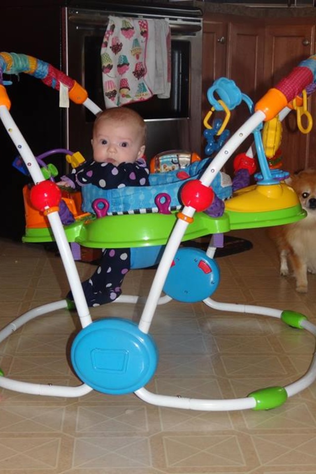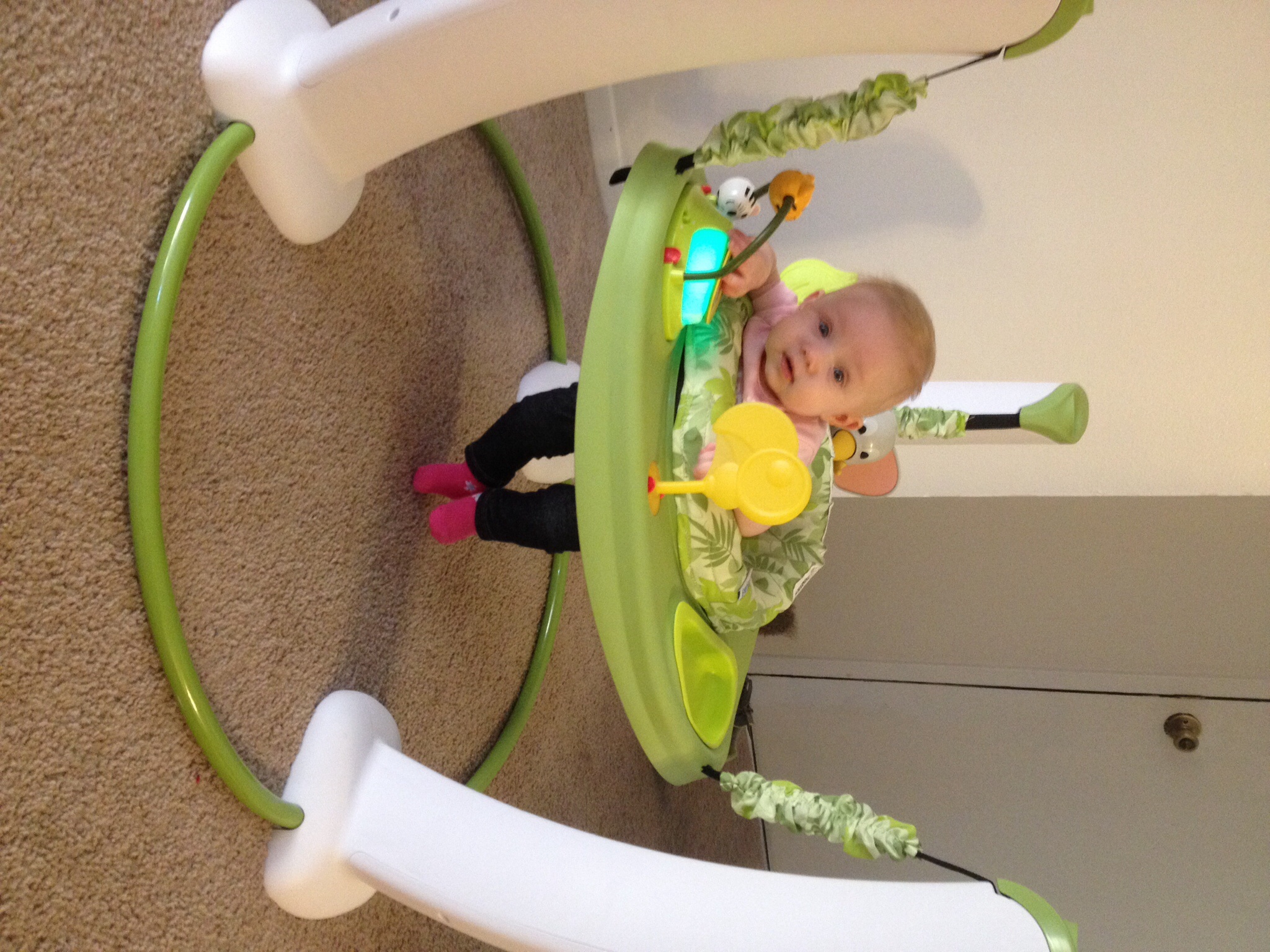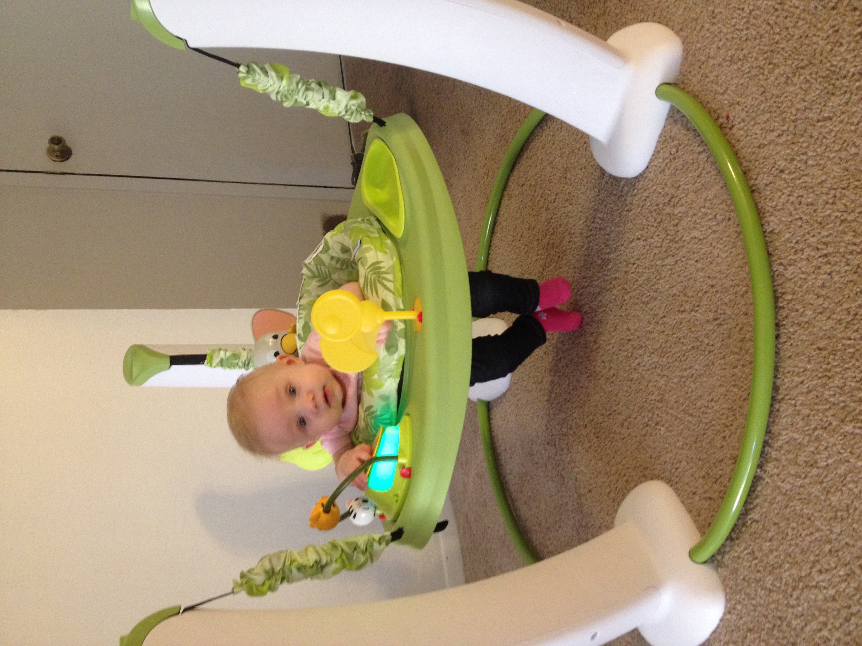 We tried out the jumperoo. She was just hanging around! She has some growing to do.