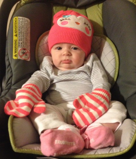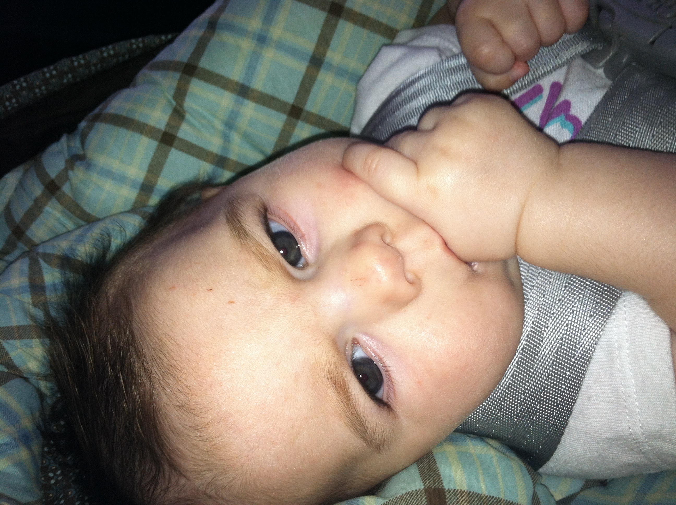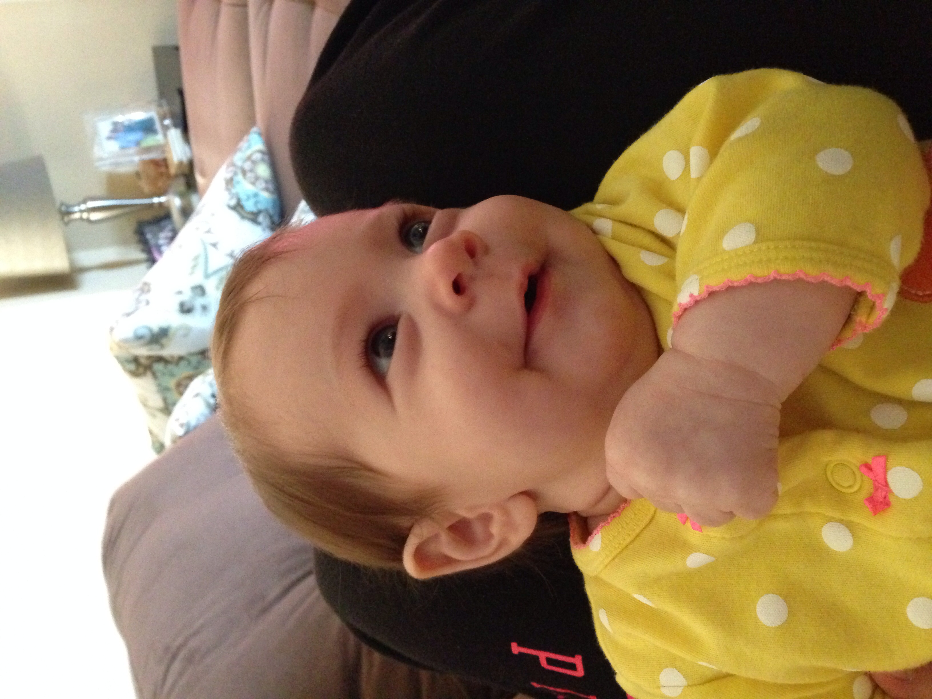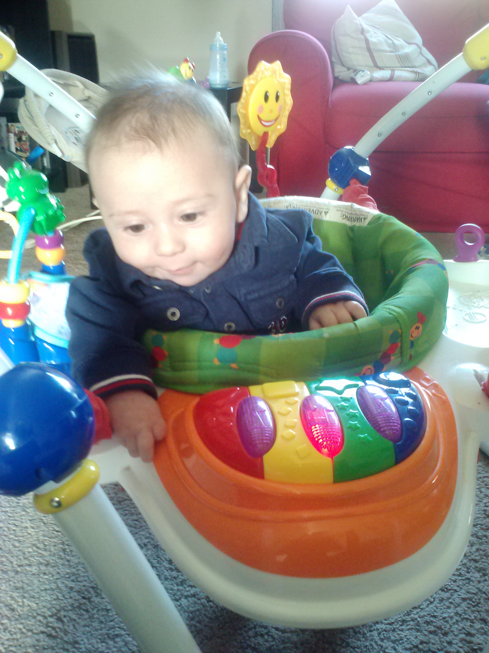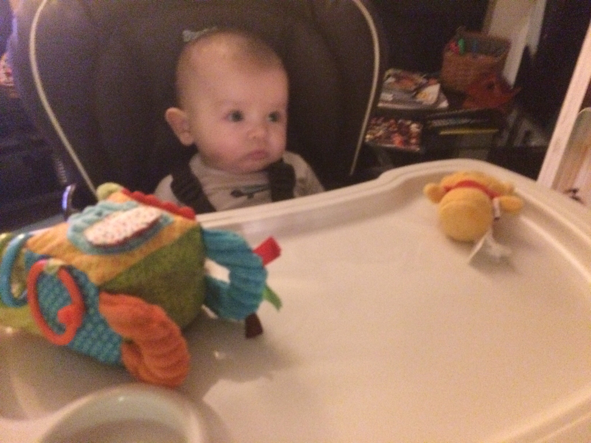 We tried out the jumperoo. She was just hanging around! She has some growing to do.