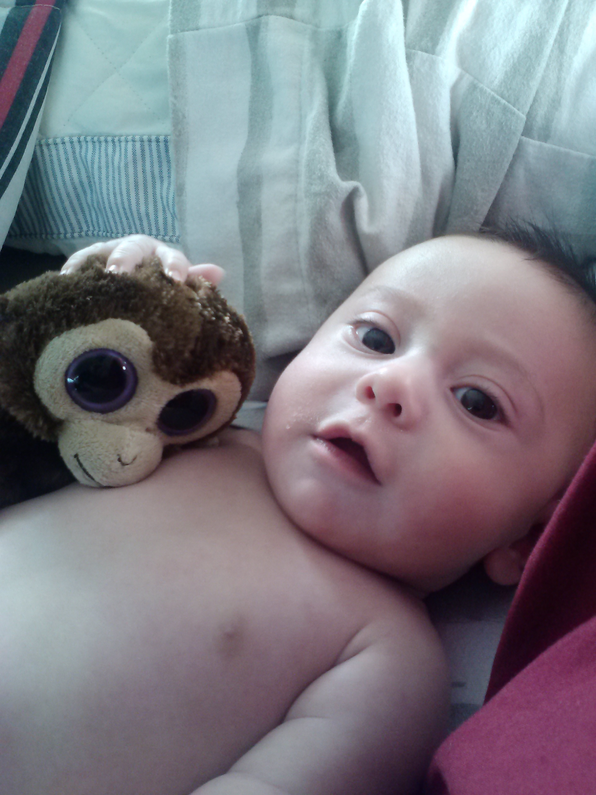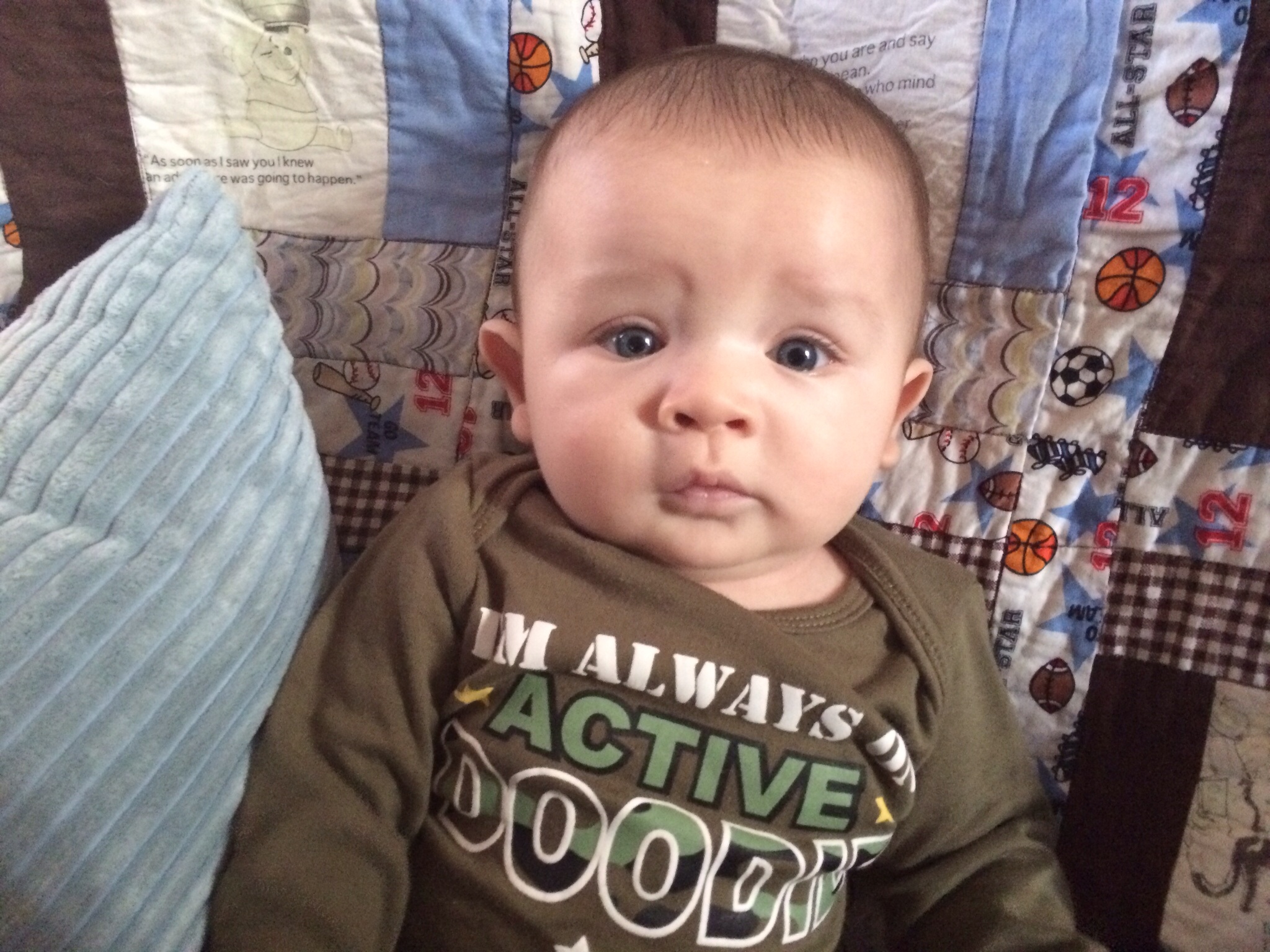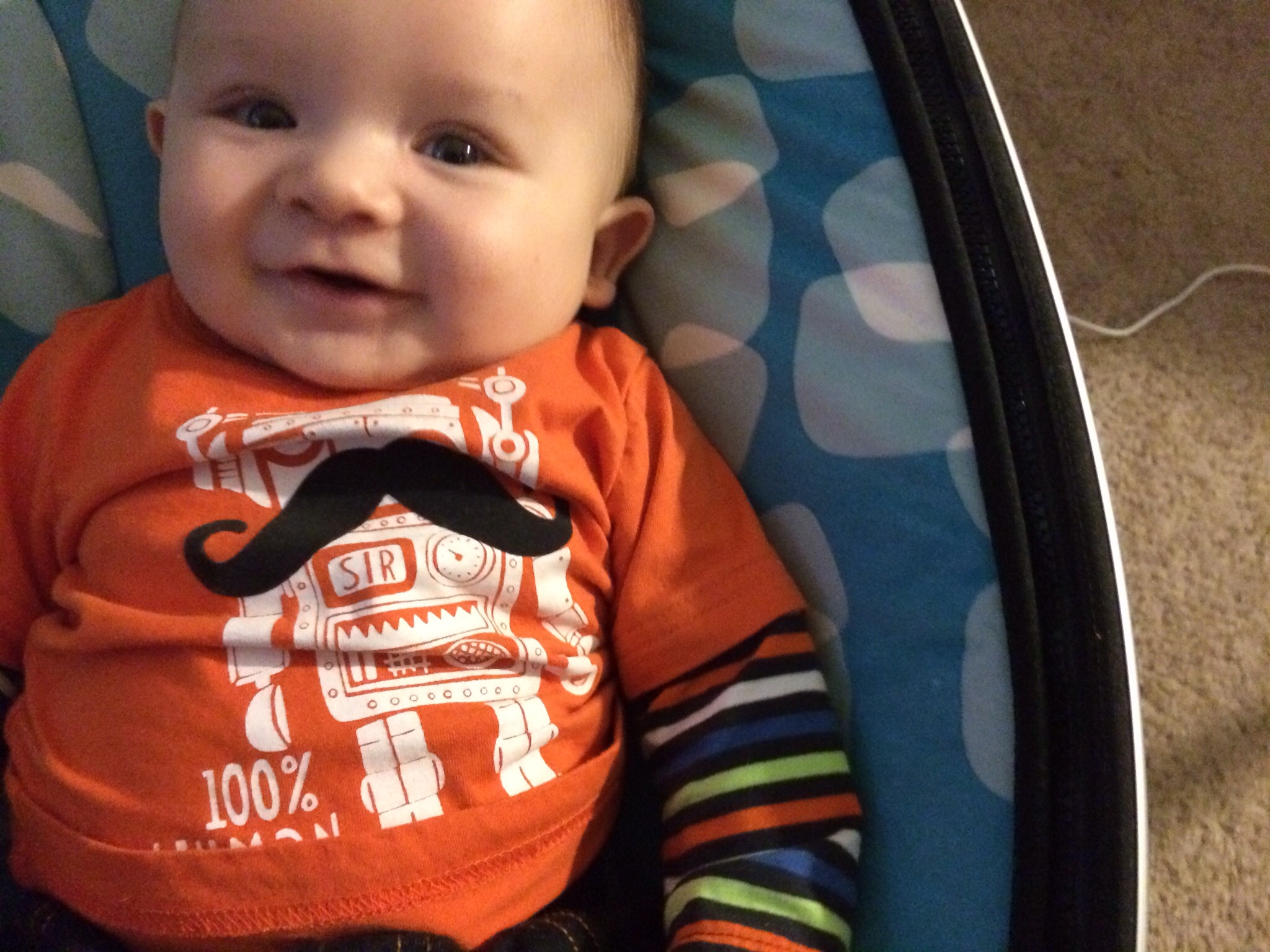 Well everyone is looking too cute this week!! I can't believe how big they've all gotten!! And how cute they've all stayed :P! Here is JT trying out his high chair. Posing in his veterans day outfit. And smiling in his mamaroo yesterday !