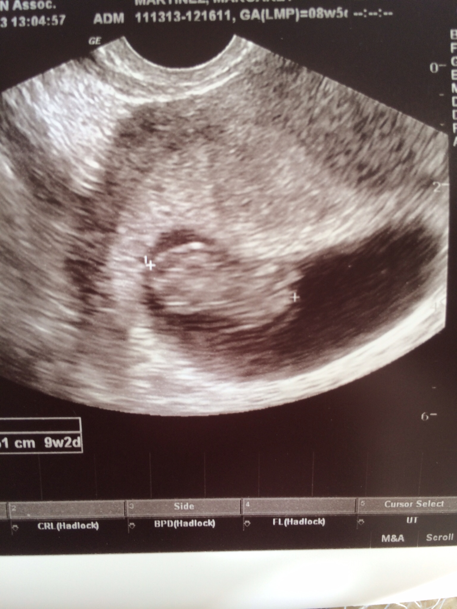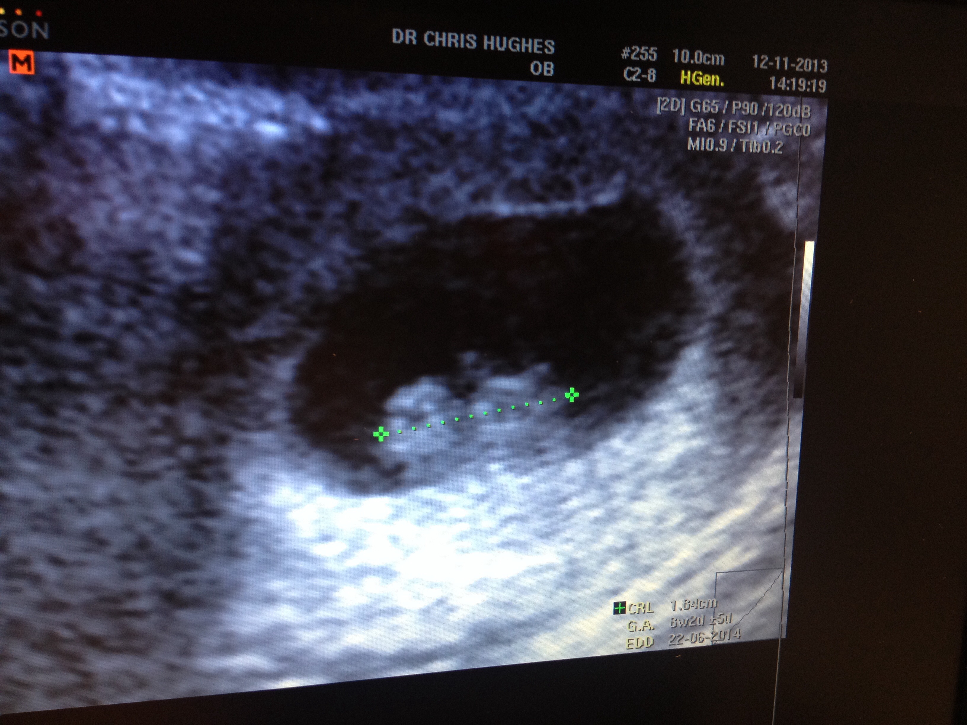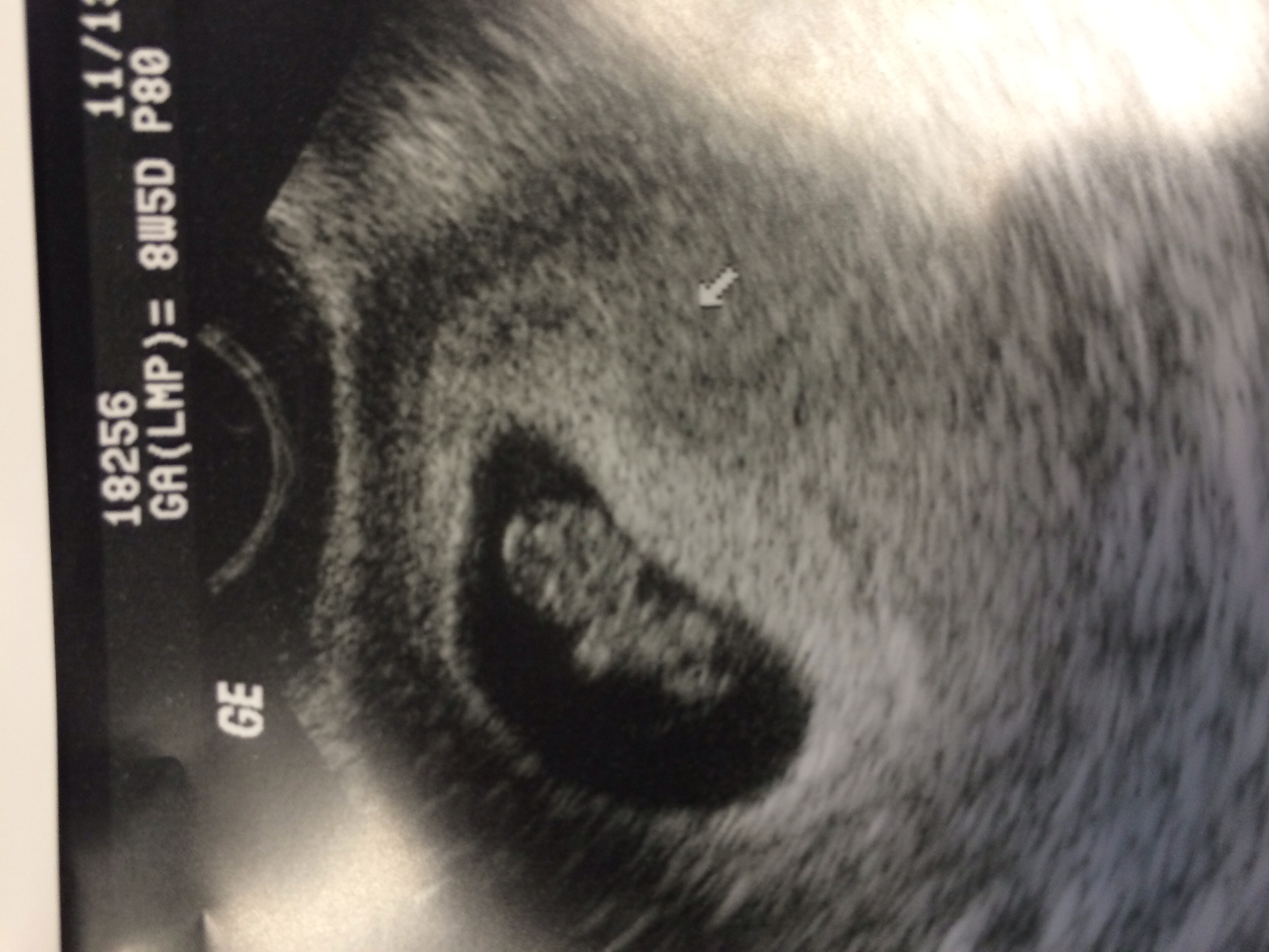 Here's ours at 8w5d. I go back on Monday for the big NT and other testing ultrasound at 11w5d so hopefully we'll get better pics then :-)