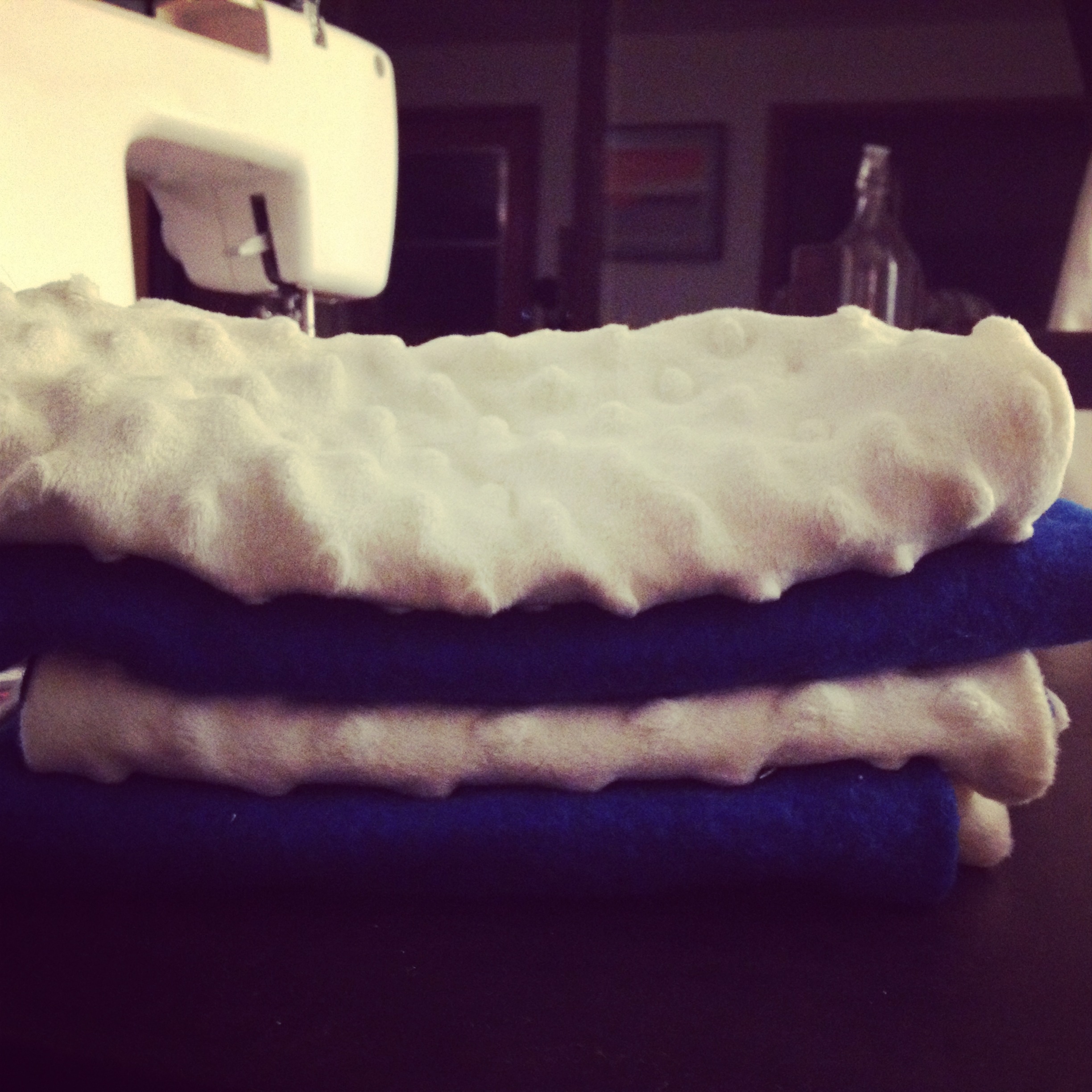 I kid, I kid. I actually did work on a few things this week. The first to show off are a couple of taggie minky blankies. I made four of them -- one for myself, one for my SIL, and two for friends that have had baby boys in the past 3 weeks.