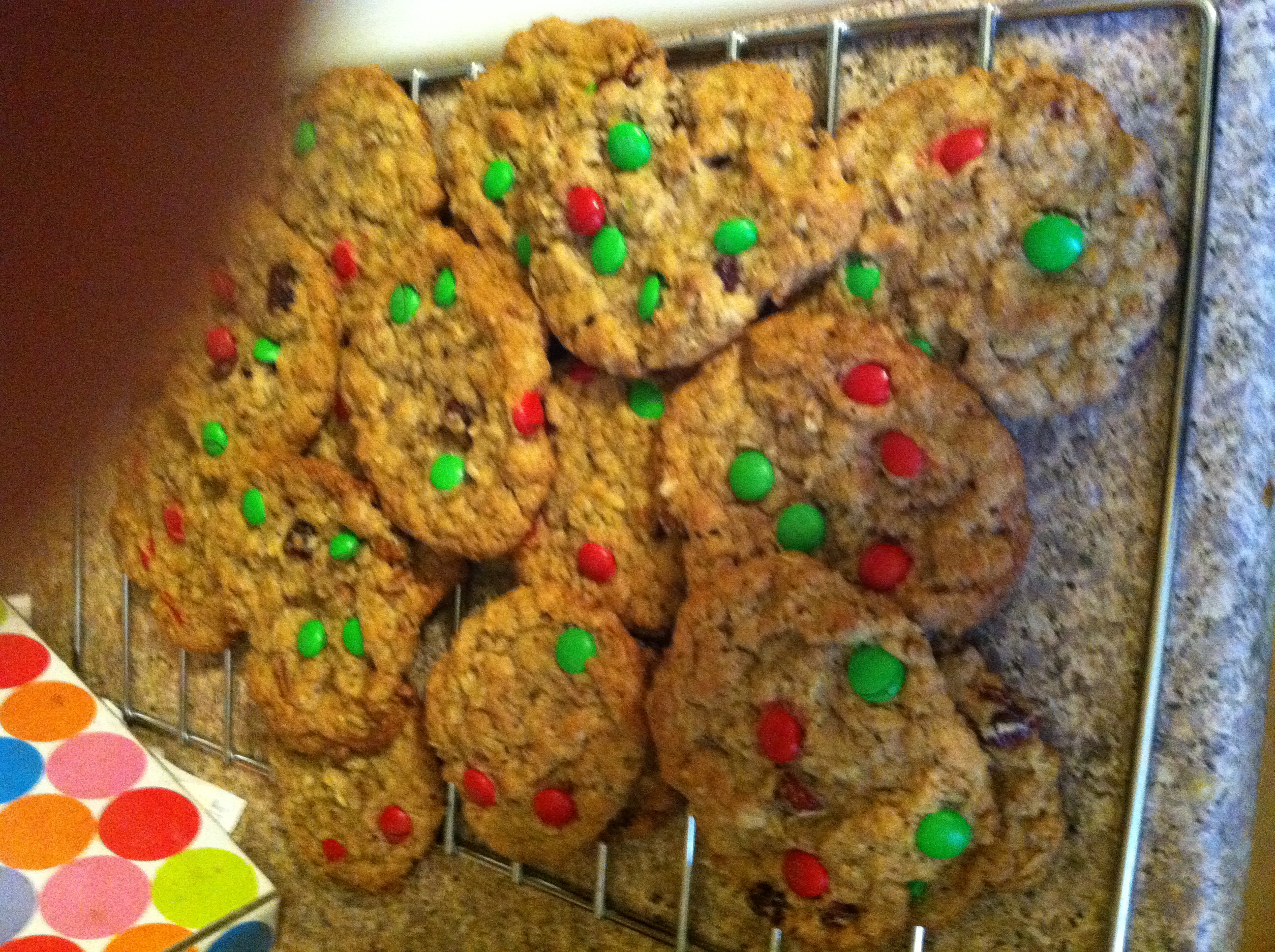 1 cup (approximate) dark chocolate chip M&Ms (substitute with an organic version if you are so inclined)