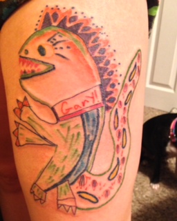 Here's my latest one. It's a T-Rex my DD drew earlier this year. His name is Gary. All the artists @ the tattoo parlor thought it was awesome.