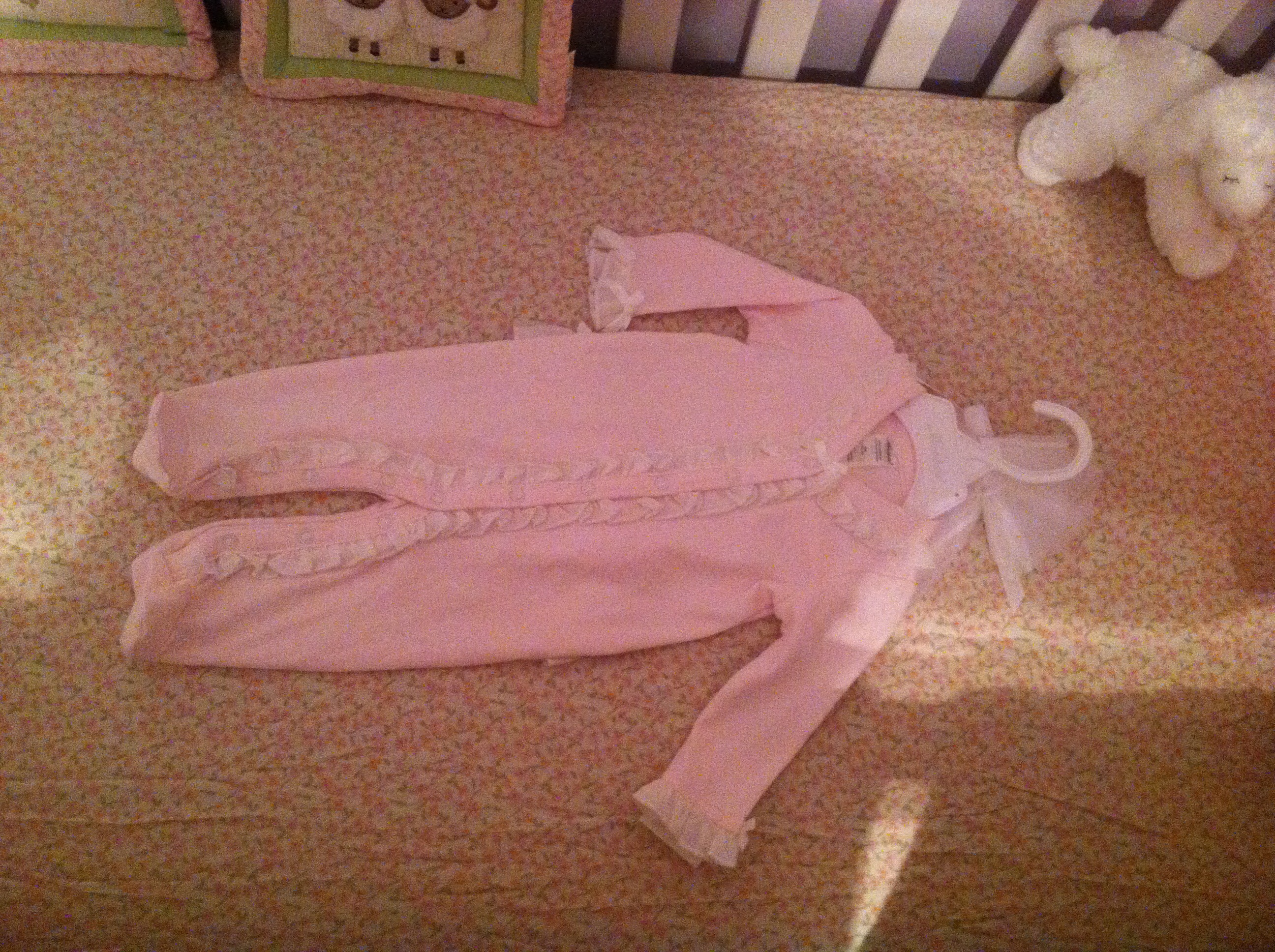 Our other two kids have worn this home, so this one will too! There's a matching hat floating around here somewhere that I need to find before she comes.