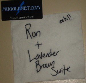 • I was 17 and at a Harry Potter convention in Vegas. I was hanging out with some friends in their hotel suite and we ended up drinking together, it was my first time having alcohol. By the end of the night, the hotel's hot tub was overflowing with bubbles and someone had pinned this napkin to the door of the room we were all gathered in (likely due to all the sloppy making out going on inside).