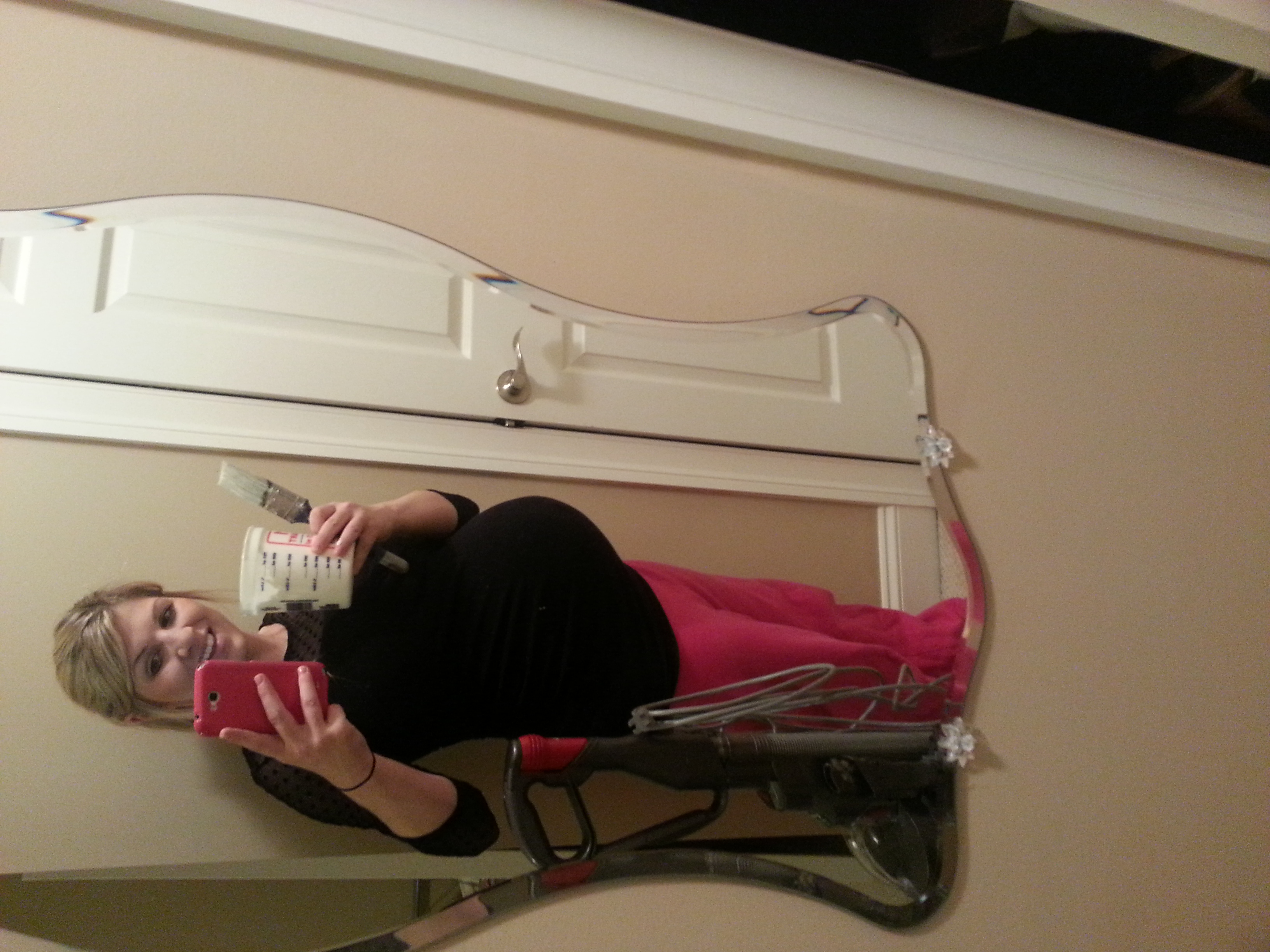 This one is my favorite because of what day it was/what I was doing. It was 5am and my water has just broke an hour ago. Im a bit of a neat freak and wanted to make sure my trim was painted before contractions got to intense and before I had a newborn to care for. Wth? So here I am with my bucket of paint and paintbrush...