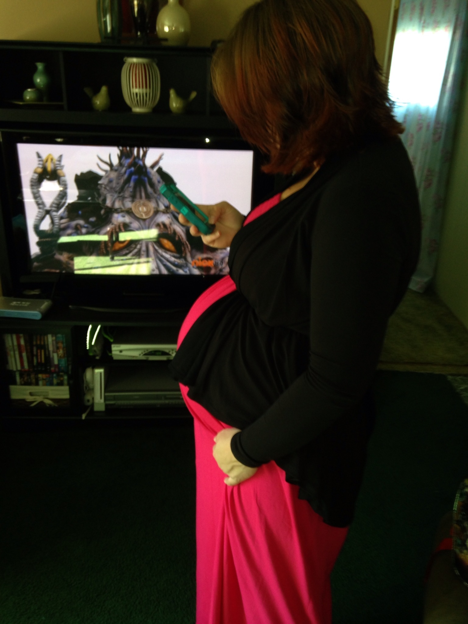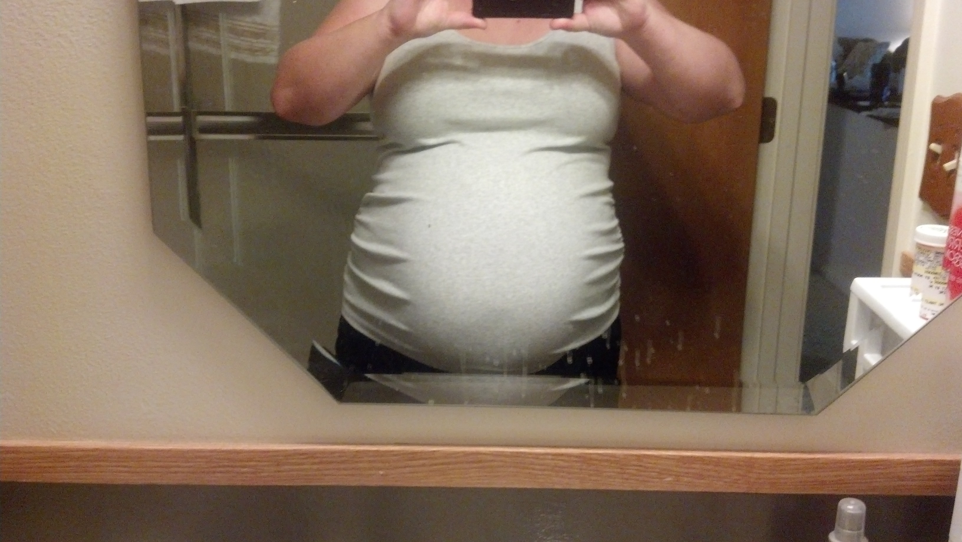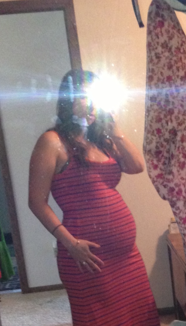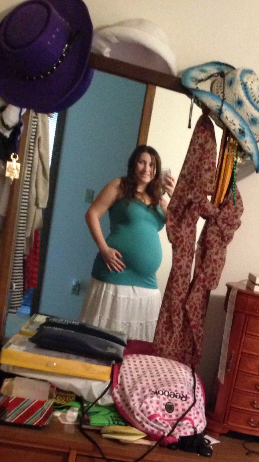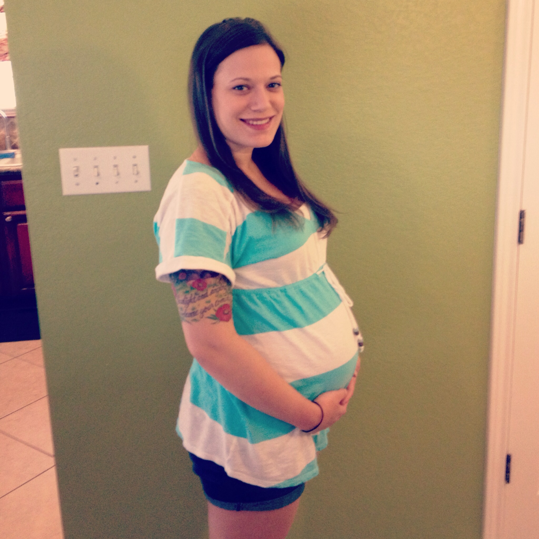 I think I was around 23 weeks here. It is the only photo (and probably day) that I was actually wearing makeup my entire pregnancy.