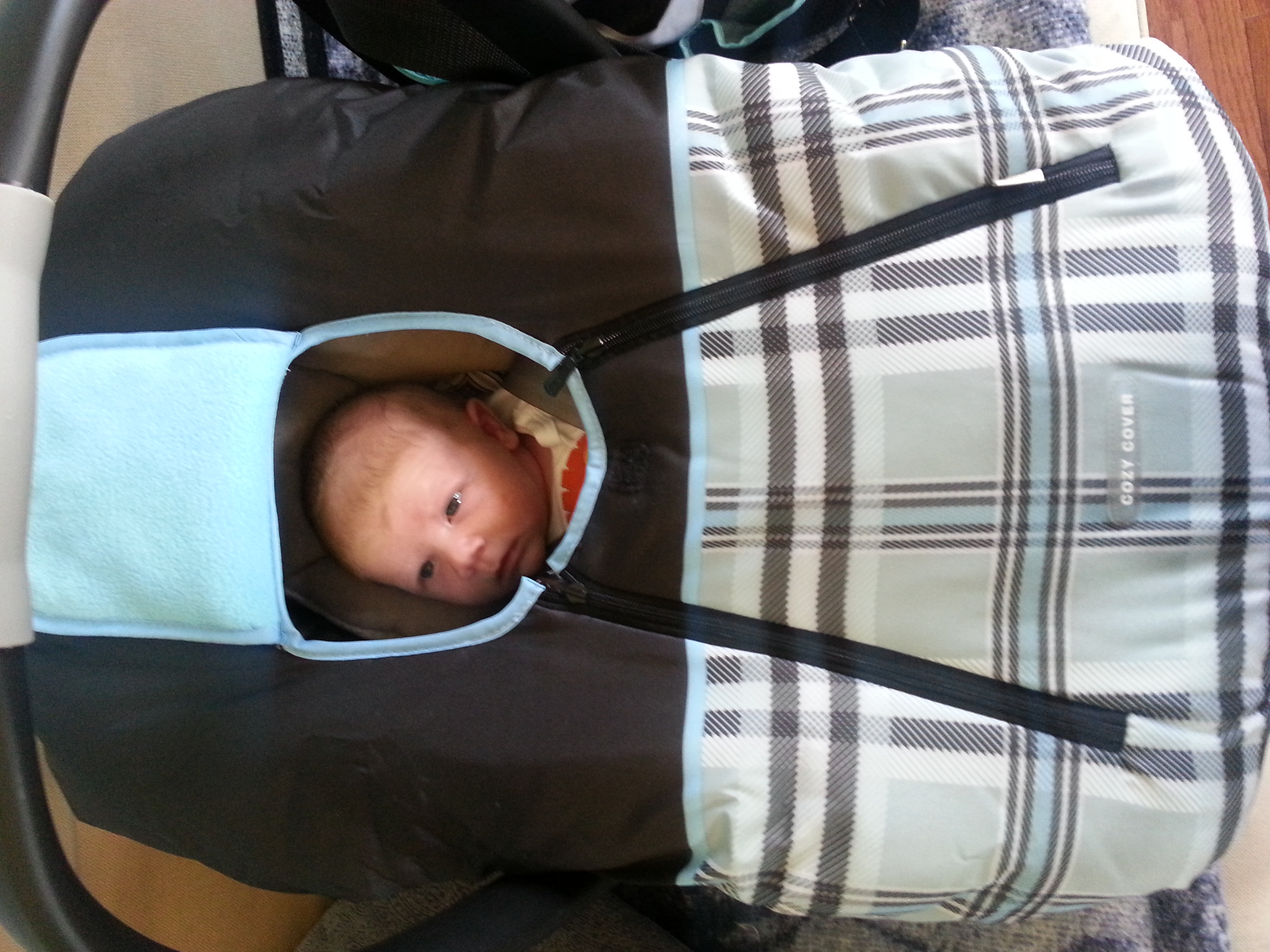 What are you dressing your LO's in when you go out? Usually I just put her in a long sleeve shirt & pants, socks and a hat and I have a fleece wrap around cover for her car seat that I zip up. If I put a jacket or snow suit on I'm afraid she is going to overheat. She is only outside for a matter of a few minutes when we get out of the car to go into a store. Other then the time it takes to get out of te car and into the store she is in the heat.