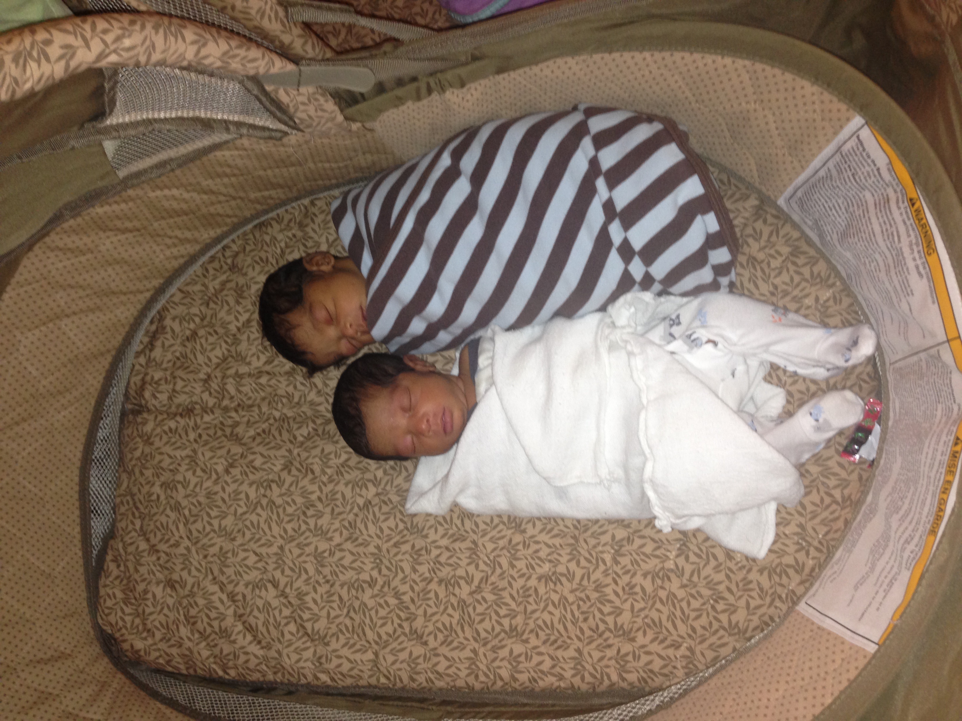 OMG adorable!!! Good weights, too, but they still look so tiny in the pack n play!! Wow their hair is amazing and facial features are so defined! CUTE!!!