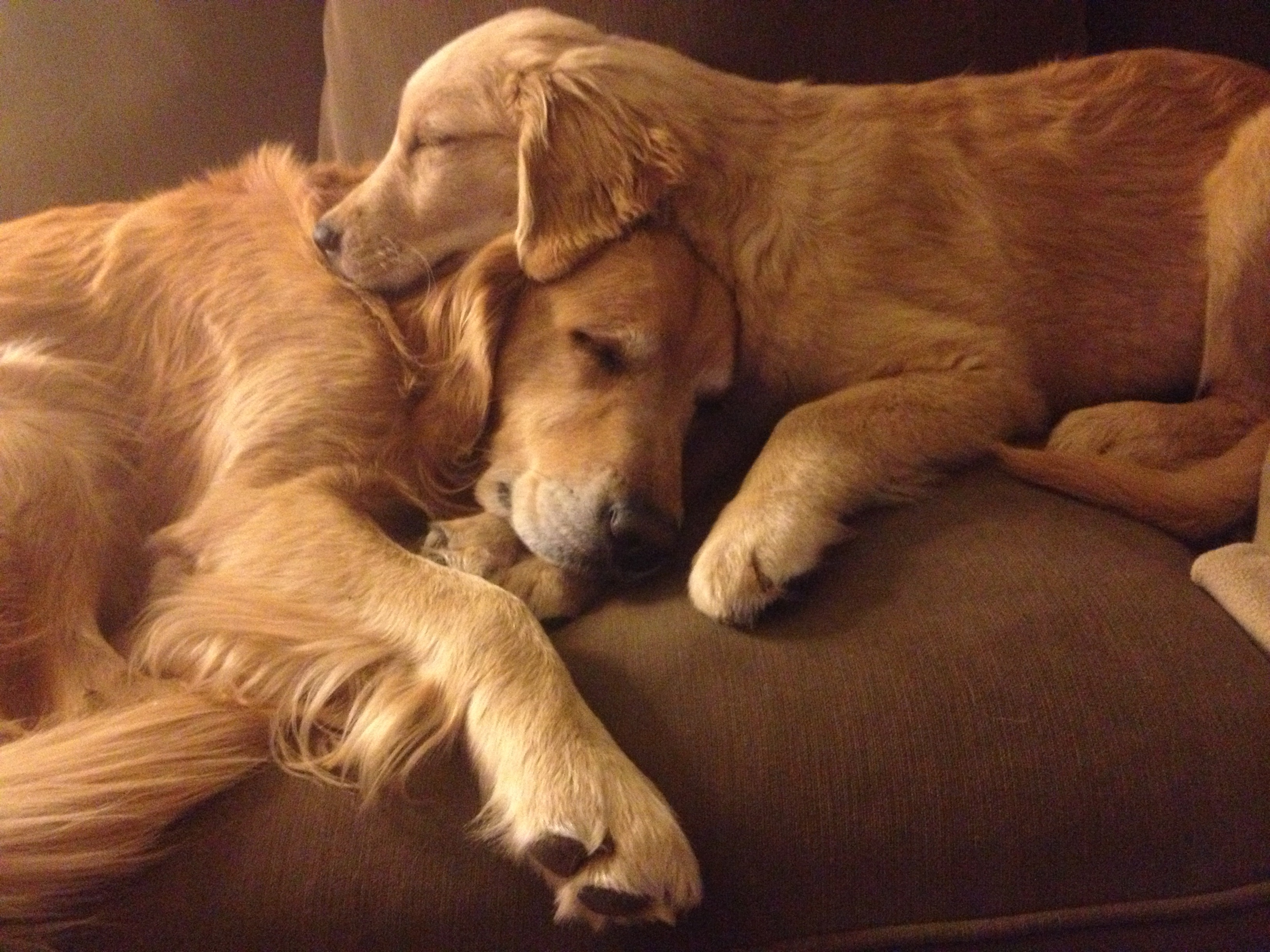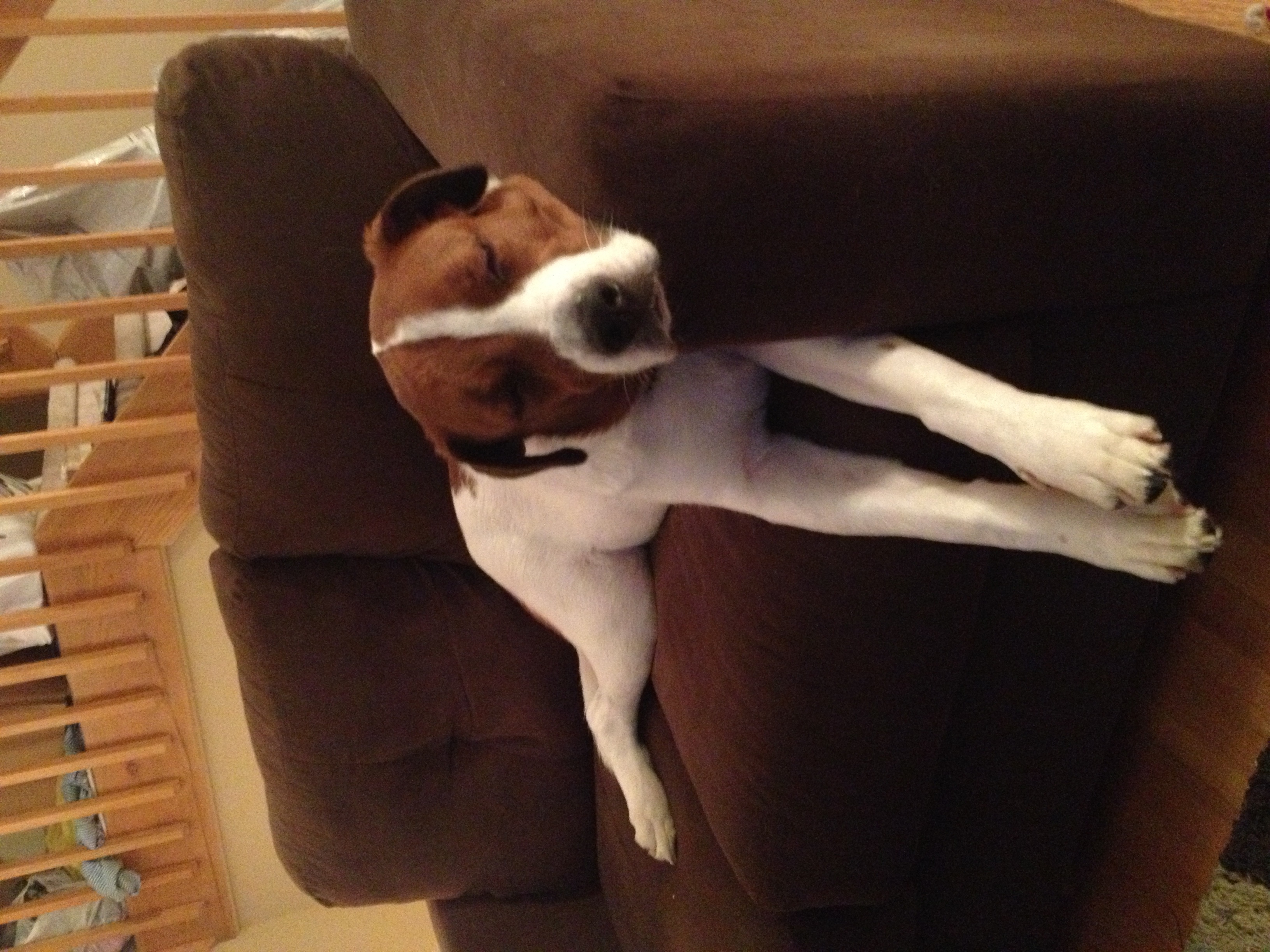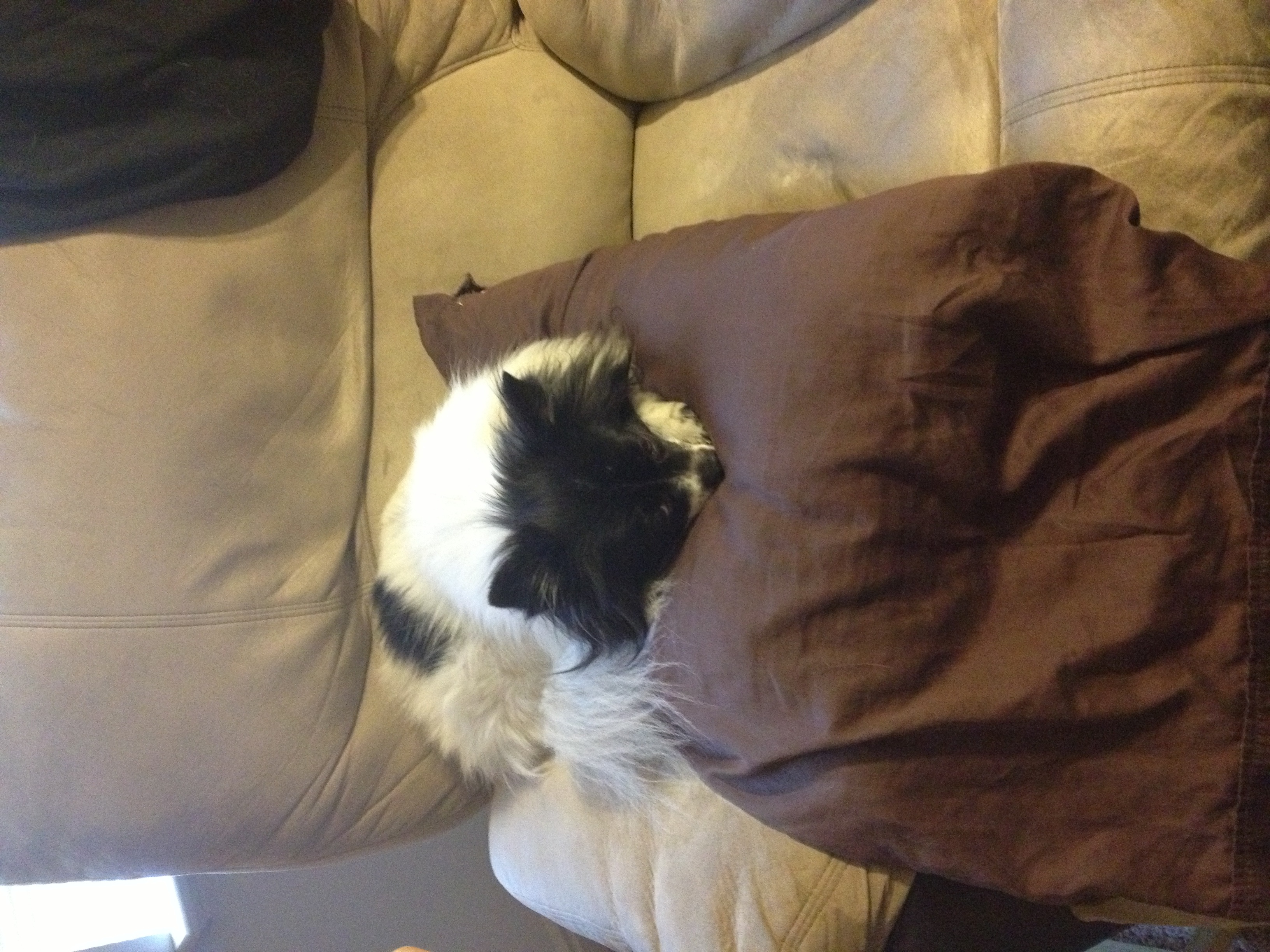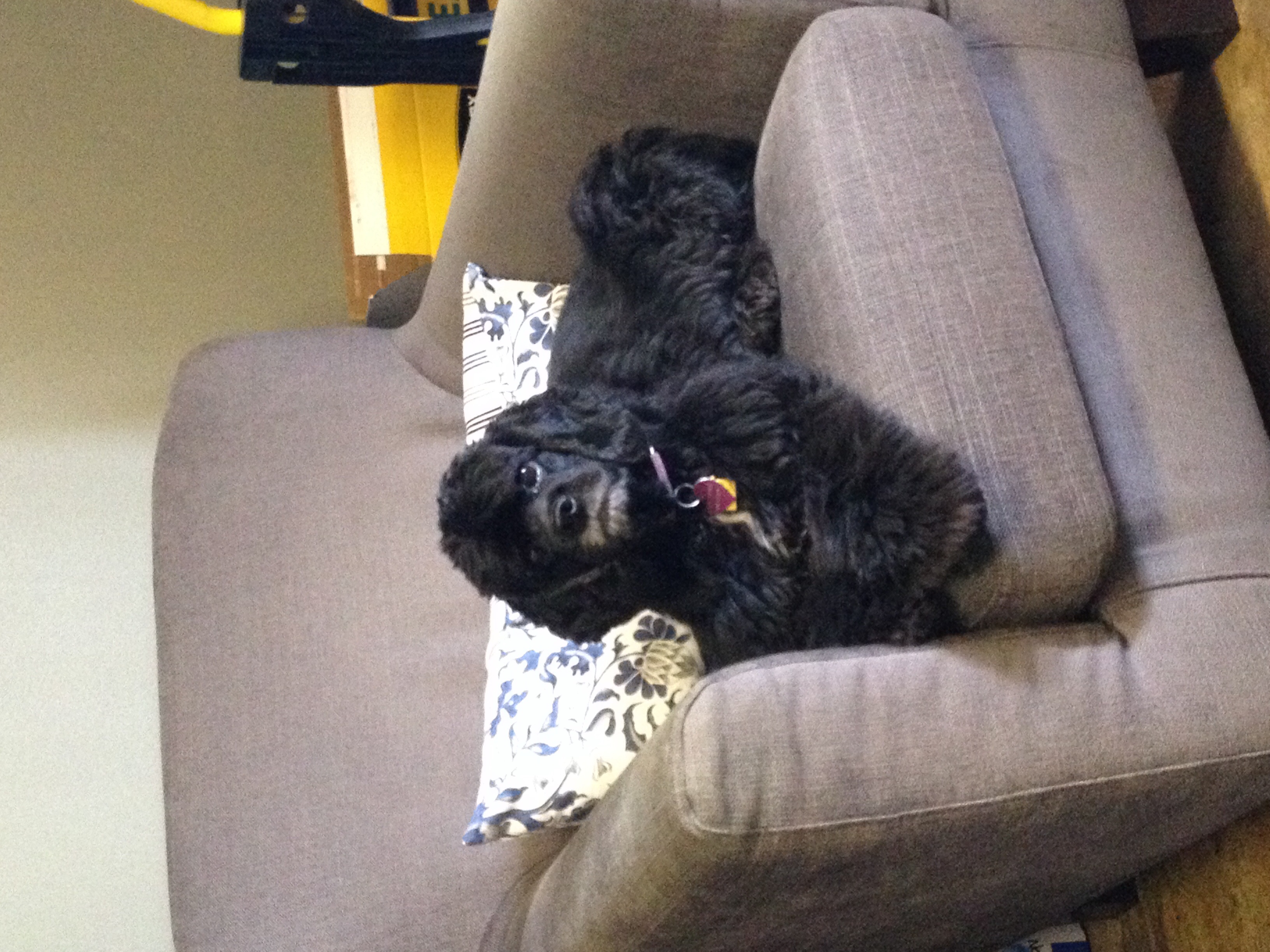 The first one is Kenzie - she was exhausted from her stay at the puppy hotel. The second is Wrigley, who worked hard to conquer the slippery pillow mountain. And the third is Gabby...she likes to steal my chair and pillow.