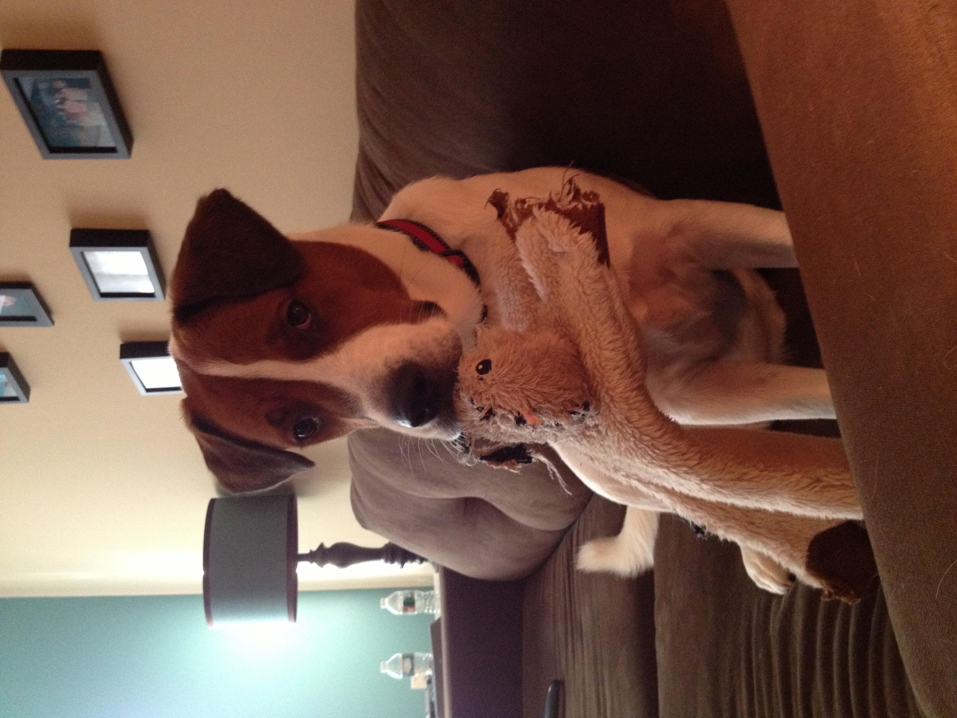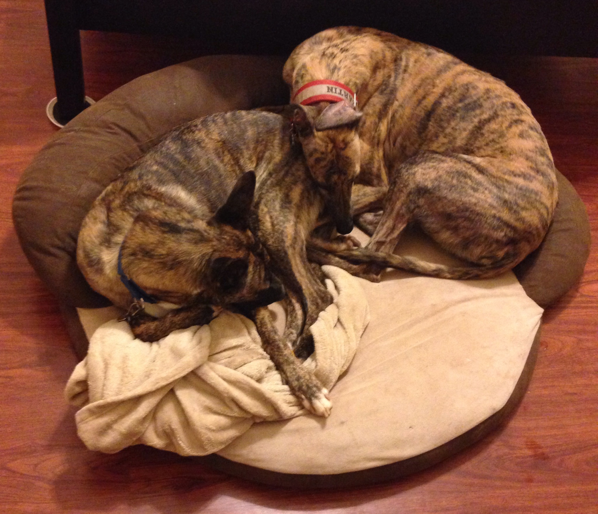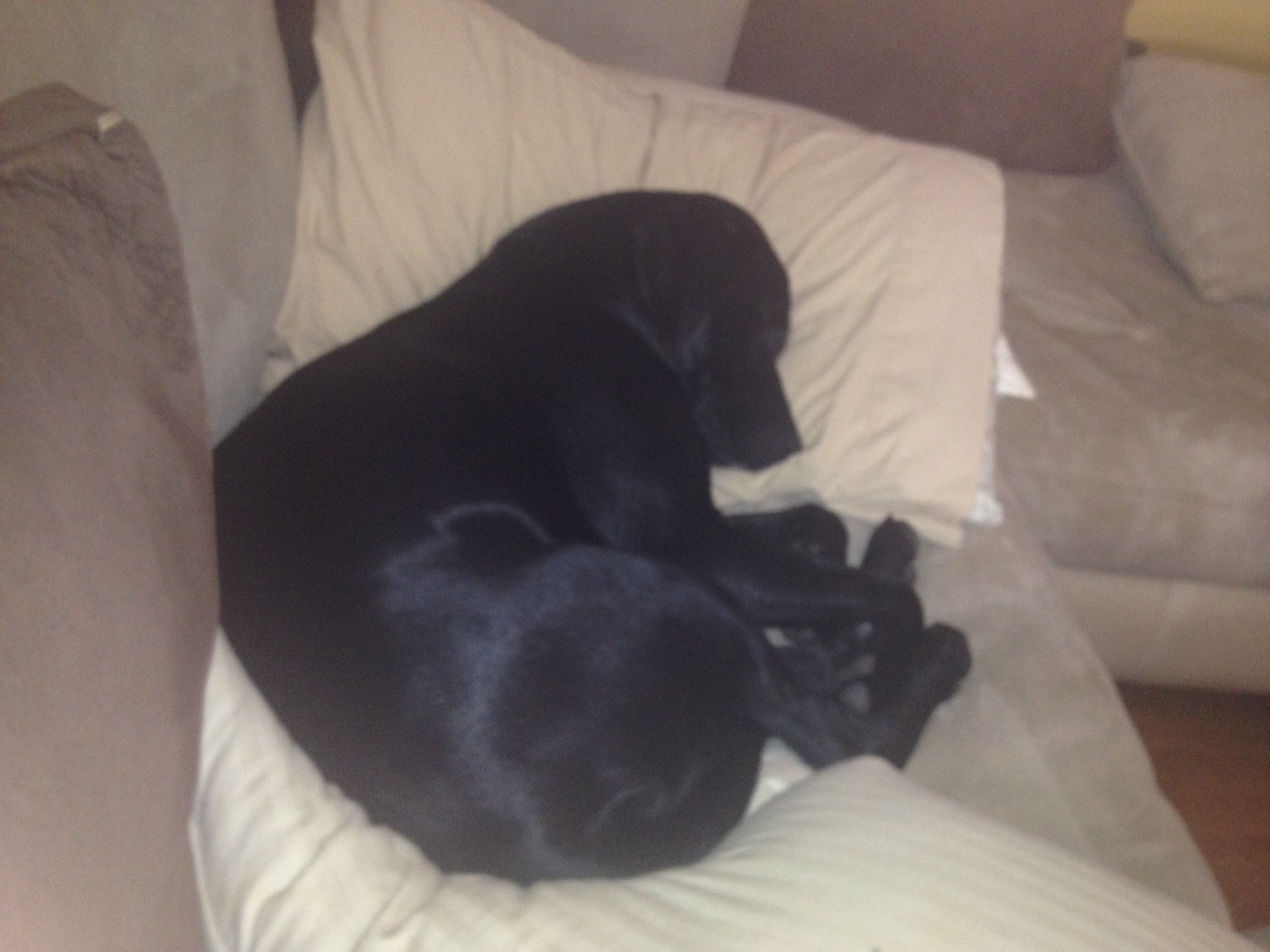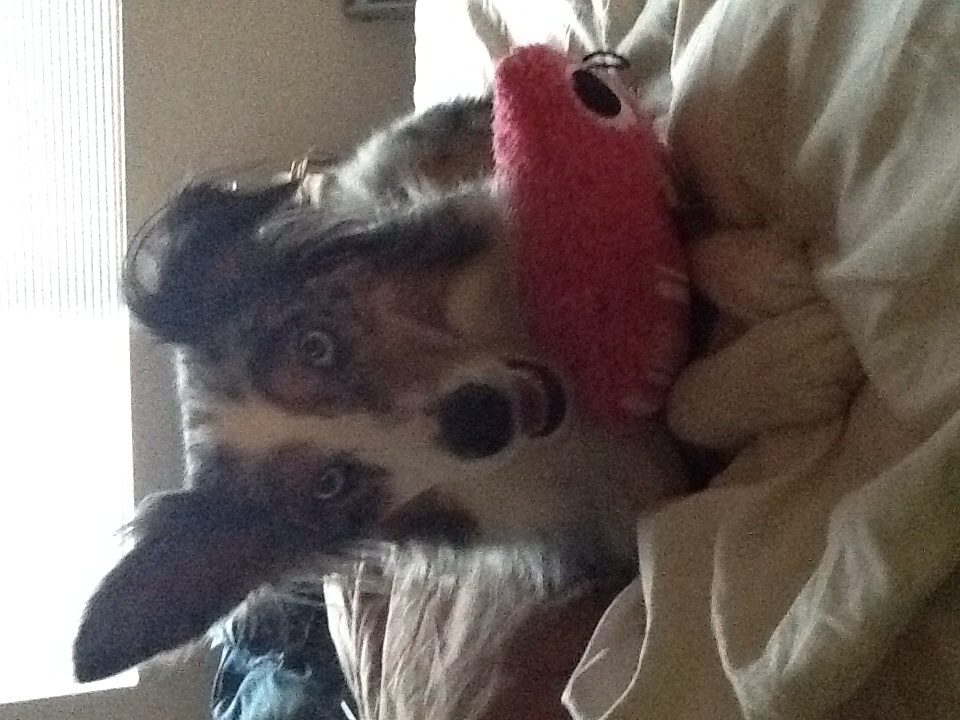 The first one is Kenzie - she was exhausted from her stay at the puppy hotel. The second is Wrigley, who worked hard to conquer the slippery pillow mountain. And the third is Gabby...she likes to steal my chair and pillow.