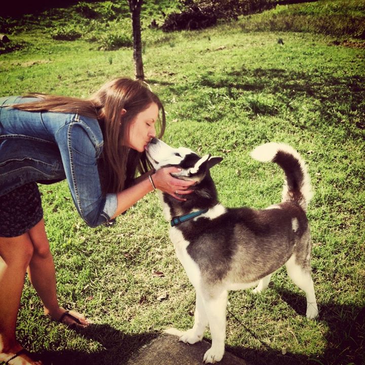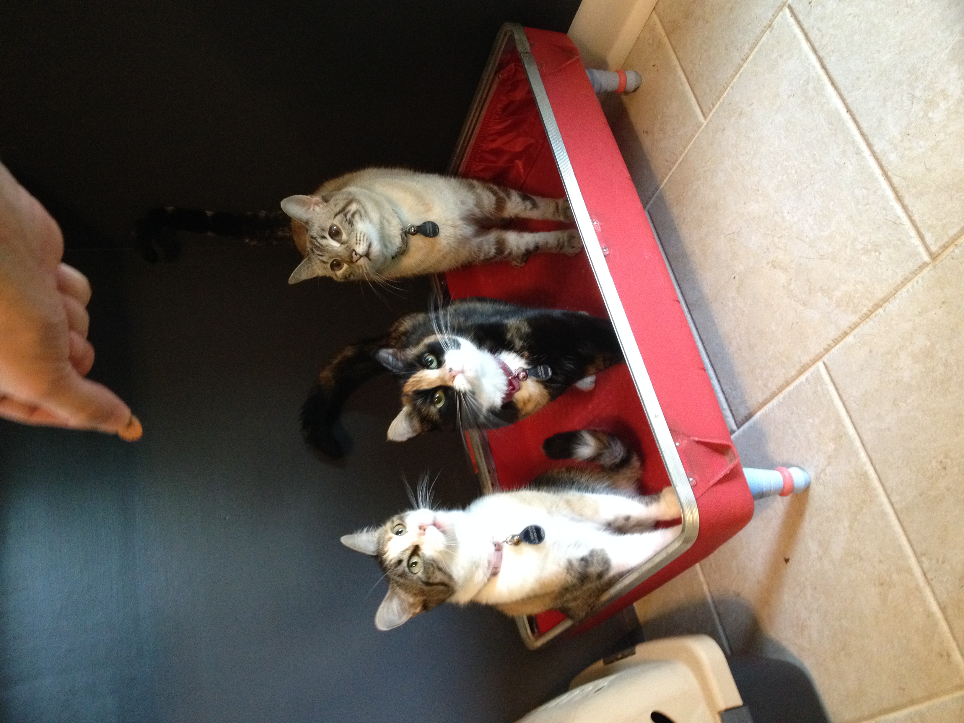 The cats are Rosie, Luna, and Sammy. The puppy is Maggie.