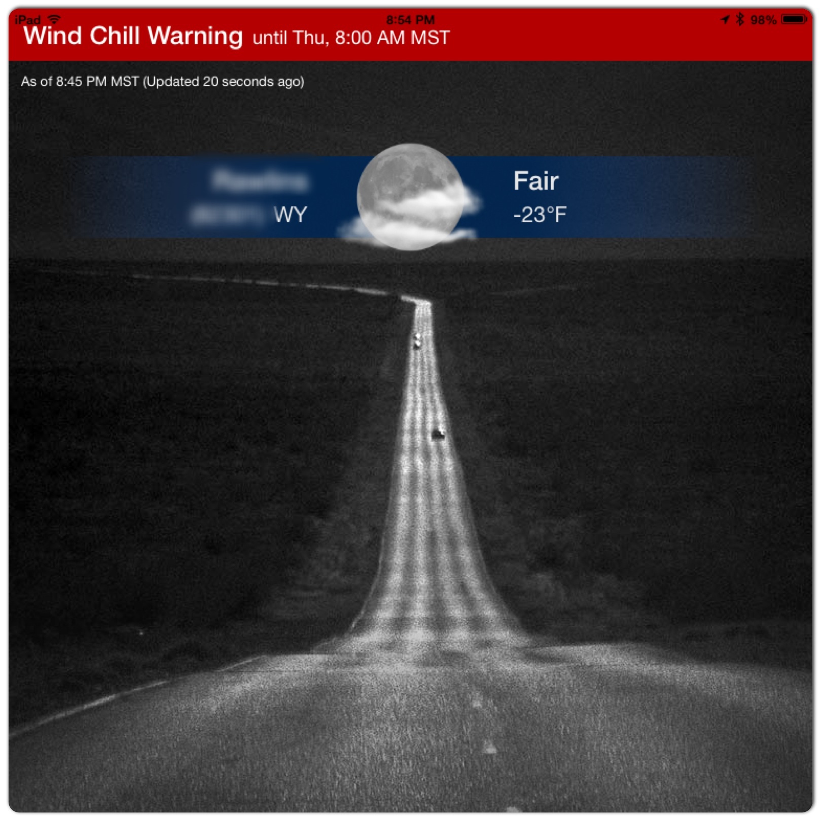 in SE Phoenix, it is 39F, partly cloudy with a chance of rain. So not too bad
