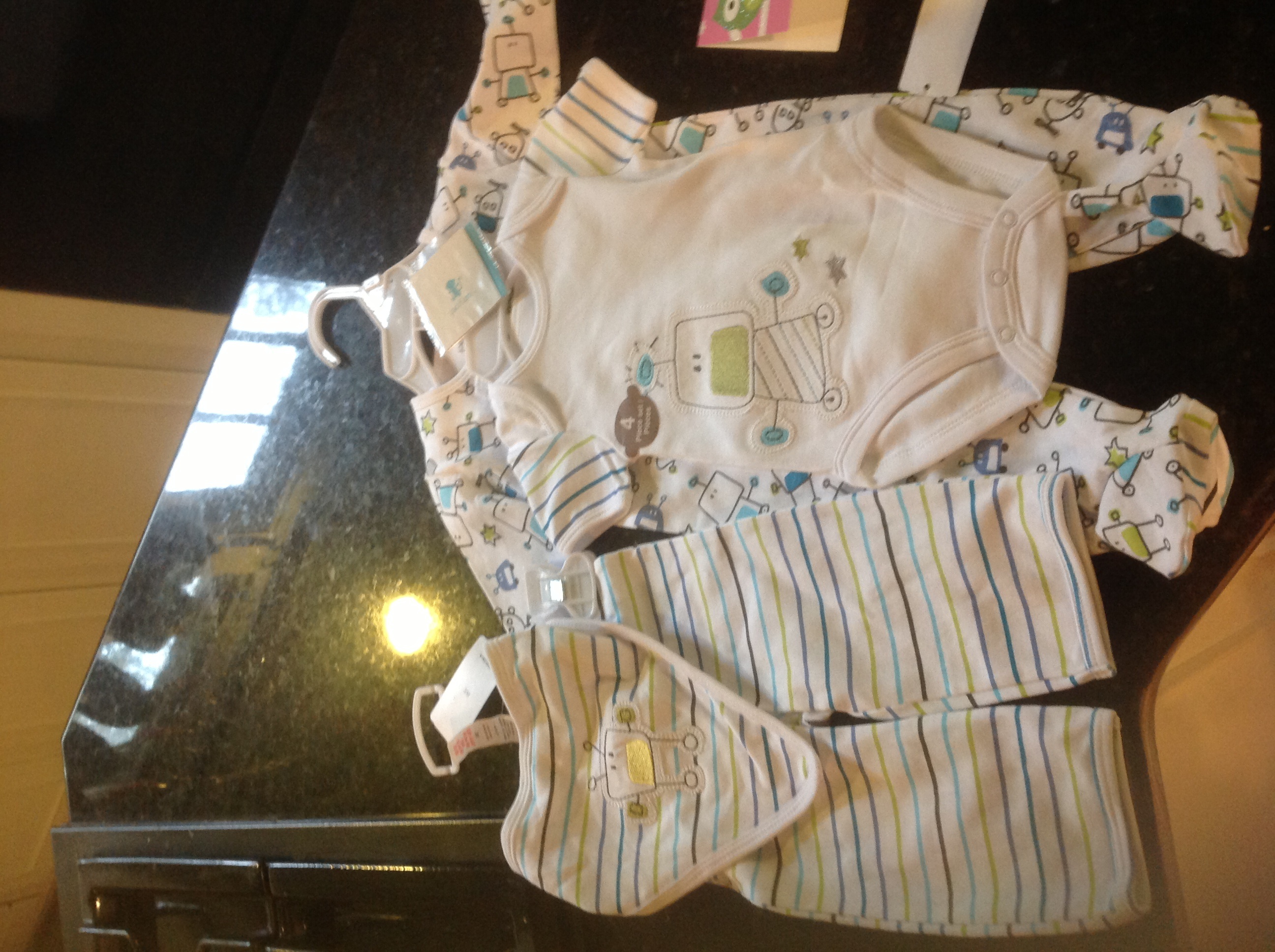 I was just sitting here looking at my adorable outfit from @mrscrcalli and it doesn't seem possible that in less than 20 weeks I will have a human small enough to wear tiny clothes. I think it was looking at the neck hole...but your lovely present just made me realize that I'm going to have a tiny person to dress soon. Wow. Hello, I'm pregnant.