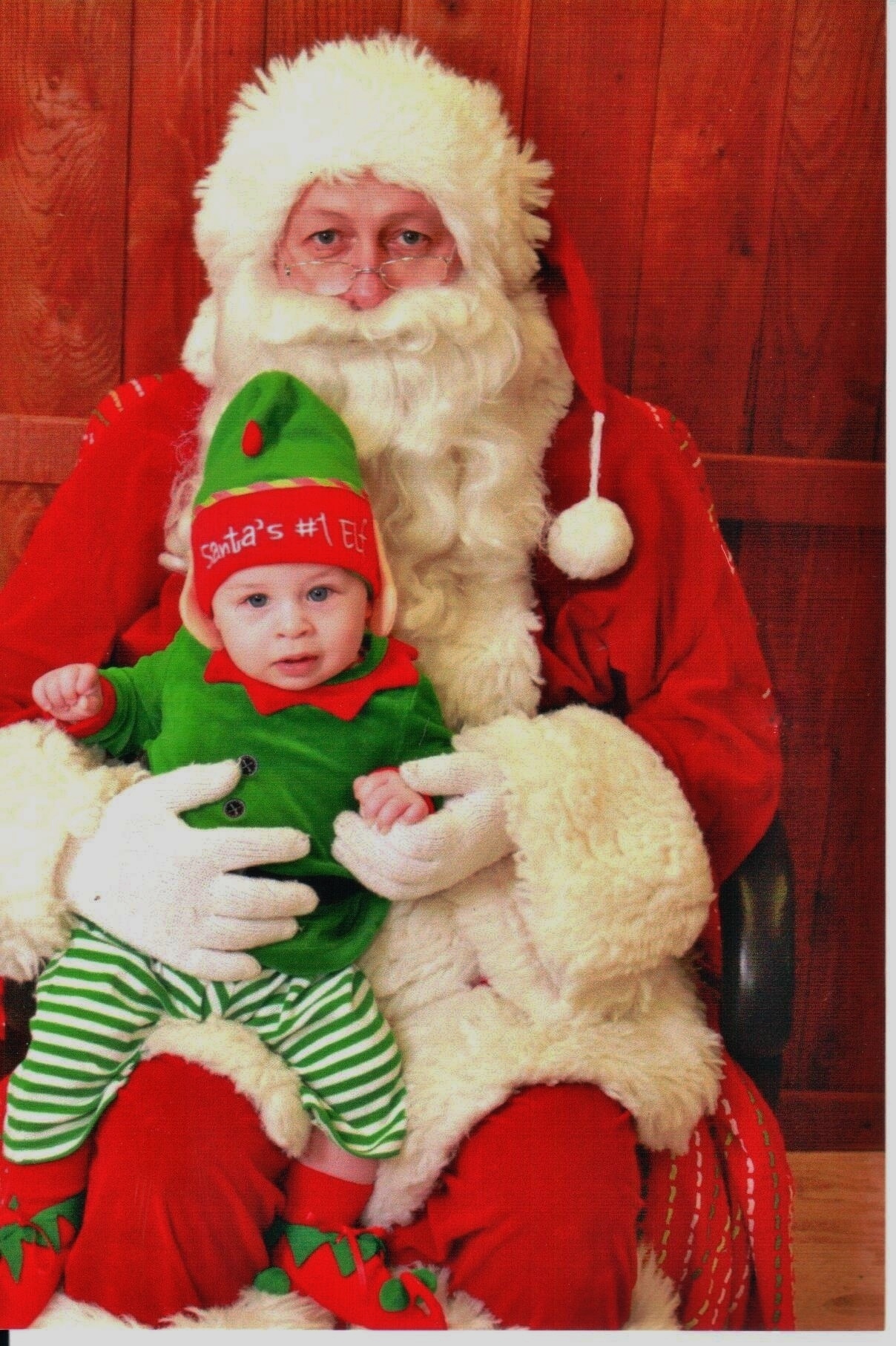 I thought it would be fun if we posted our LO's with Santa. We took our son to a local hardware store where they had free Santa pictures. He was the talk of the whole store in his elf costume!! We have one more place we are taking him next weekend. Gotta enjoy dressing him up while I can!!