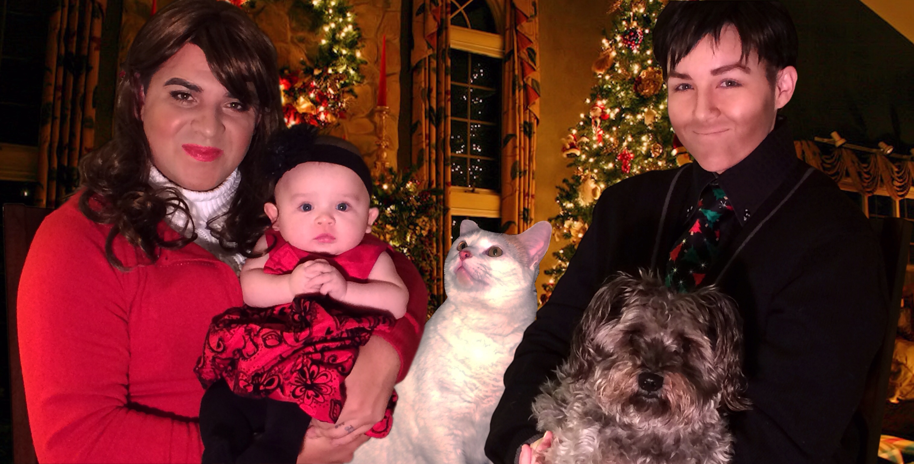 • would it be weird having us all in normal casual clothes, but G in a frilly xmas dress