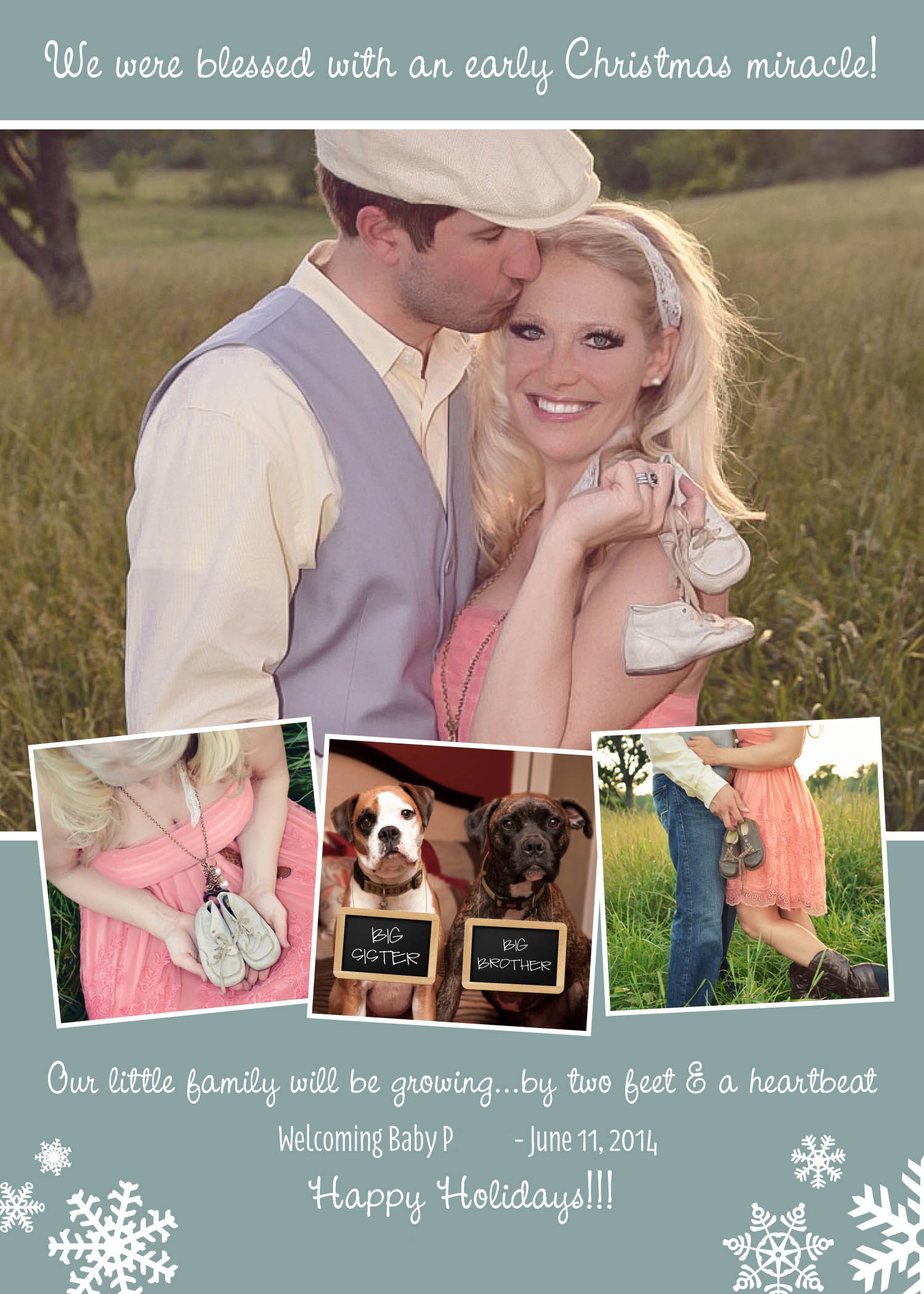We mailed out our Christmas cards last week and when we had confirmation that everyone out of the state had received them we announced on Facebook yesterday!!! It feels so amazing to share our great news with everyone!!!! I don't think we all could be pregnant at a more wonderful time of the year! Here is our announcement