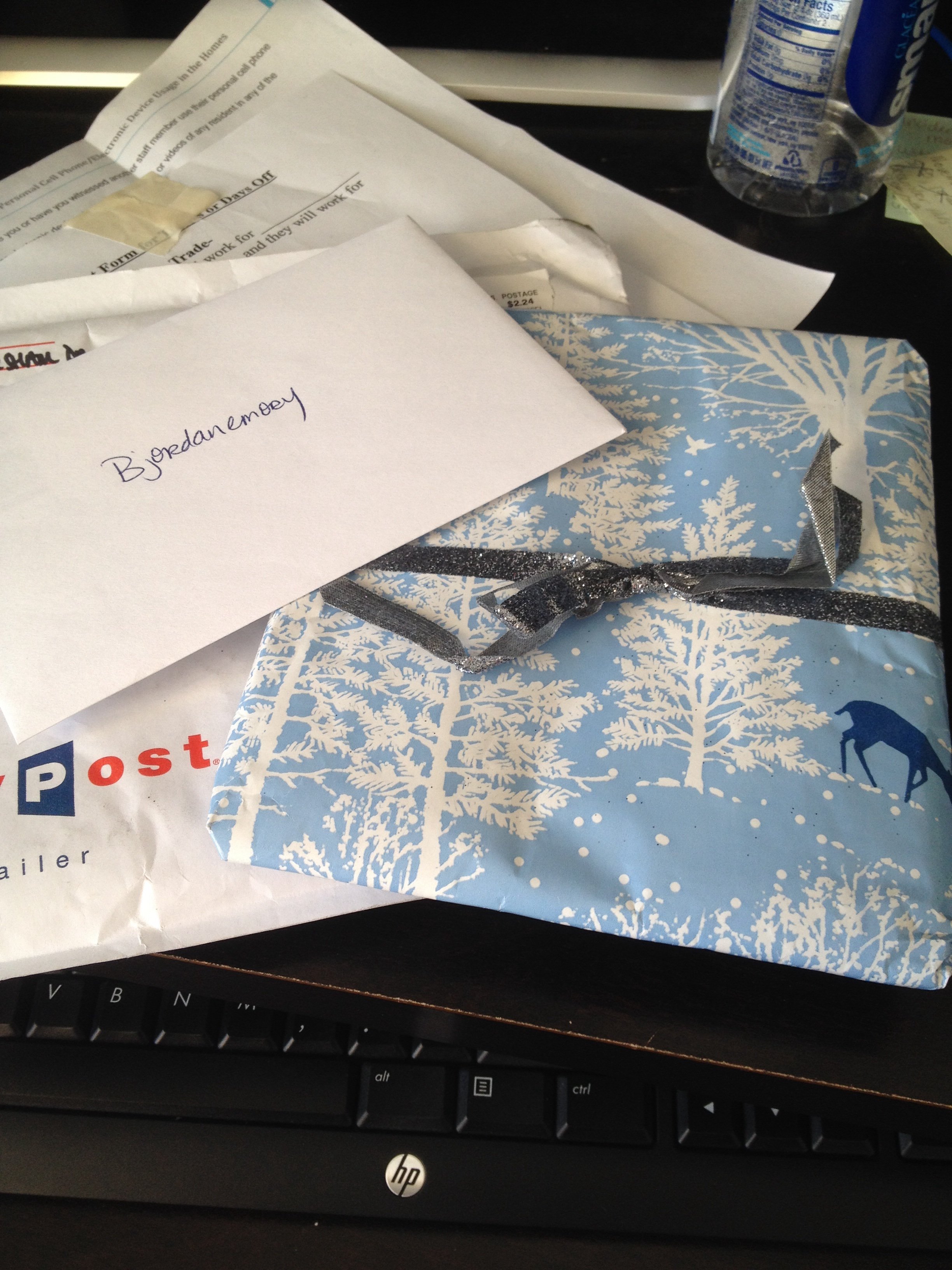 My person was supposed to receive theirs yesterday, but tracking shows that it hasn't gotten there yet. Shaking my fist at you, USPS! I paid for priority shipping!