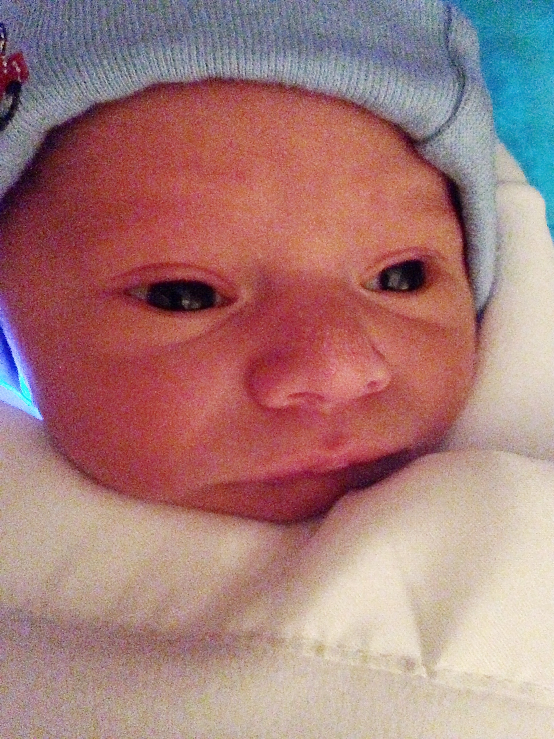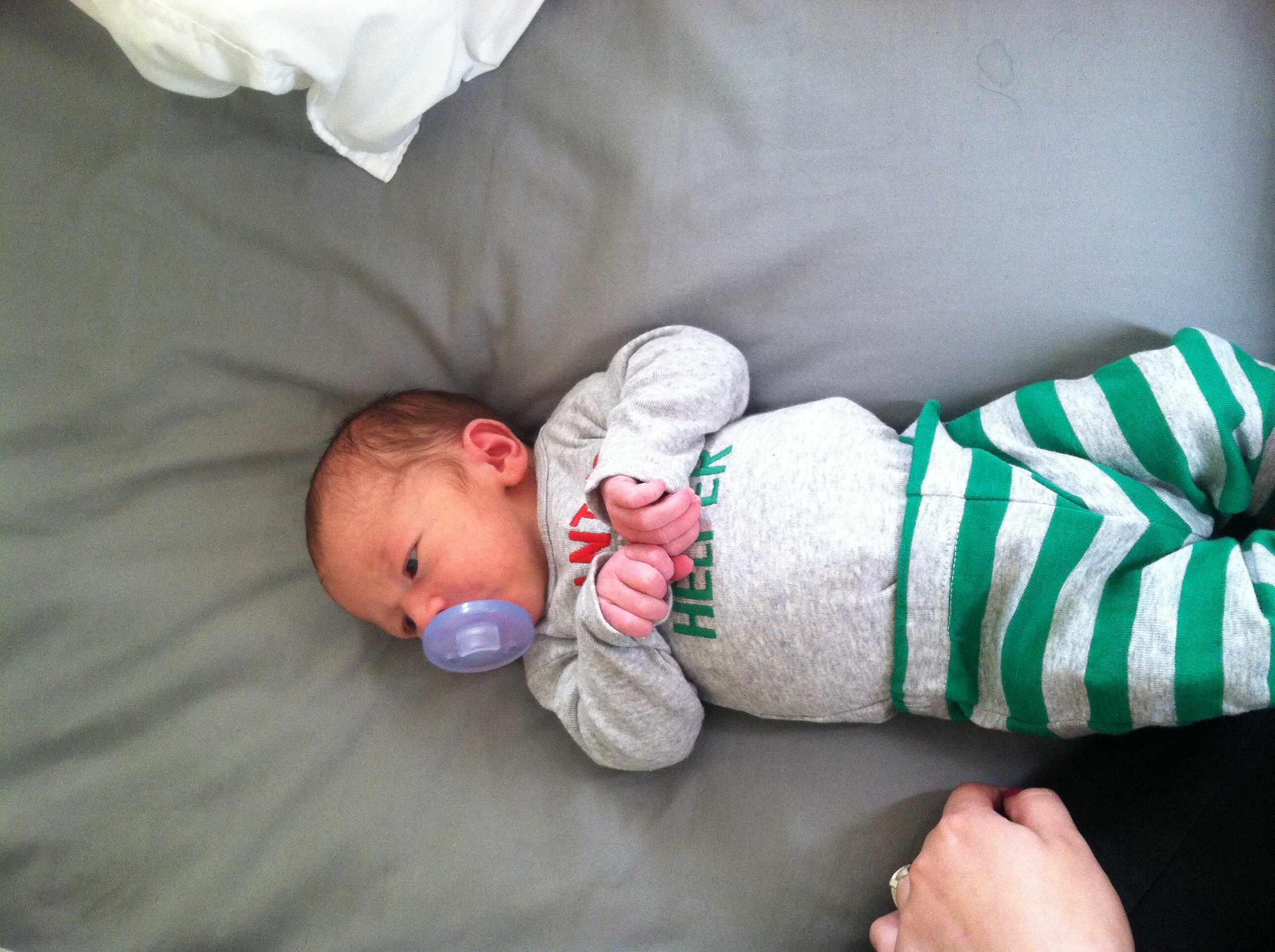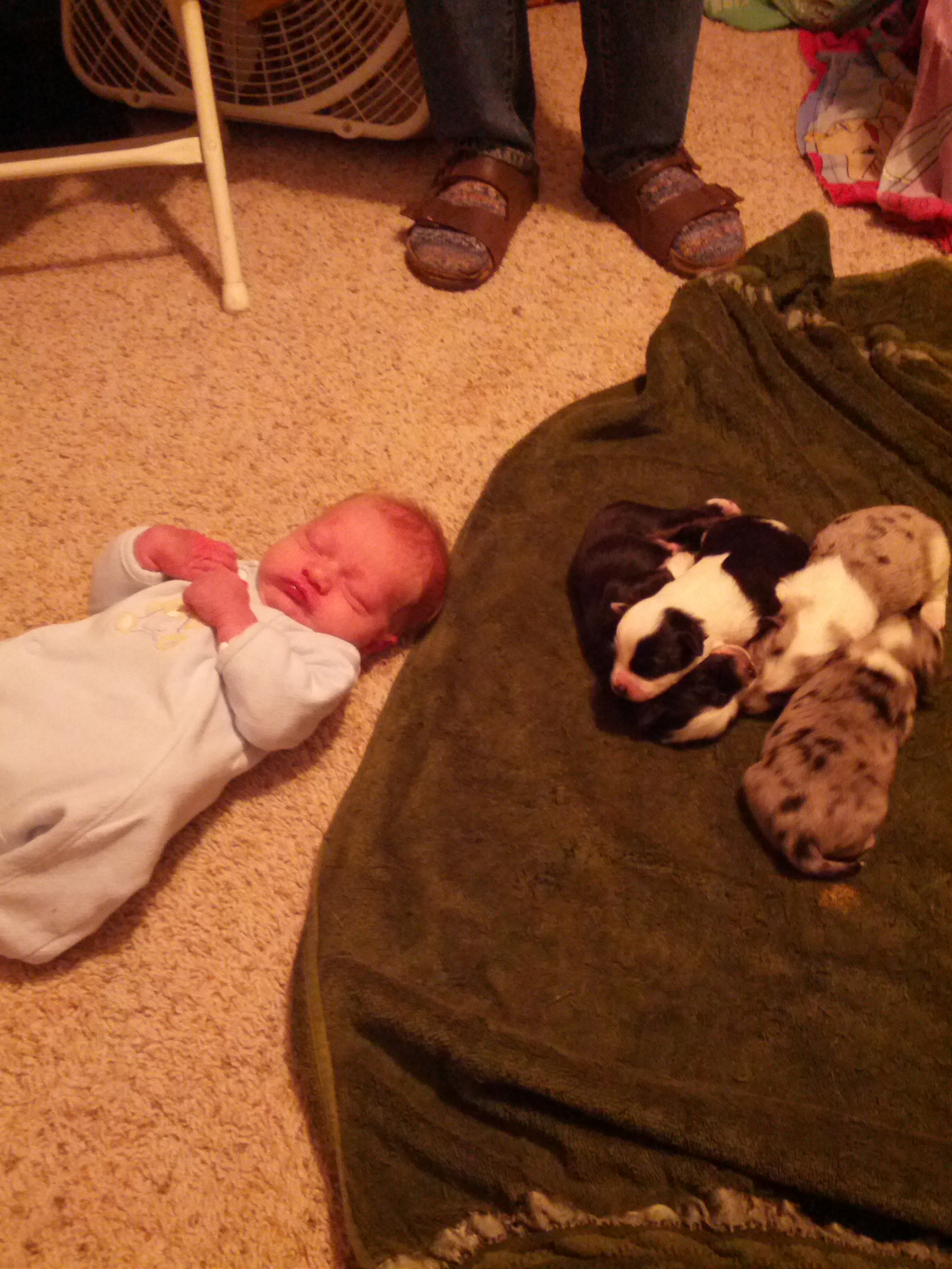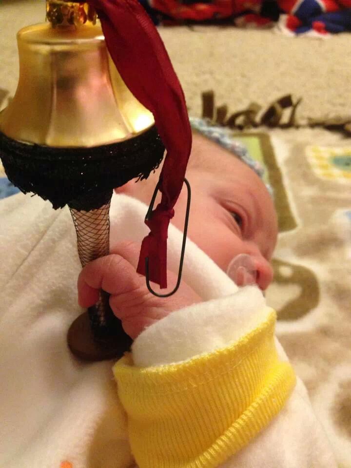 Levi is 13 days old today. DH taught him some Christmas culture with the leg lamp last night. He also got to meet the neighbors puppies who were born a day after him.