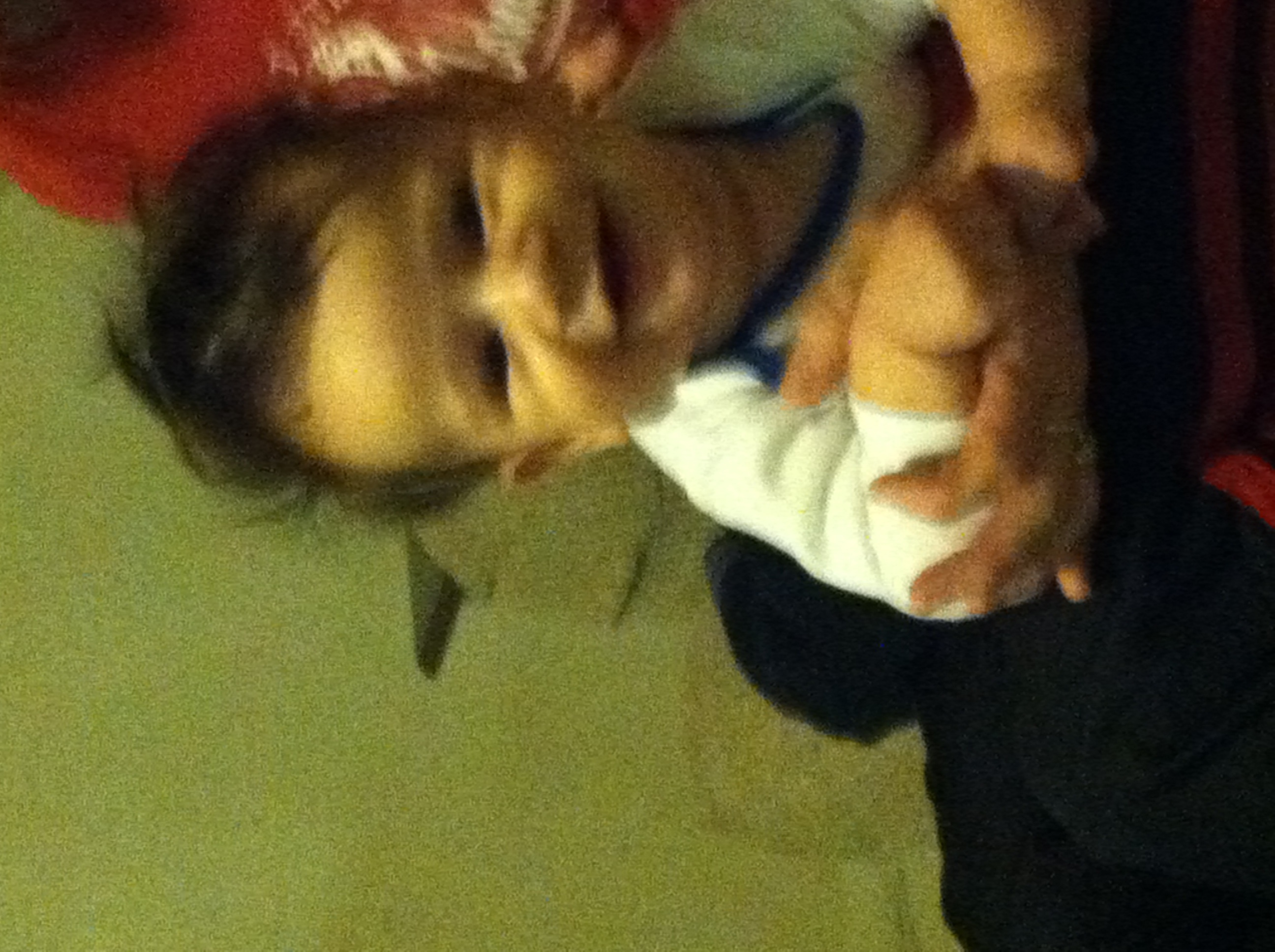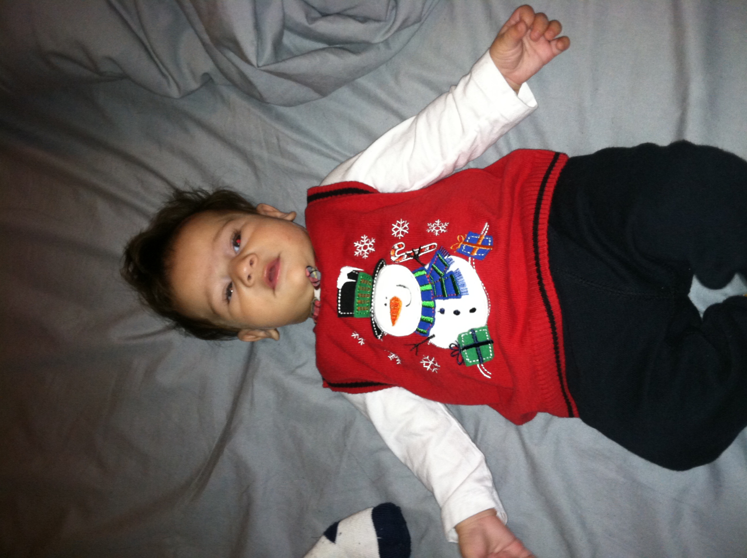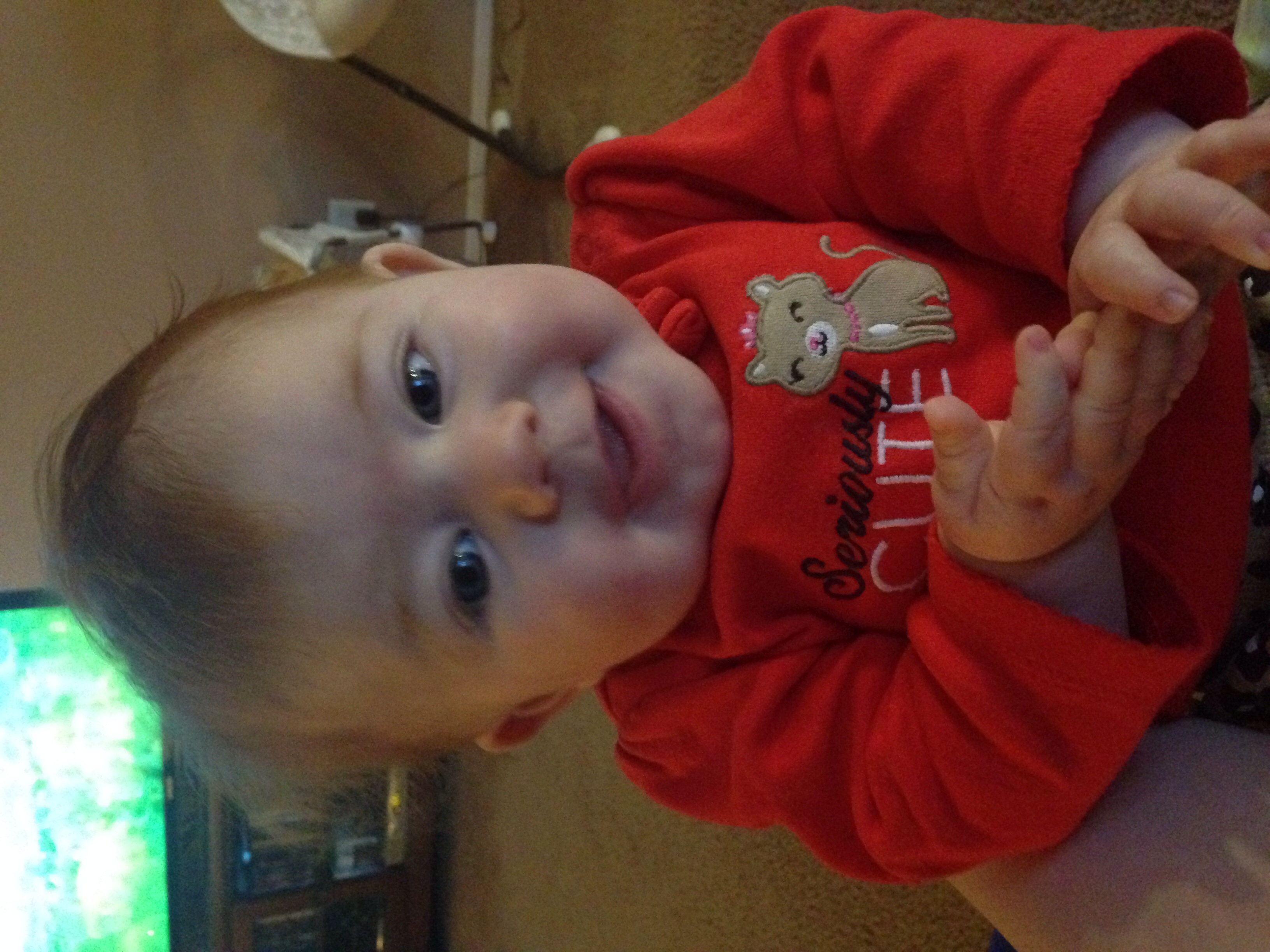 We were trying on her new Christmas dress...Mom-mom bought it and wanted to see it on her....we getting professional pics Friday. She melted down as I was taking this pic