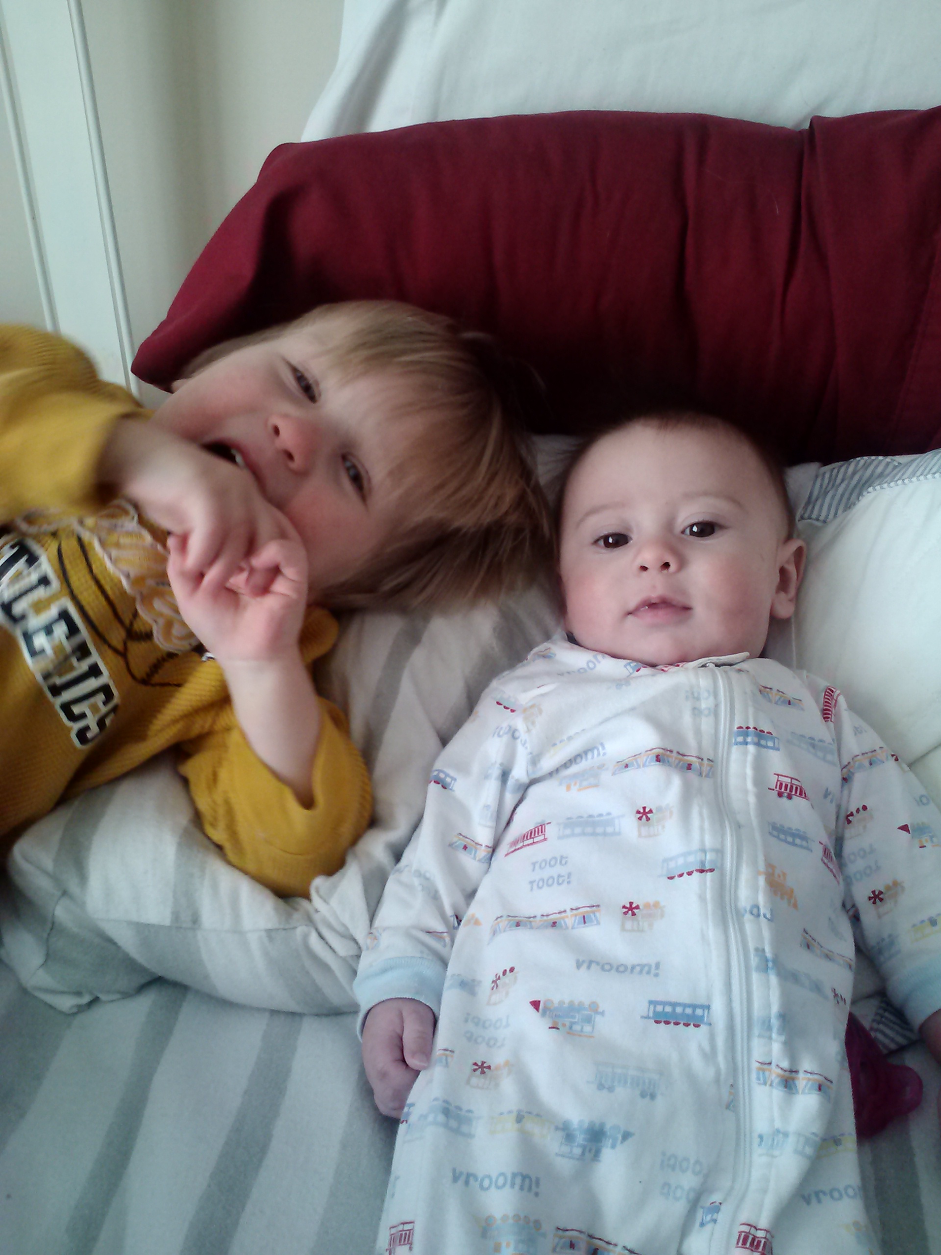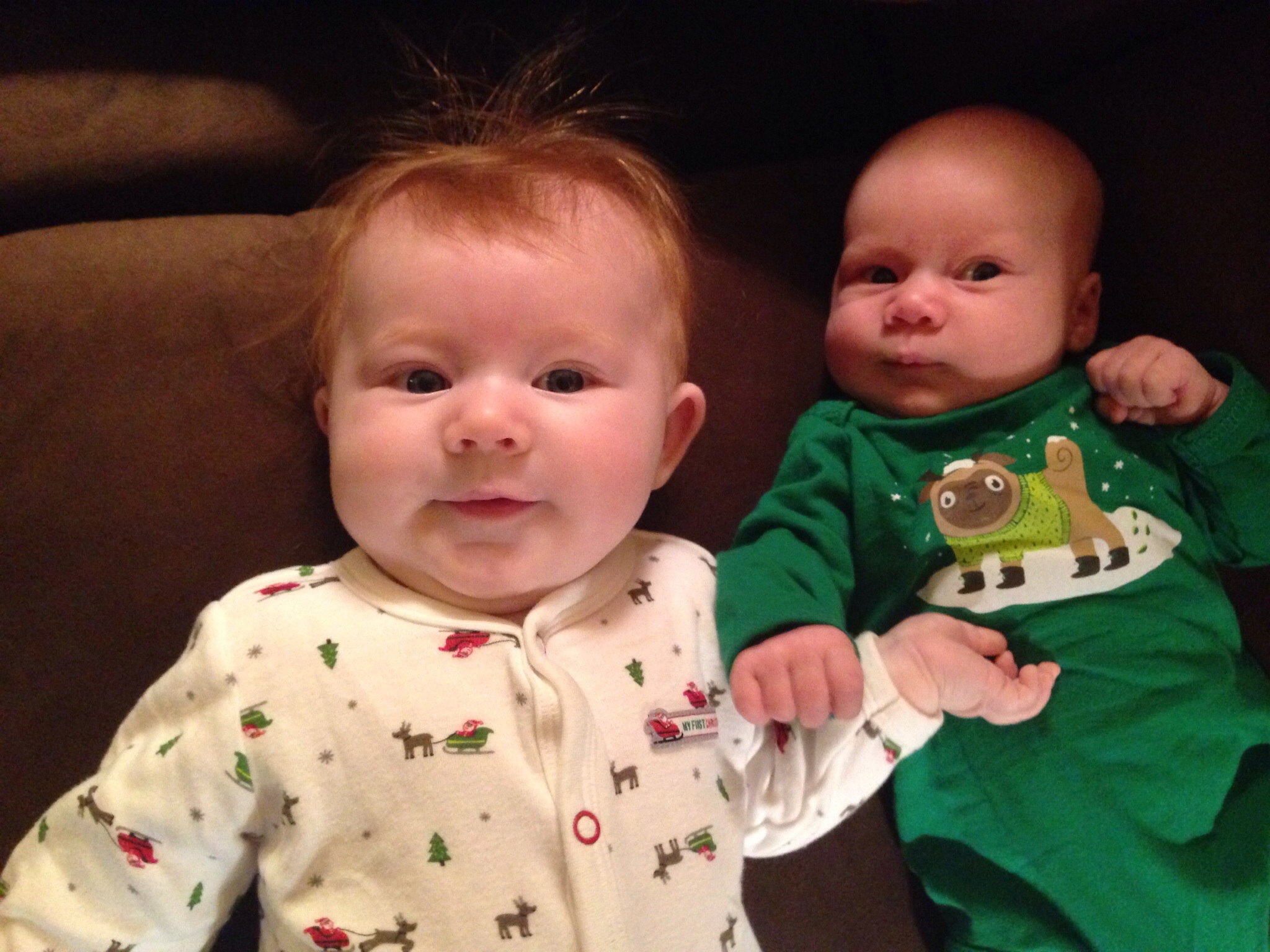 4 months tomorrow! Where does the time go? I'm sharing an outtake from our selfie-Sunday pic. DS had just sneezed and I made a funny face. Also while looking through old pics of DS1 I came across this one where he was about 4 months too. He was quite the chunker.