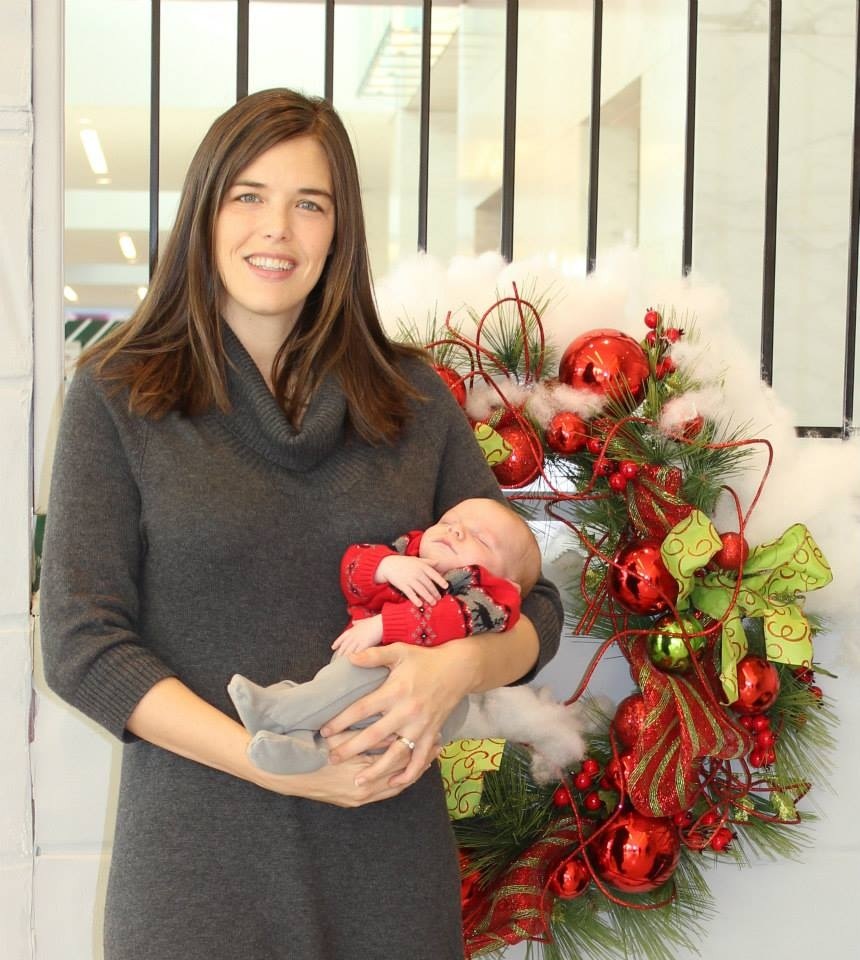 To actually play along, here is me with our newest addition visiting Santa this year.