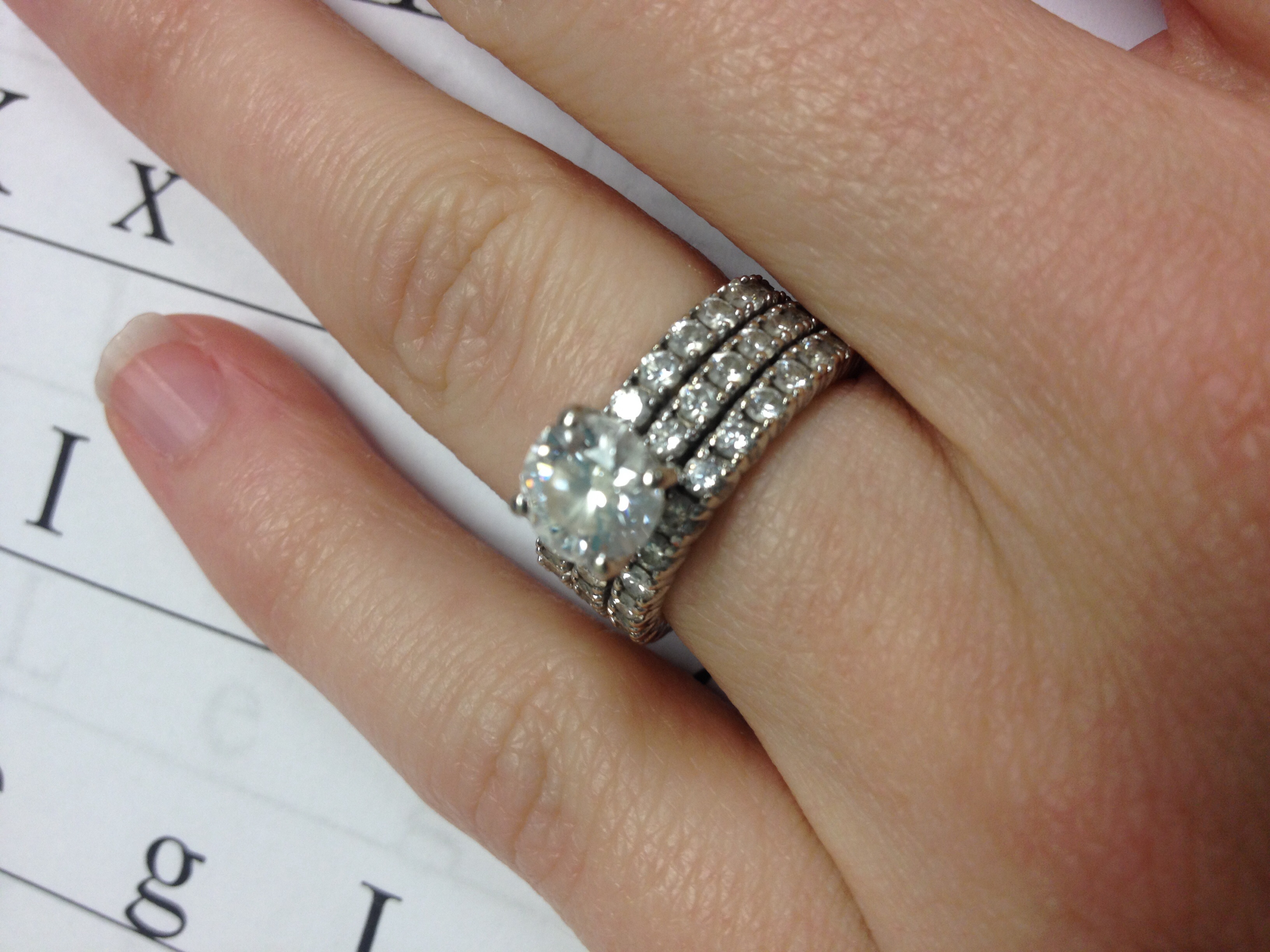 My hubby totally surprised me when I was completely knocked out on meds right after delivery with the oter diamond wedding band for my wedding set. Now I have one band on each side.