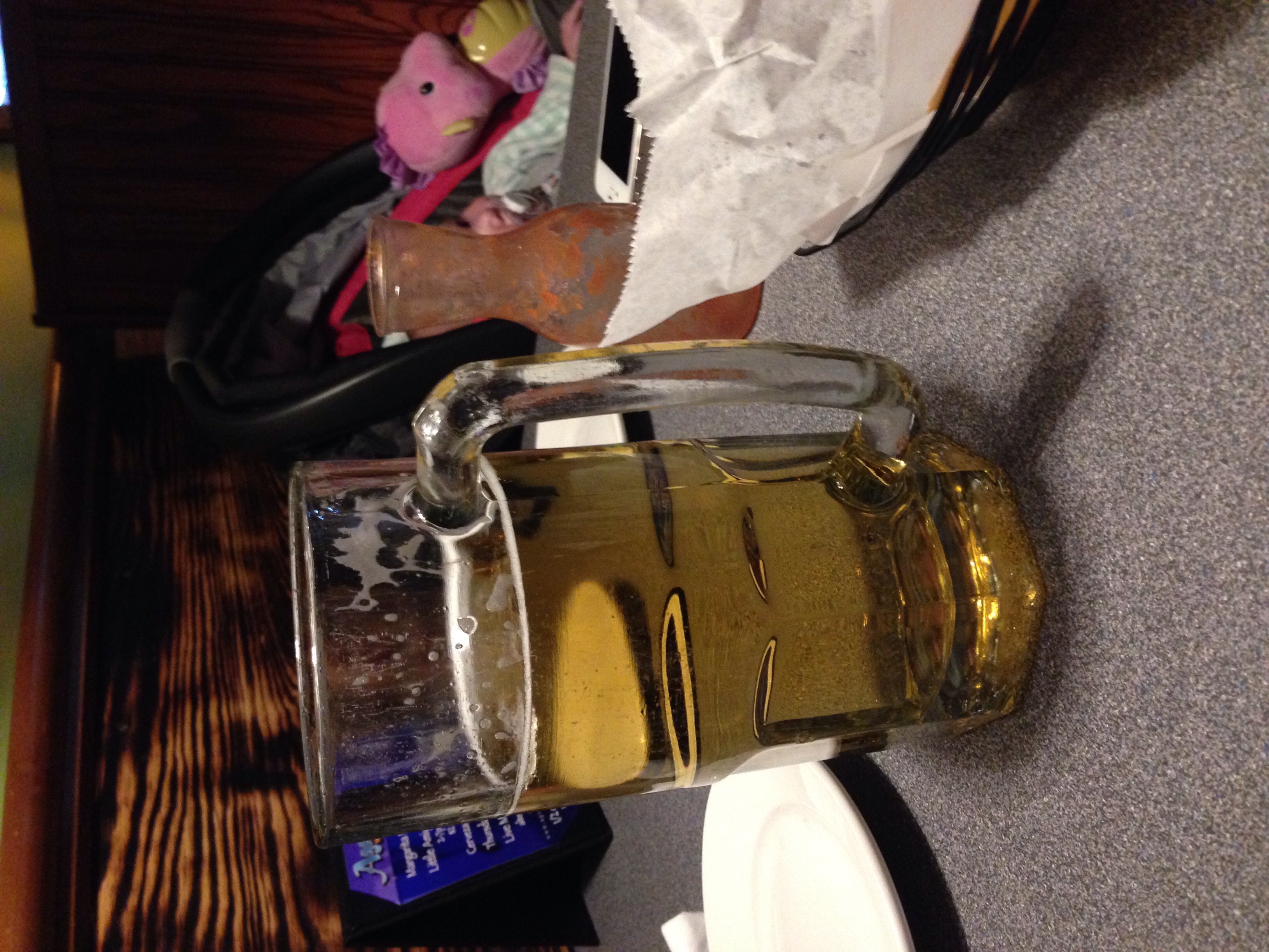 Id like to share this giant beer with you all. It was 5$. Yes that's my child. My FI is driving, no worries