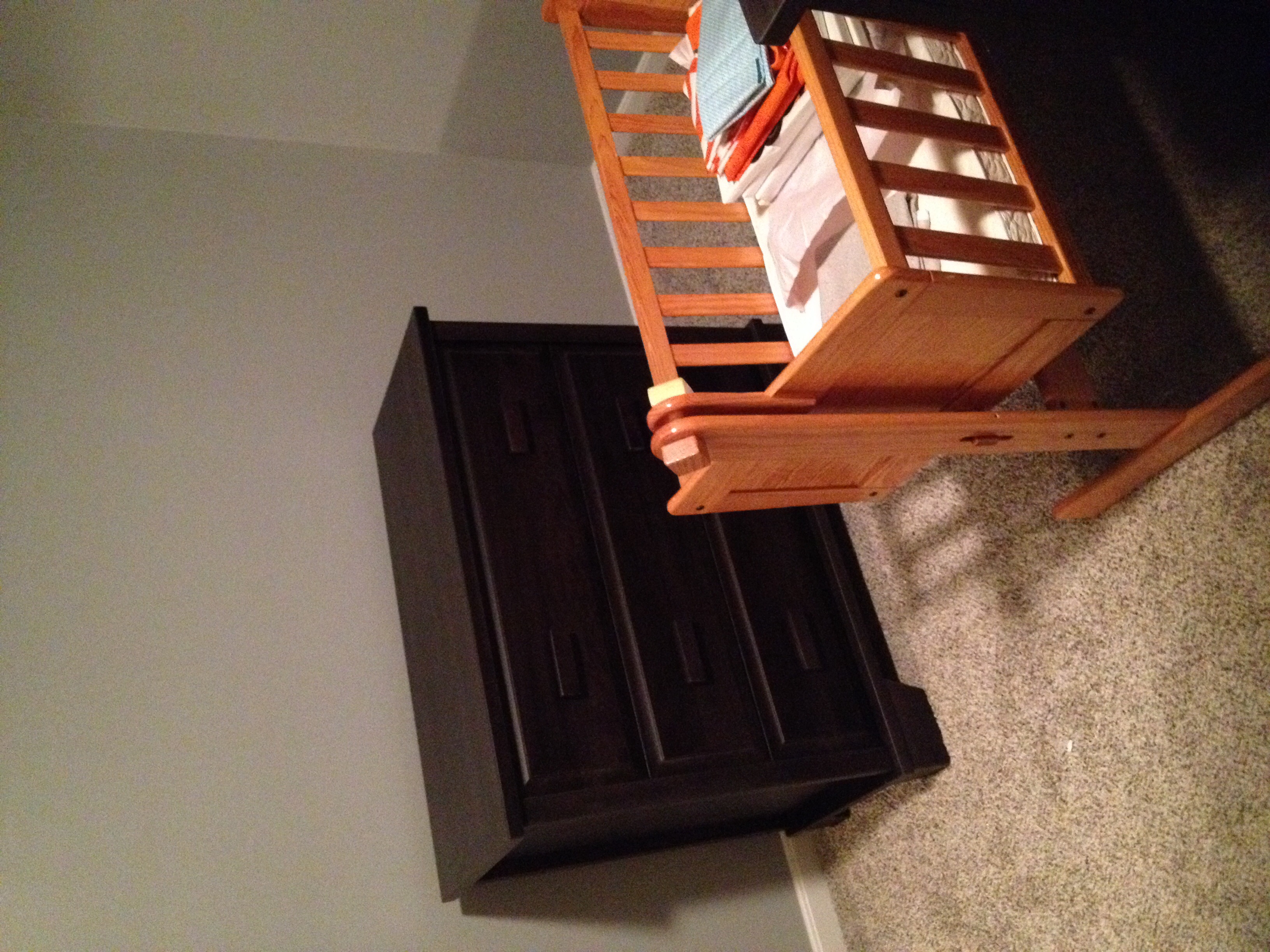 • My crib came from my sister and was already a fixed side crib. My dresser came from Ashley furniture store and was a gift from my MIL. We picked it out and love it and the big girl beds that match it for later.