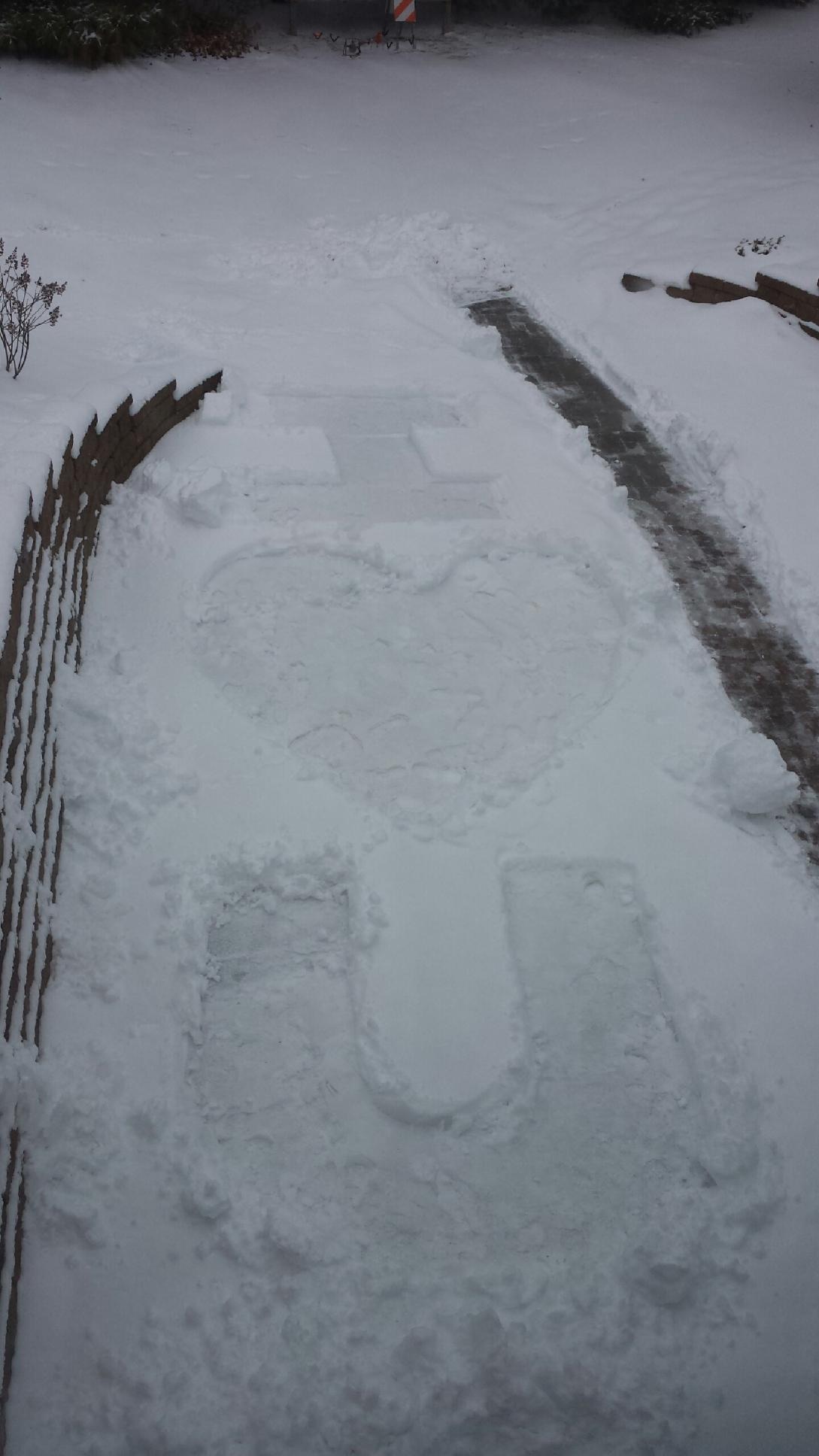 I just really wanted to post what my hubby did for me today. I've been extremely sick (HG) and can hardly get out of bed most days. I was crying for most of the day and told him I was just sad and over being sick. He gave me a hug, said he was sorry then went outside to shovel the snow. I'm laying back in bed and my phones ringing and it's him and he tells me to come look out the window and this is what I saw... :)
