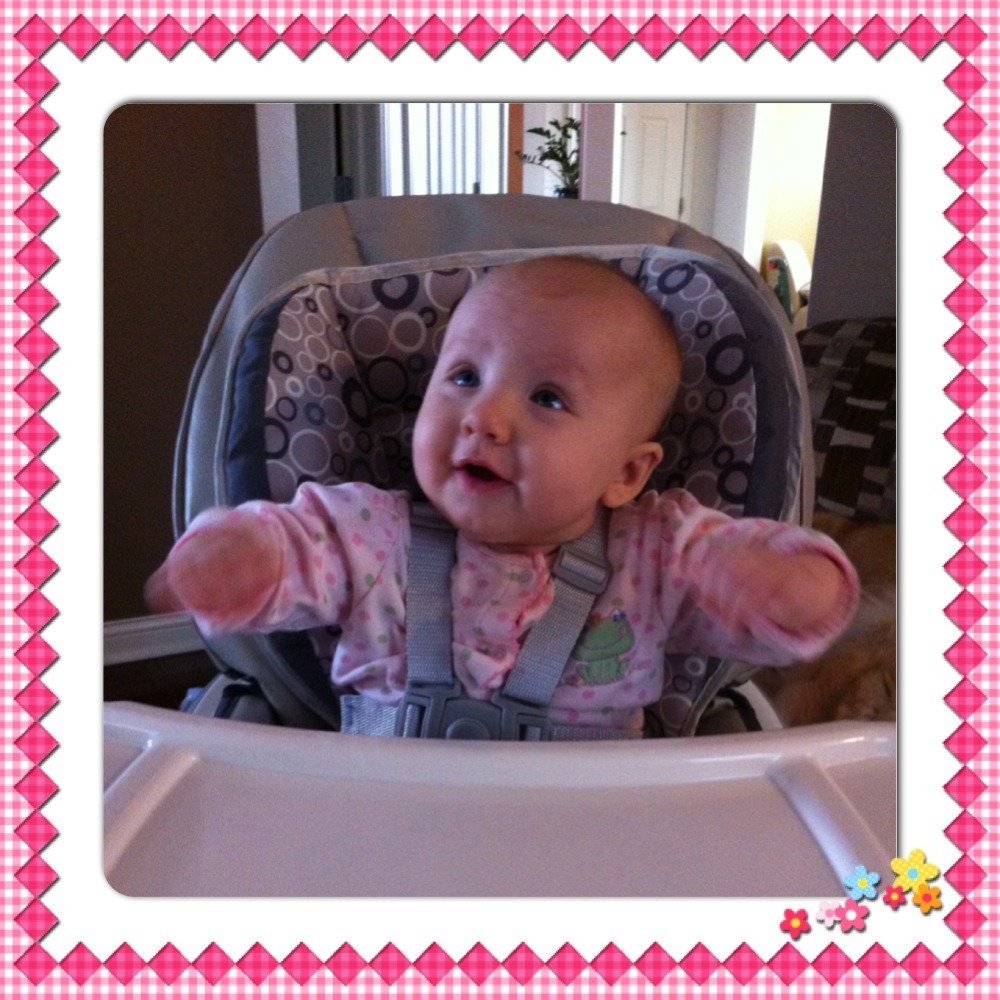 Daddy put L's highchair together today! She LOVES it!! Then she was yelling at us when we were eating and didn't share with her. It was hysterical! I think she's getting ready for food!!