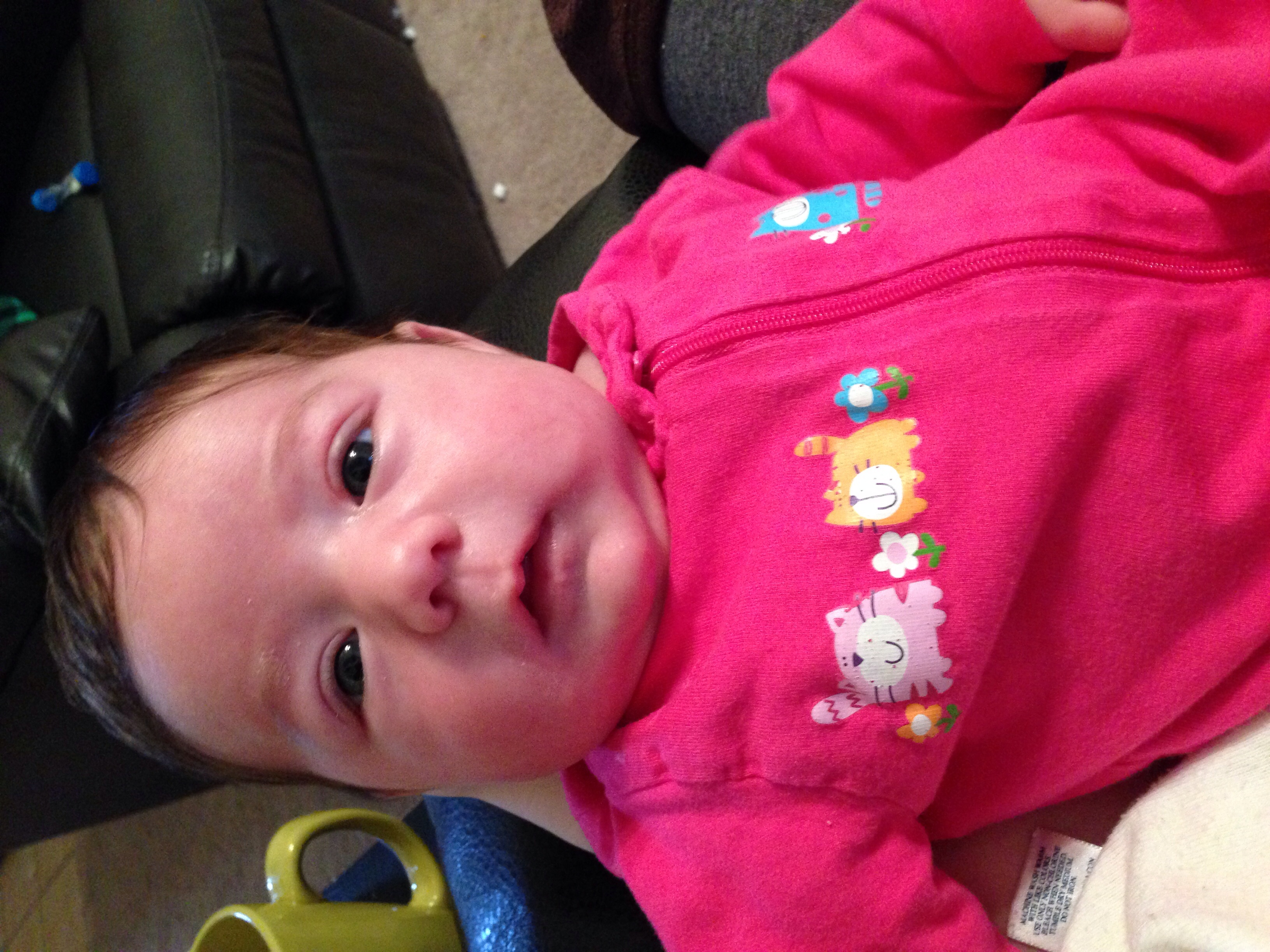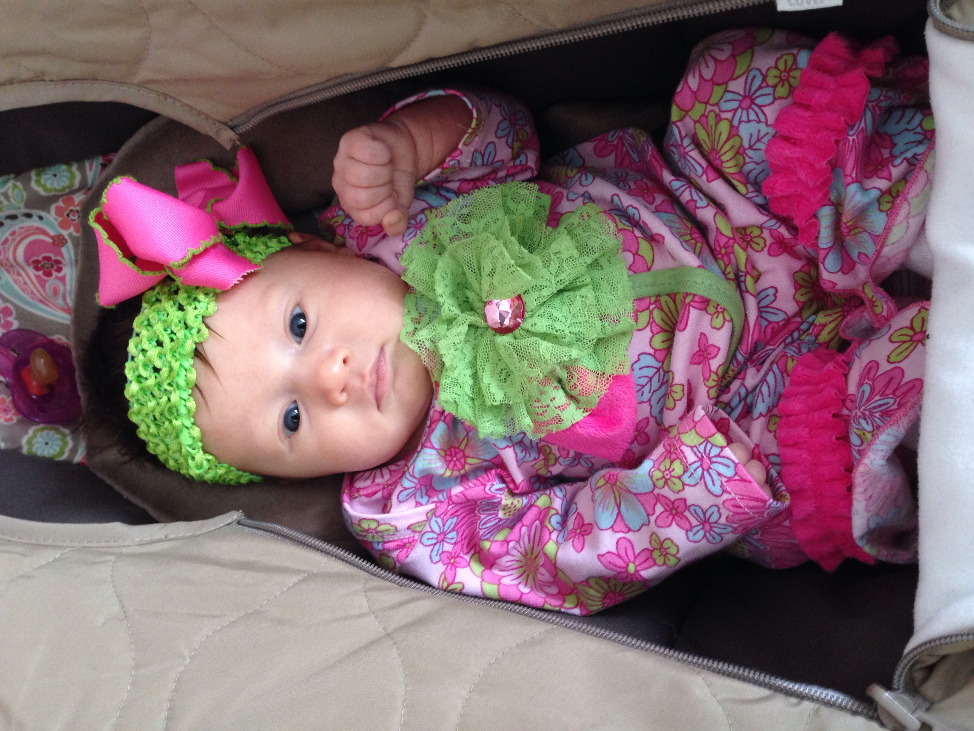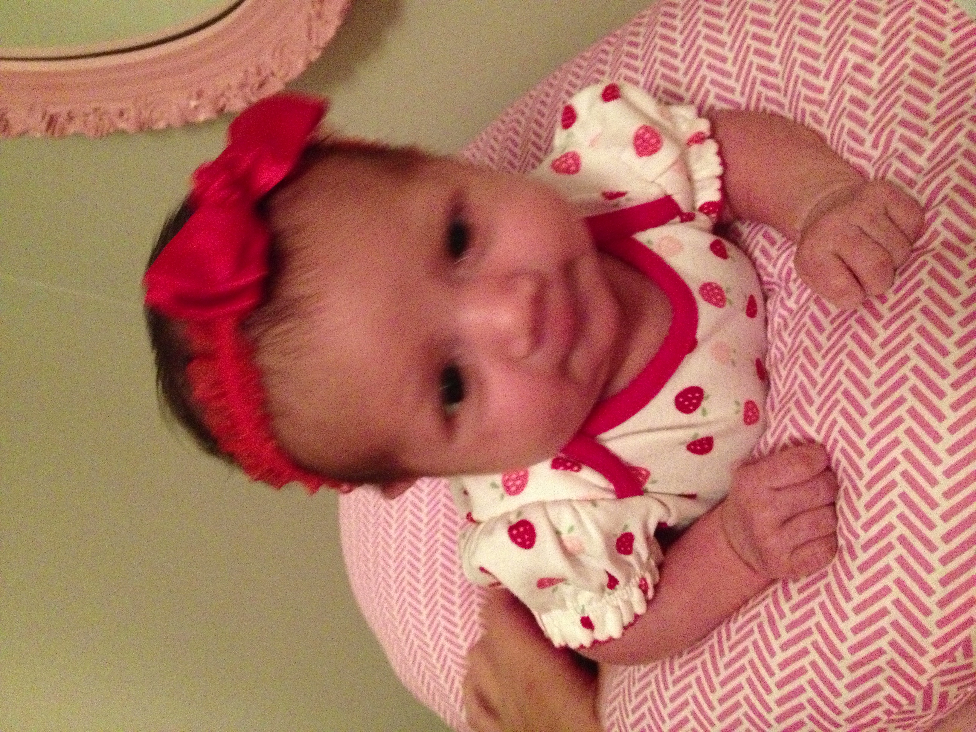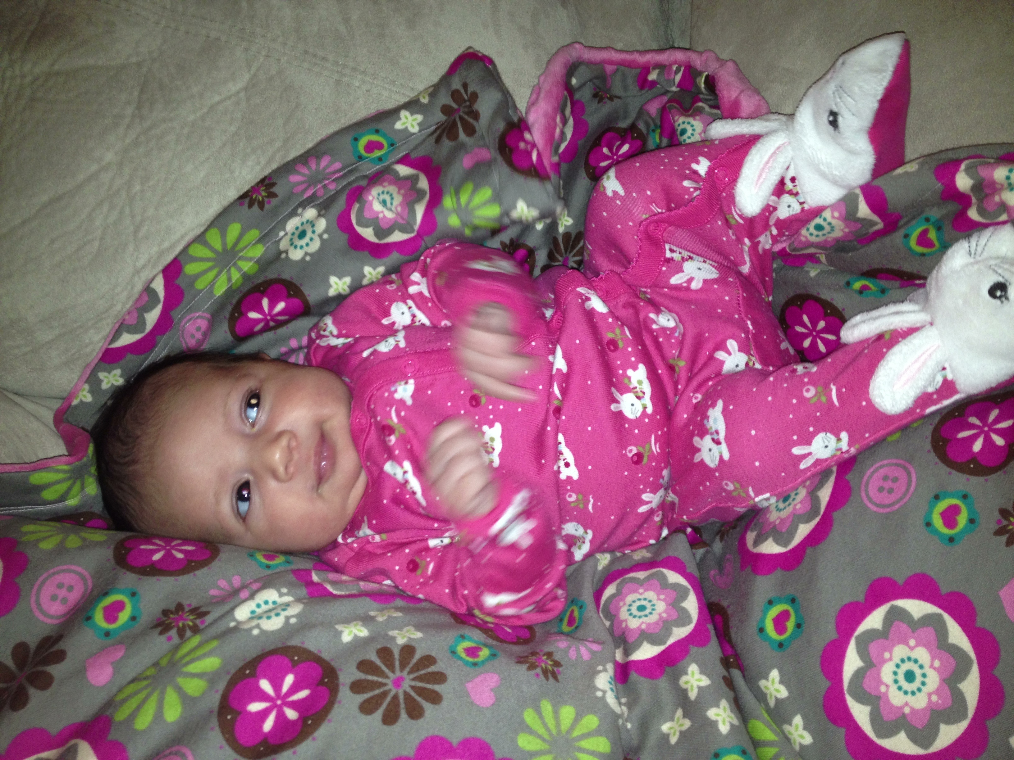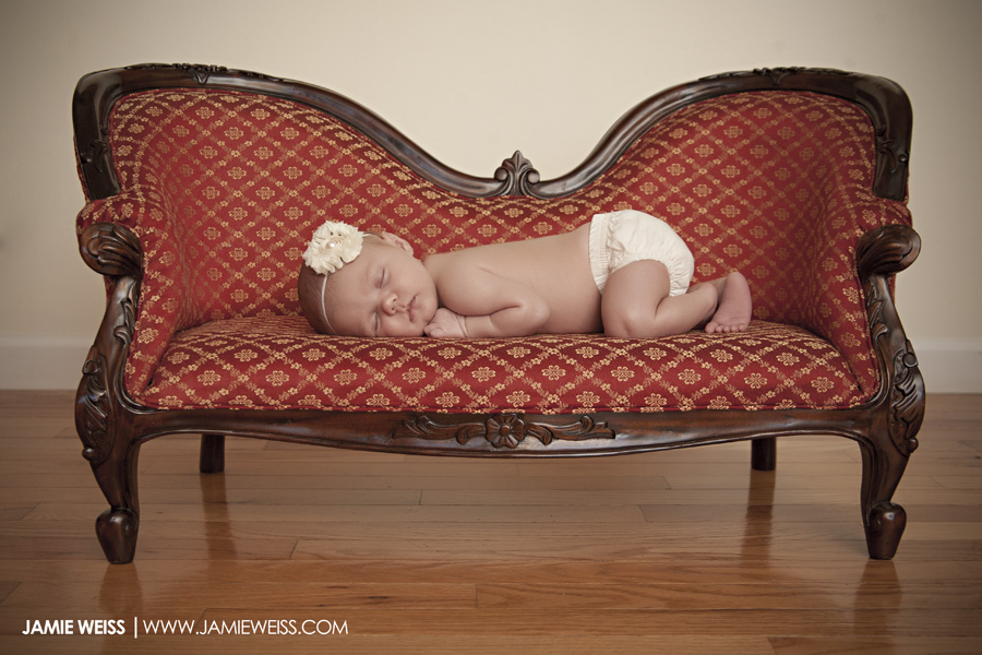 I'm going to take pictures of her on this couch monthly through the first year to see how she grows!