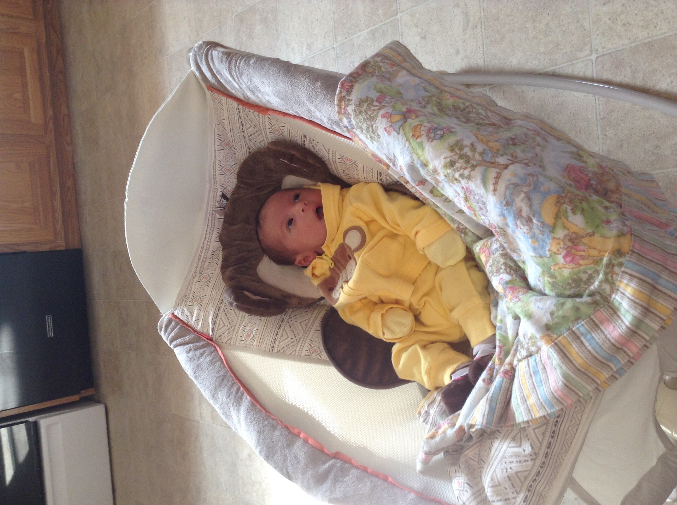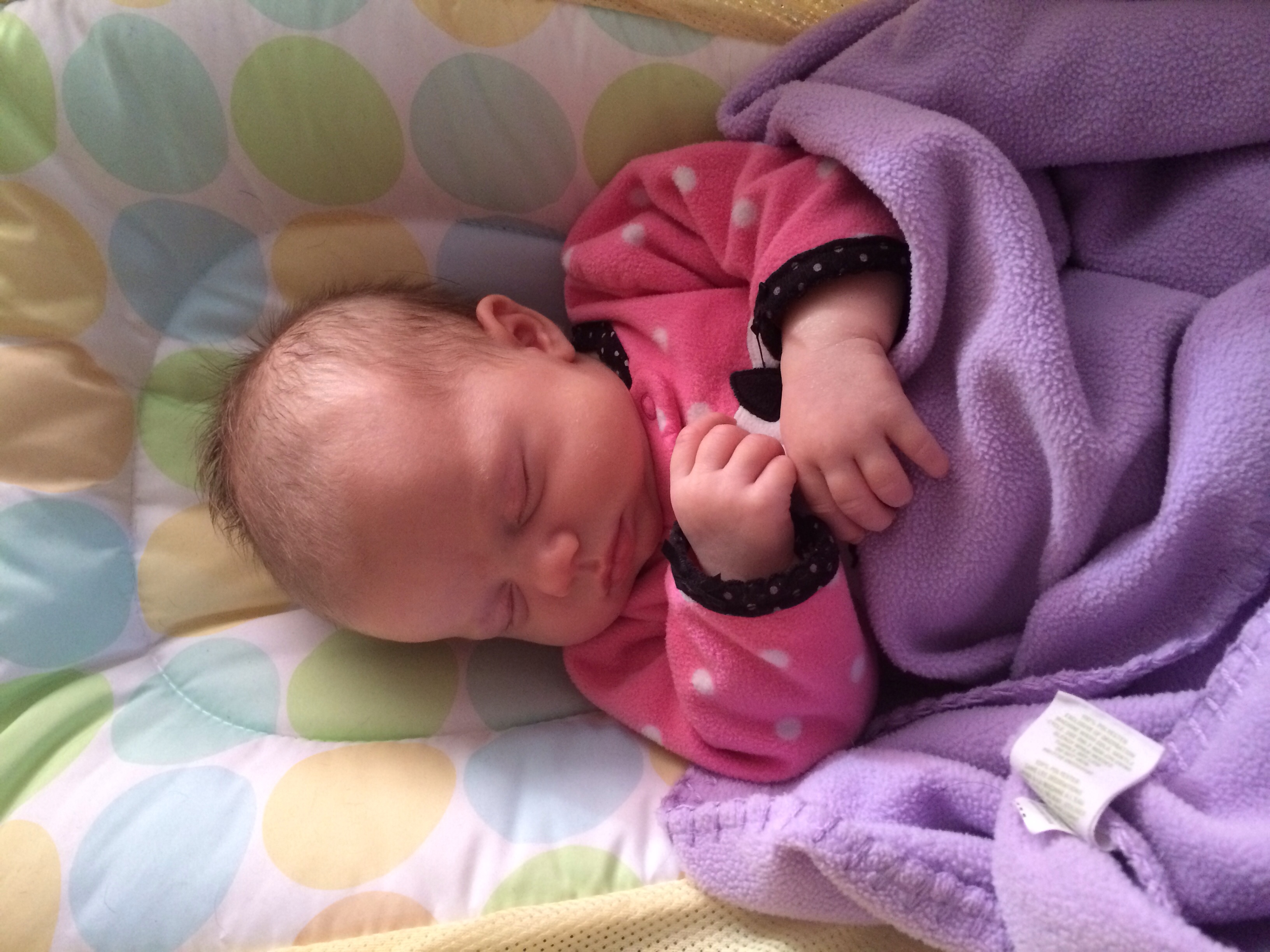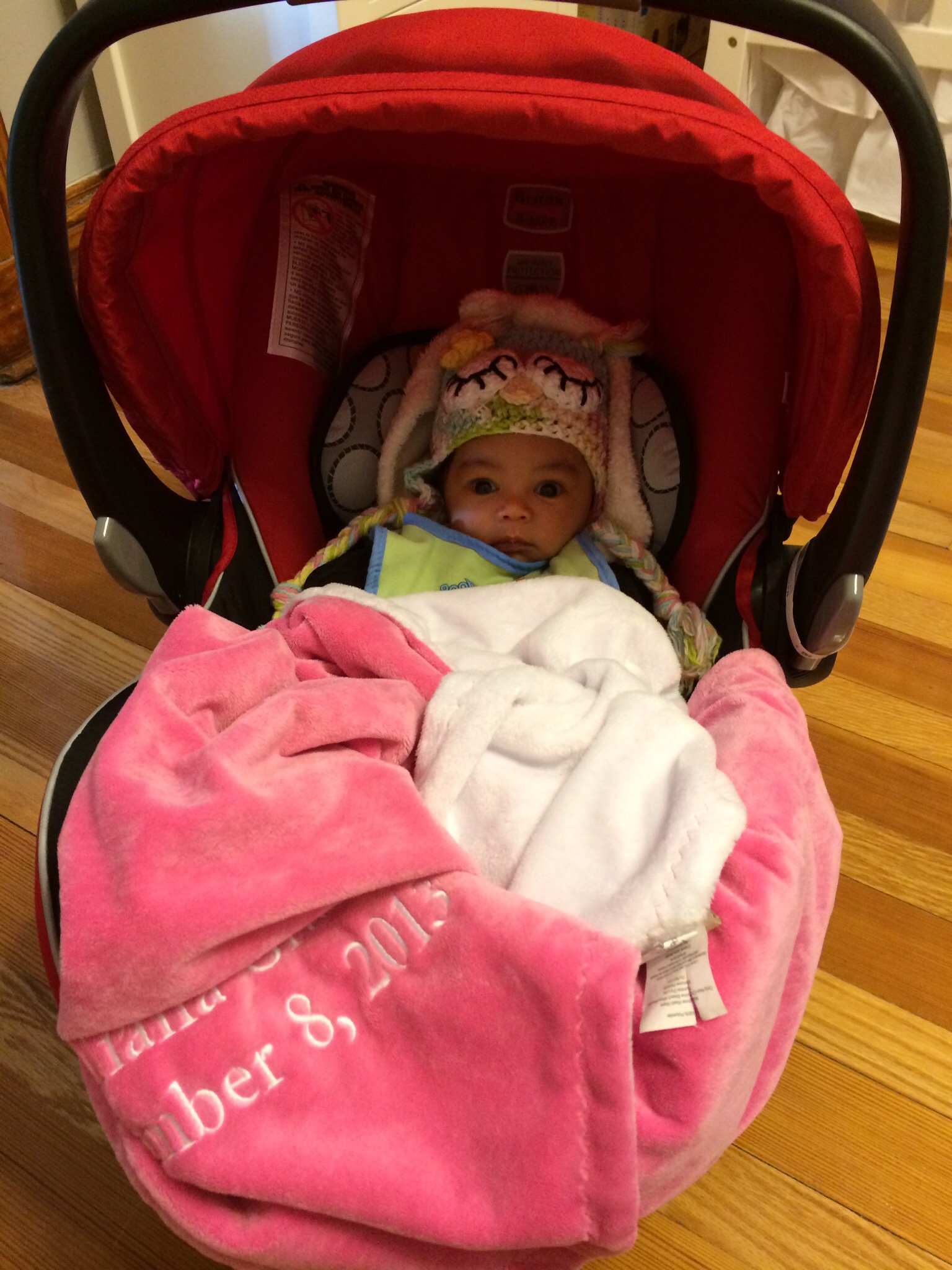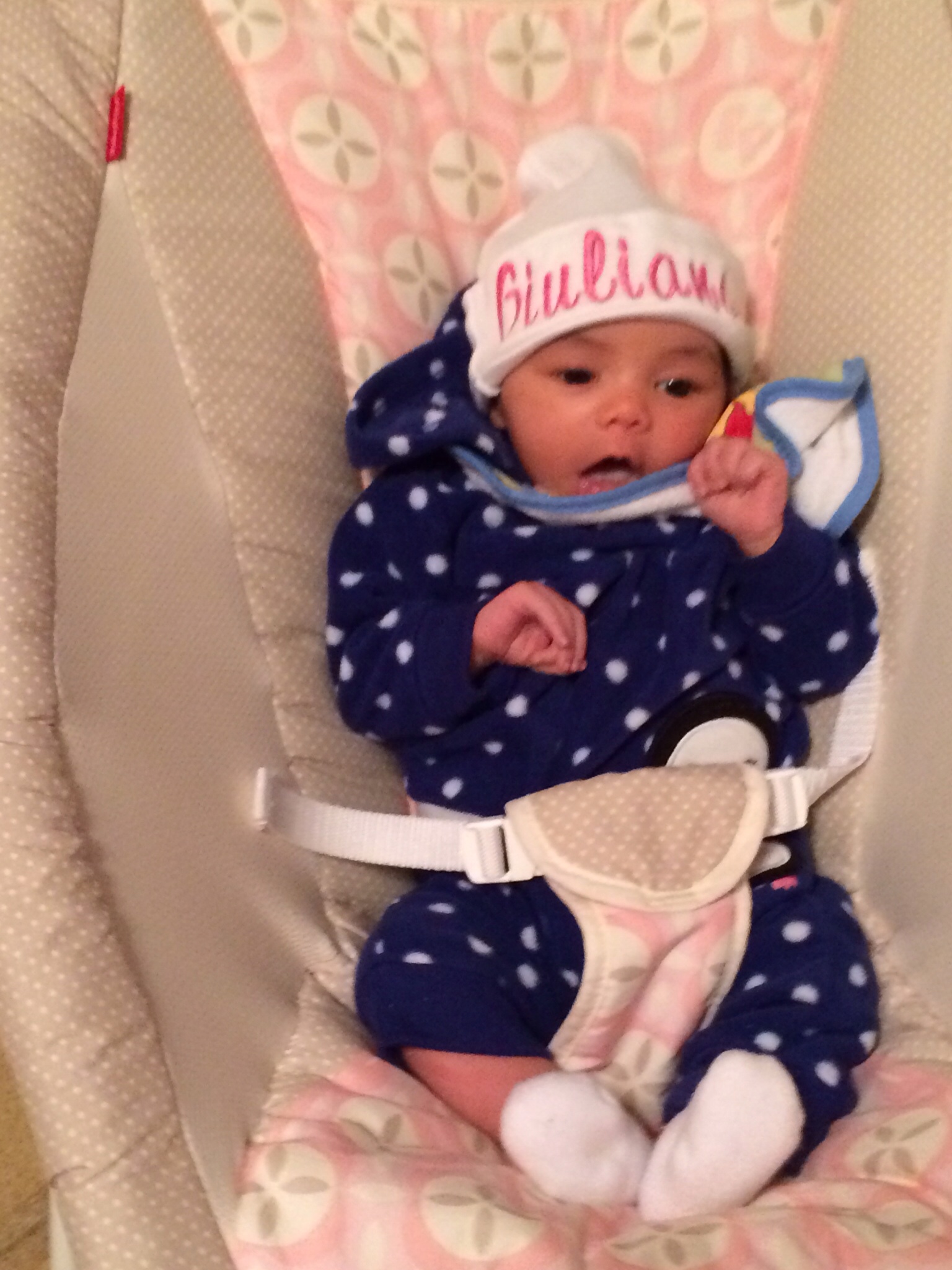 I'm going to take pictures of her on this couch monthly through the first year to see how she grows!