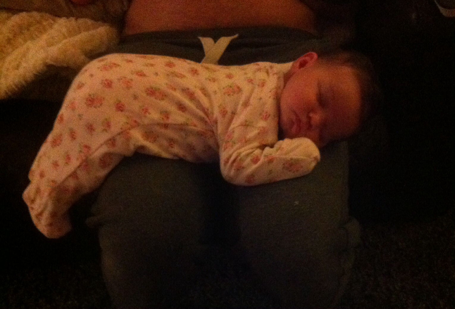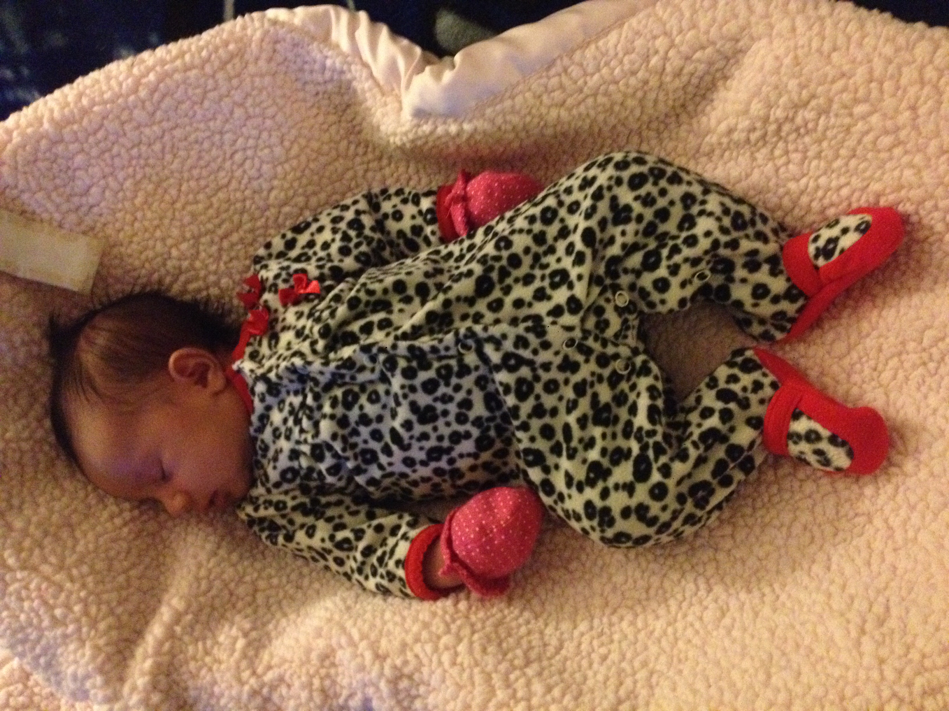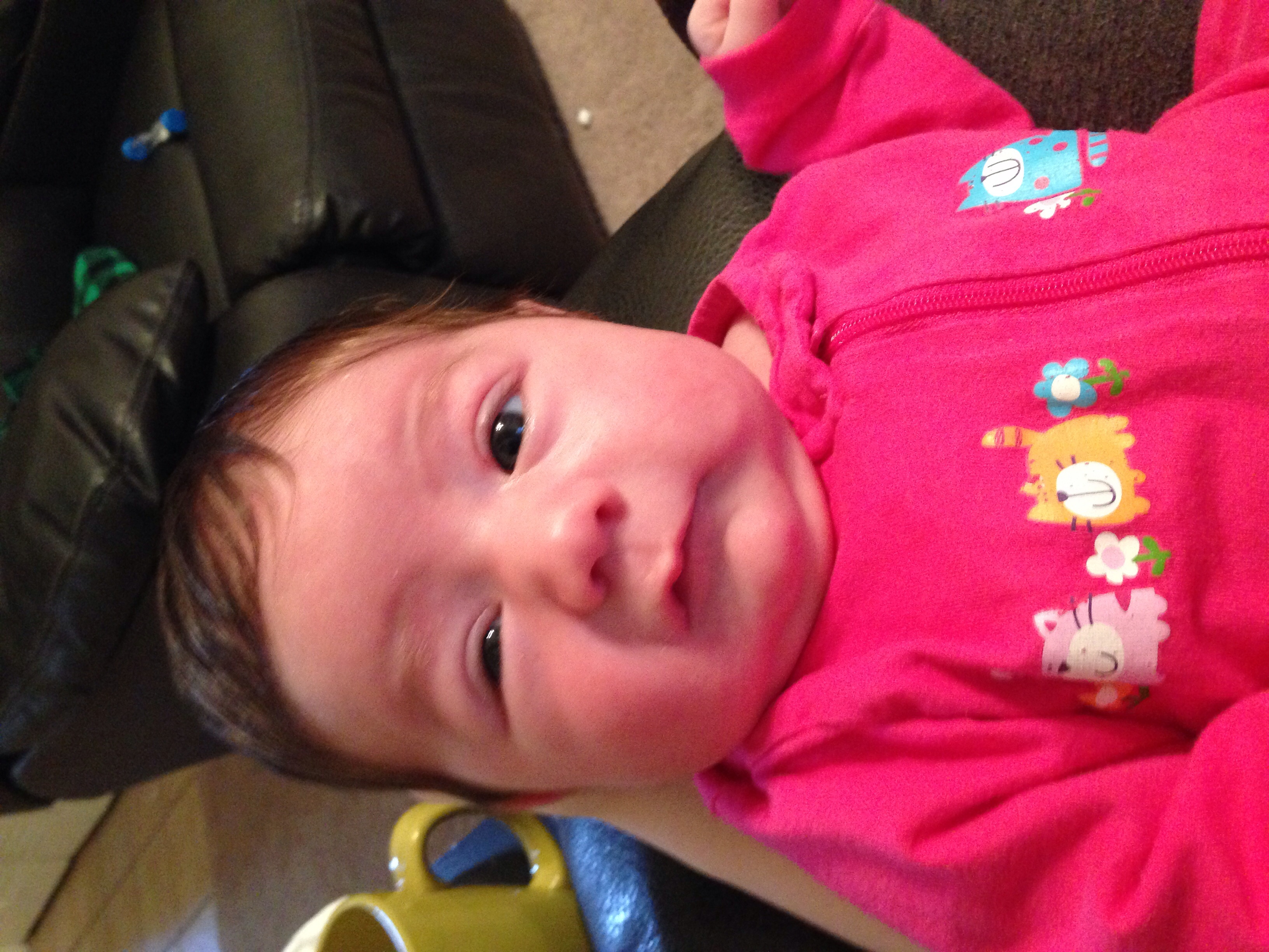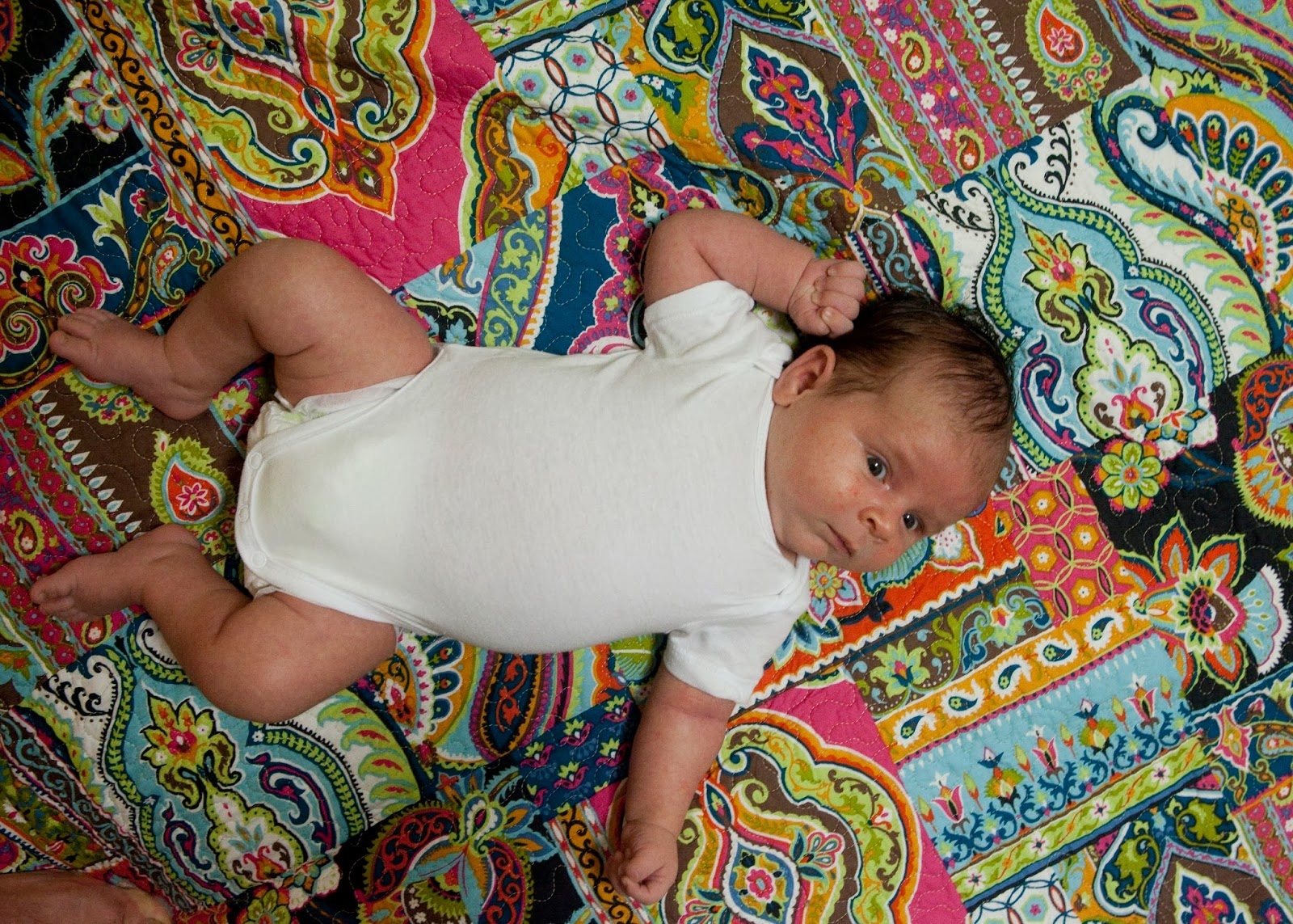 I'm going to take pictures of her on this couch monthly through the first year to see how she grows!